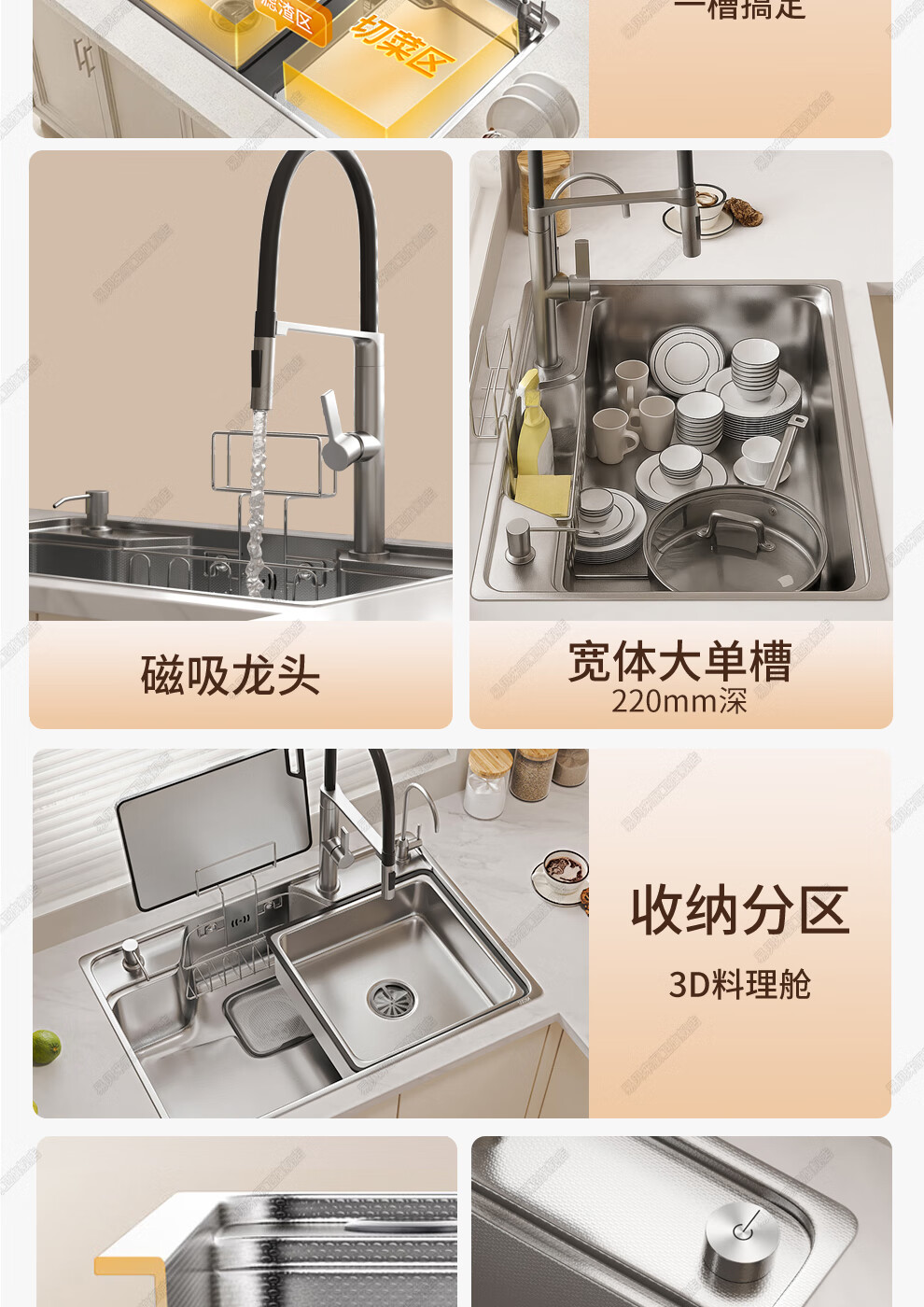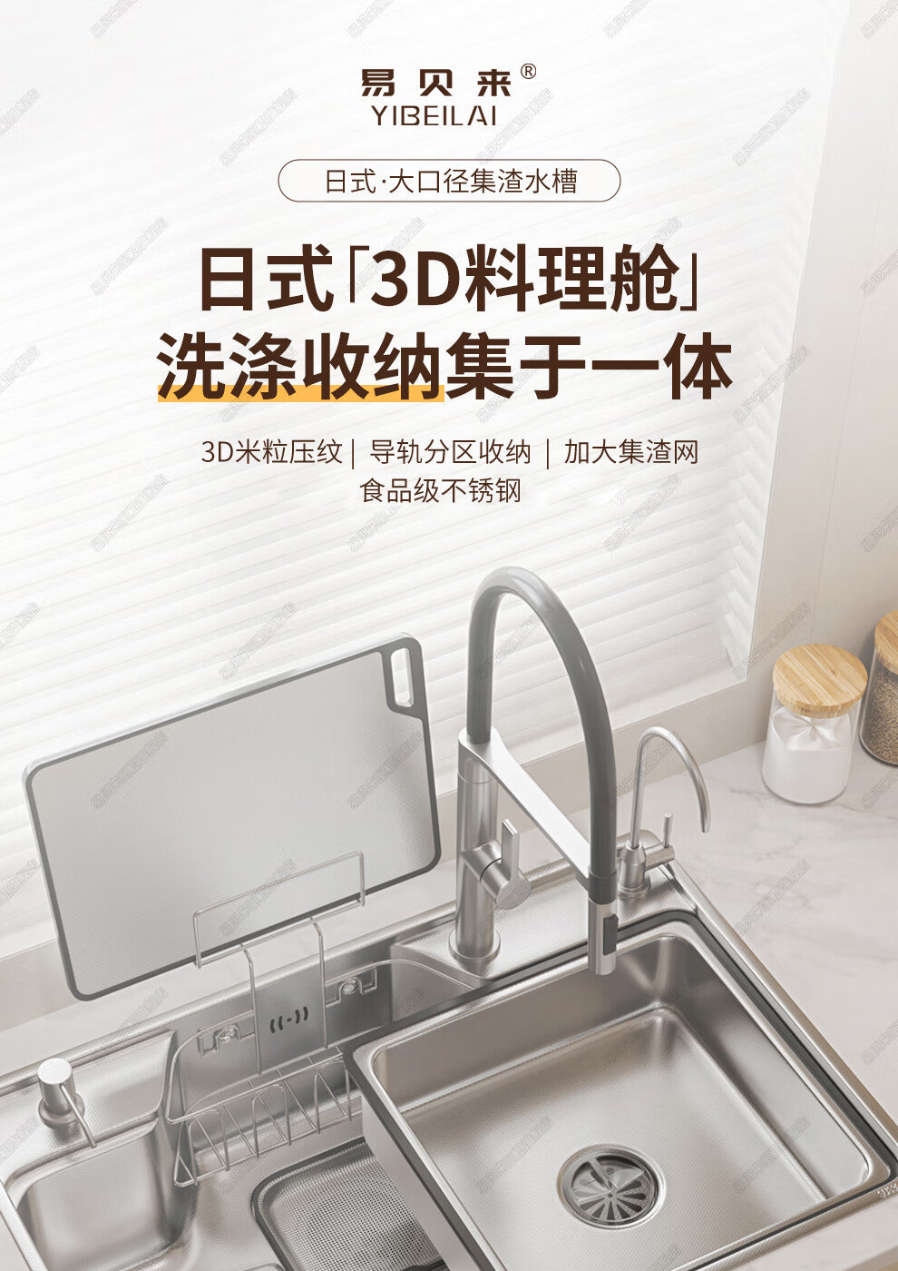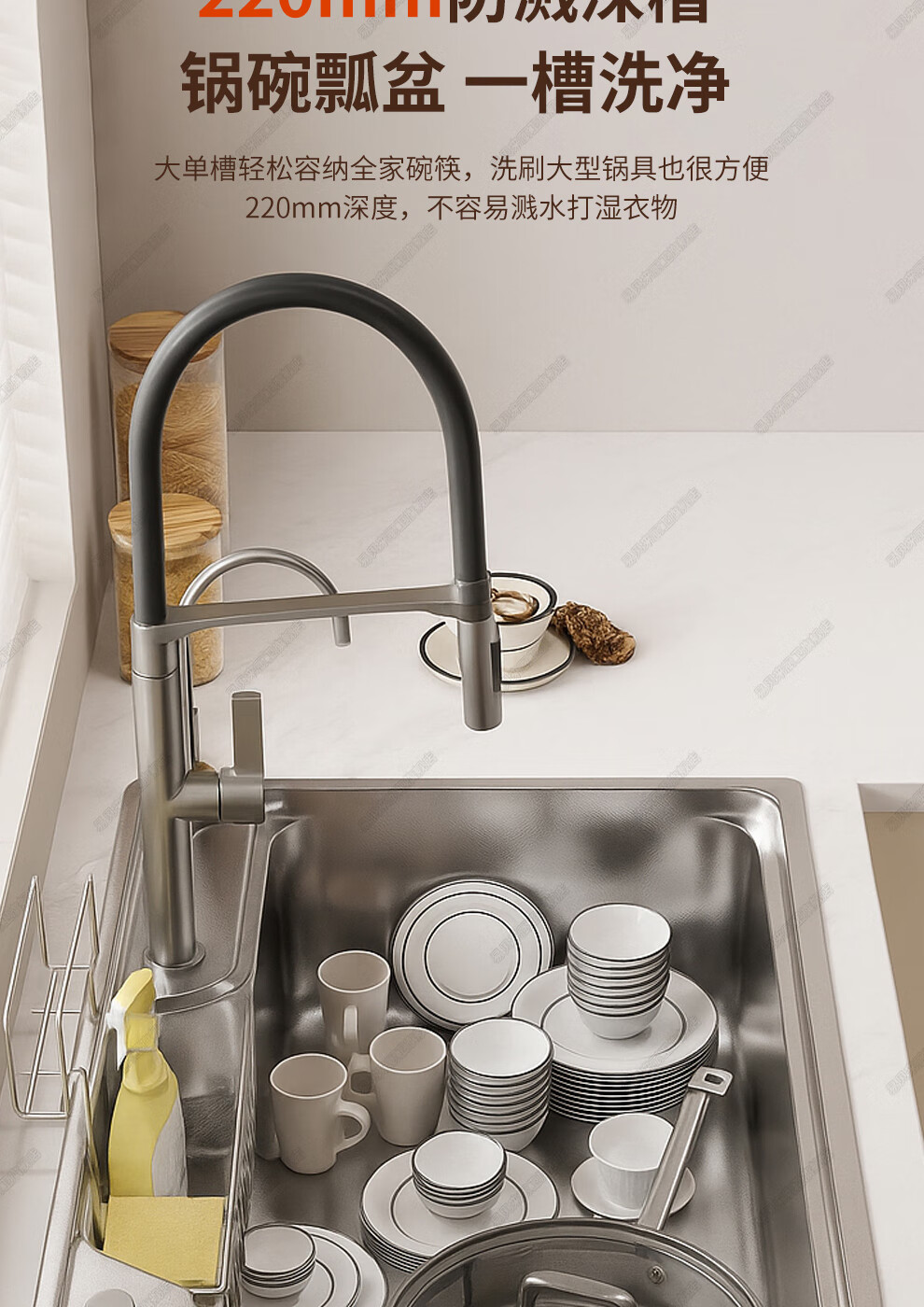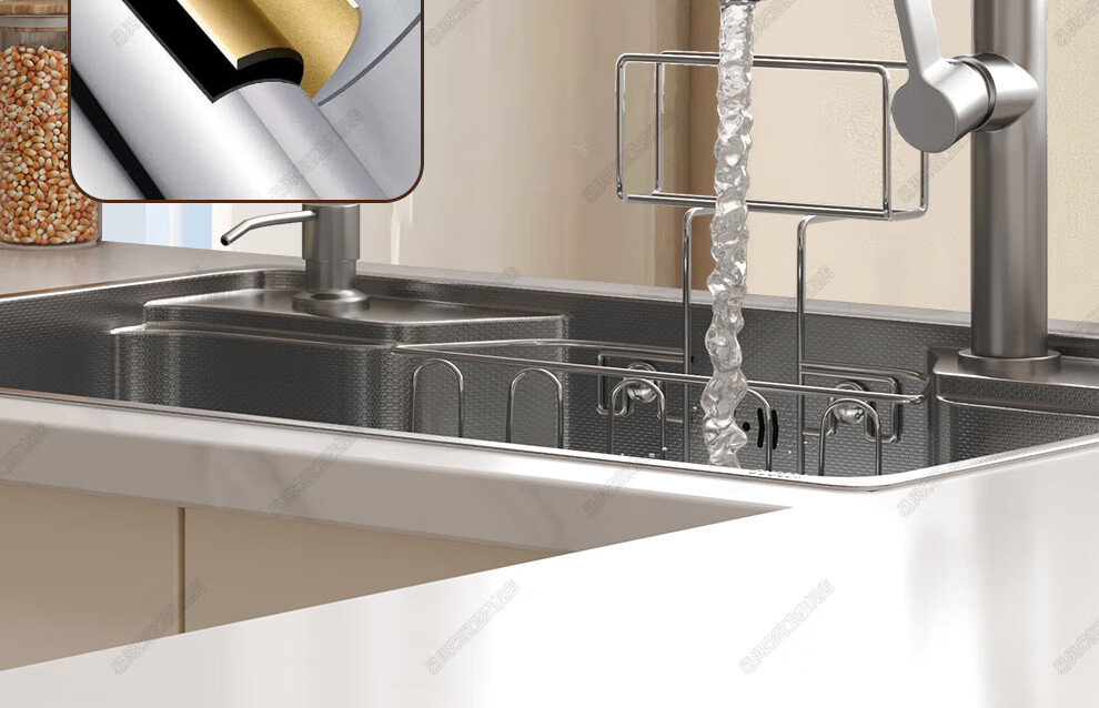 易贝来厨房加厚不锈钢洗菜盆水槽大单槽一体304不锈钢厨房多功能洗菜池 304原色-畅洗版-不锈钢抽拉龙头 6548-加厚304不锈钢水槽