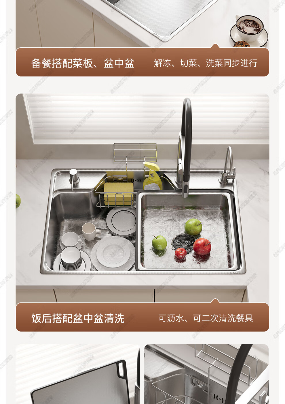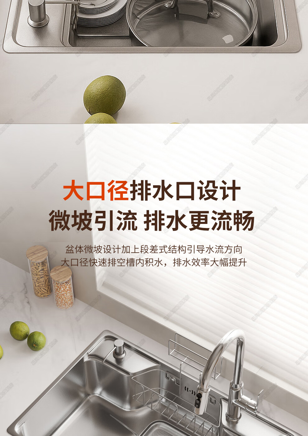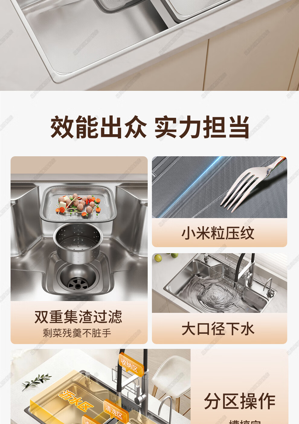 易贝来厨房加厚不锈钢洗菜盆水槽大单槽一体304不锈钢厨房多功能洗菜池 304原色-畅洗版-不锈钢抽拉龙头 6548-加厚304不锈钢水槽