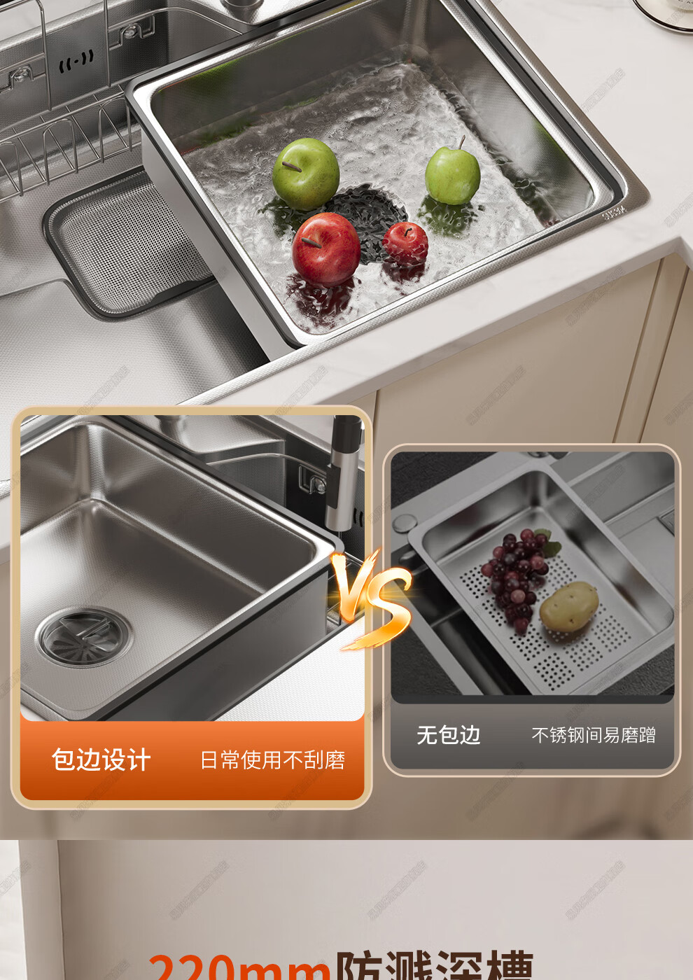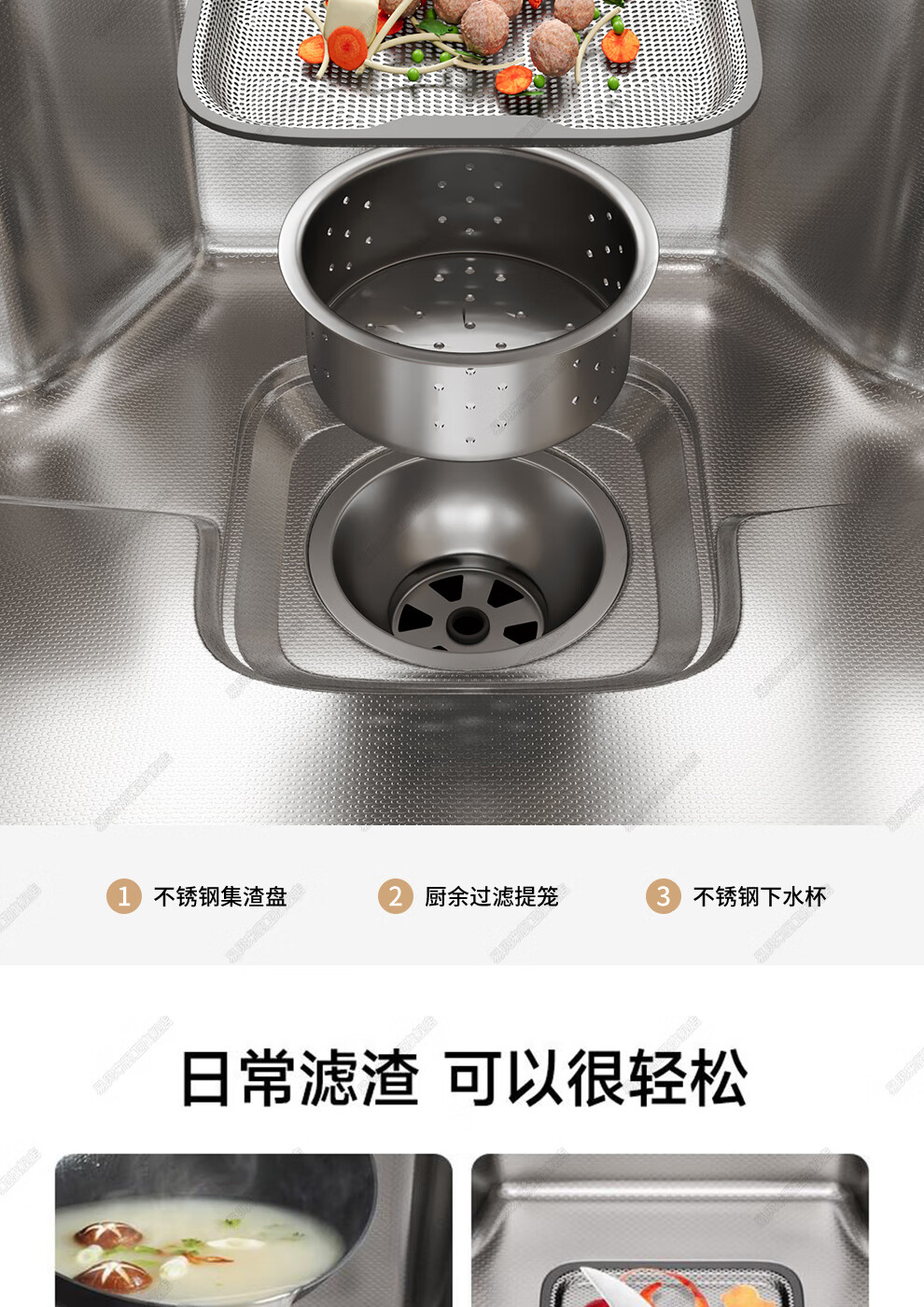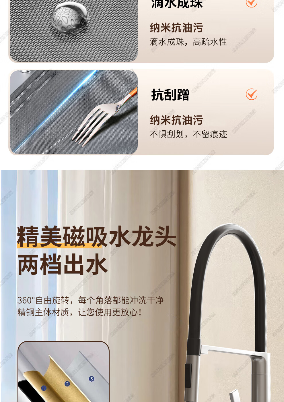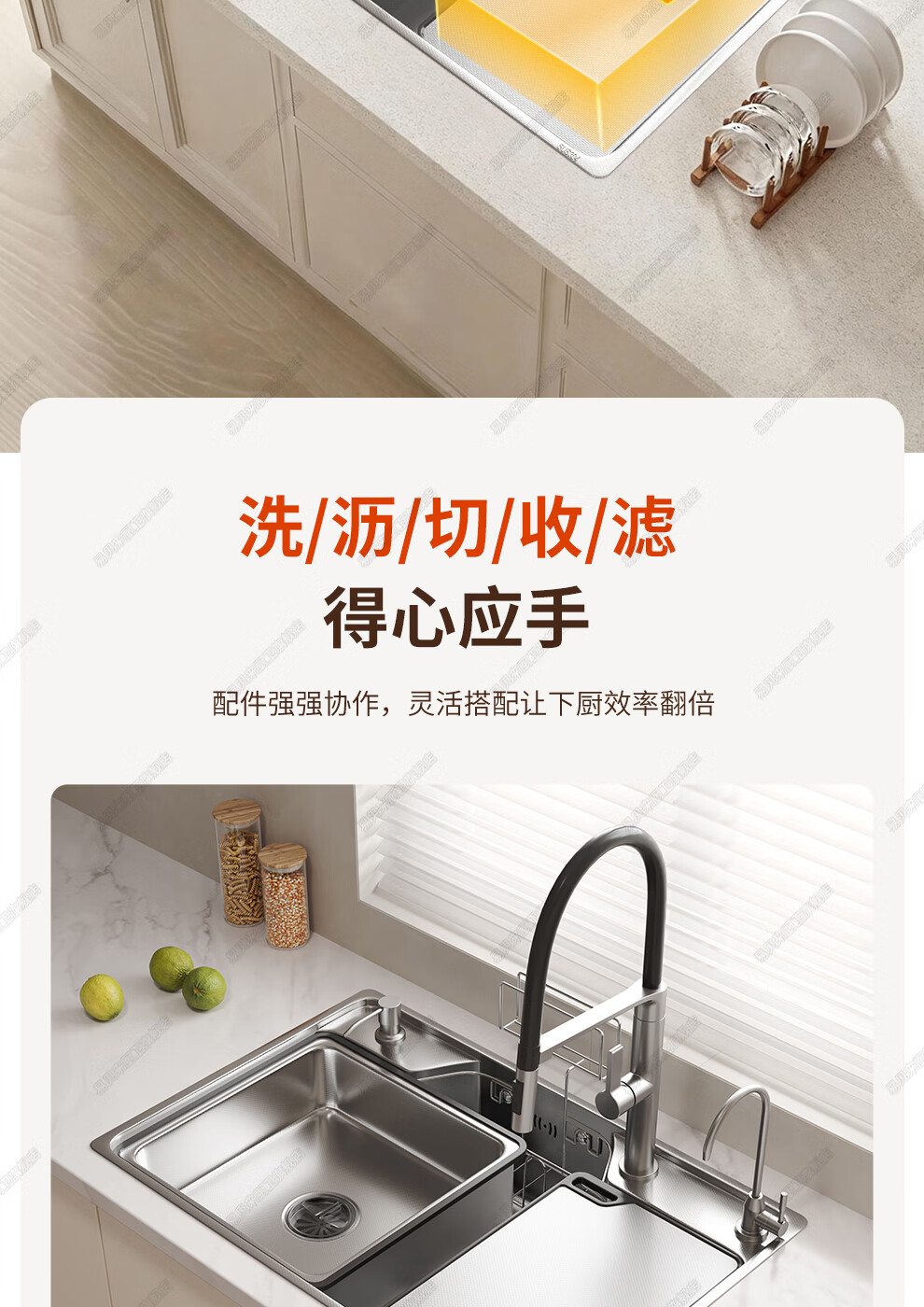 易贝来厨房加厚不锈钢洗菜盆水槽大单槽一体304不锈钢厨房多功能洗菜池 304原色-畅洗版-不锈钢抽拉龙头 6548-加厚304不锈钢水槽