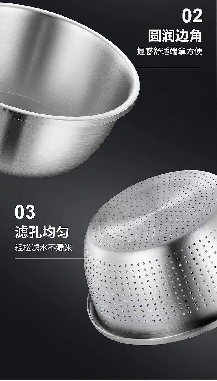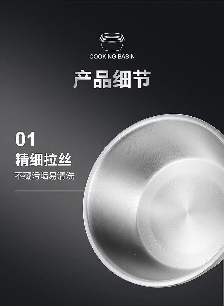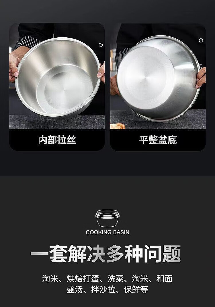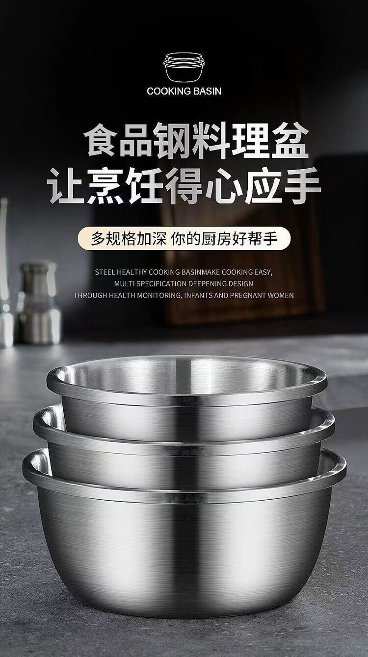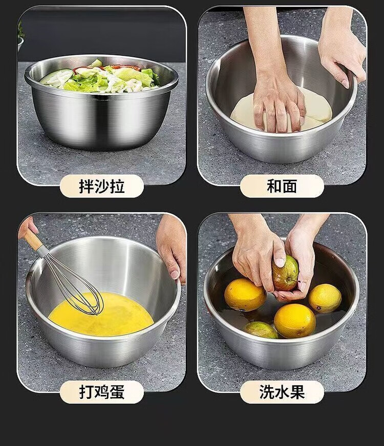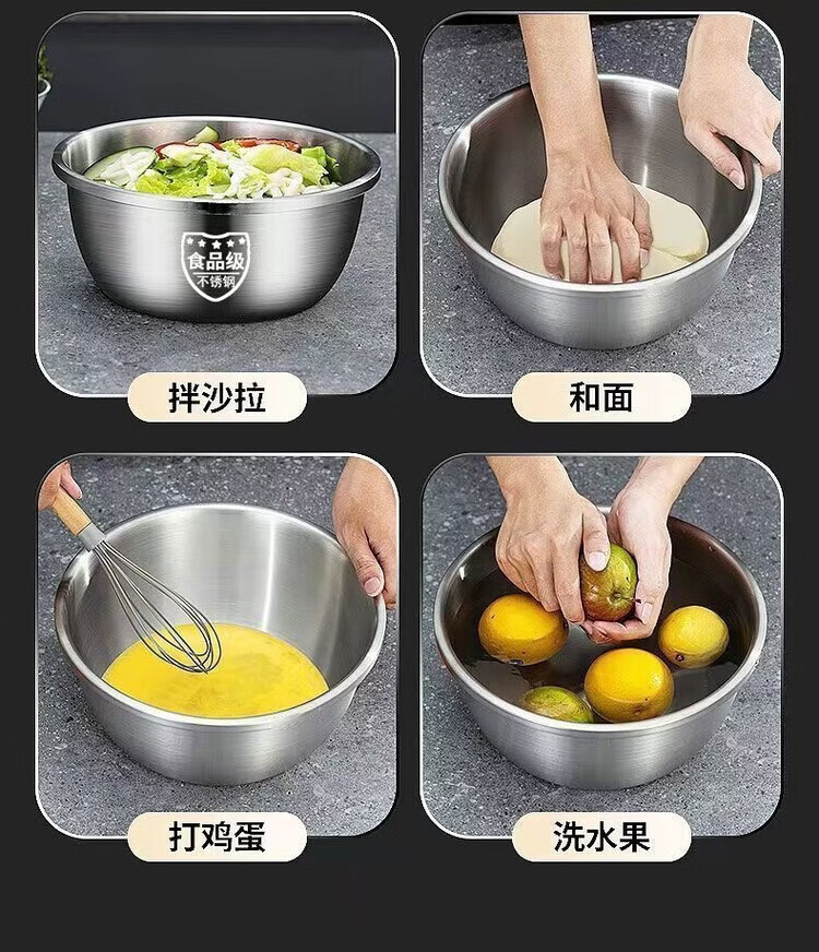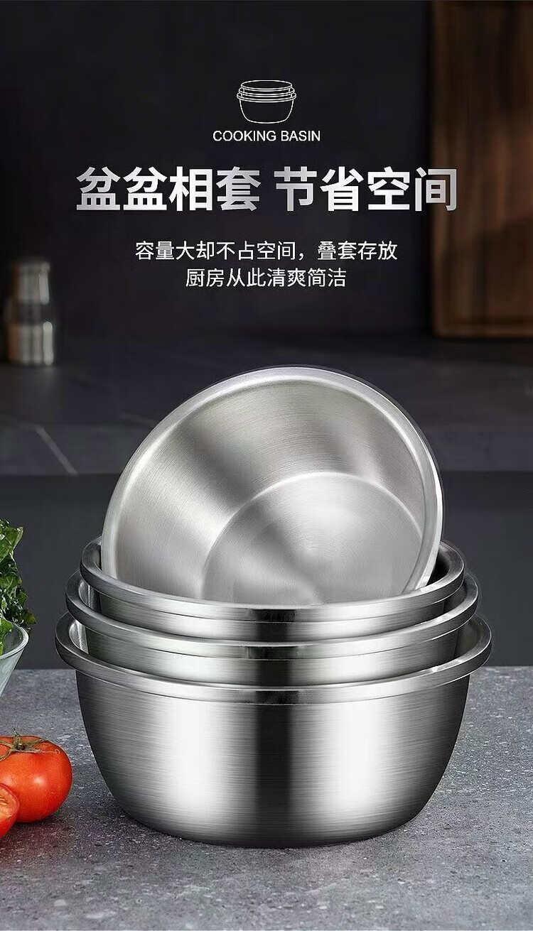 简漾不锈钢盆大号和面盆特大脸盆加厚盆子揉面家用大盆厨房洗菜盆面盆 食品钢 一个装【14cm】厨房单用