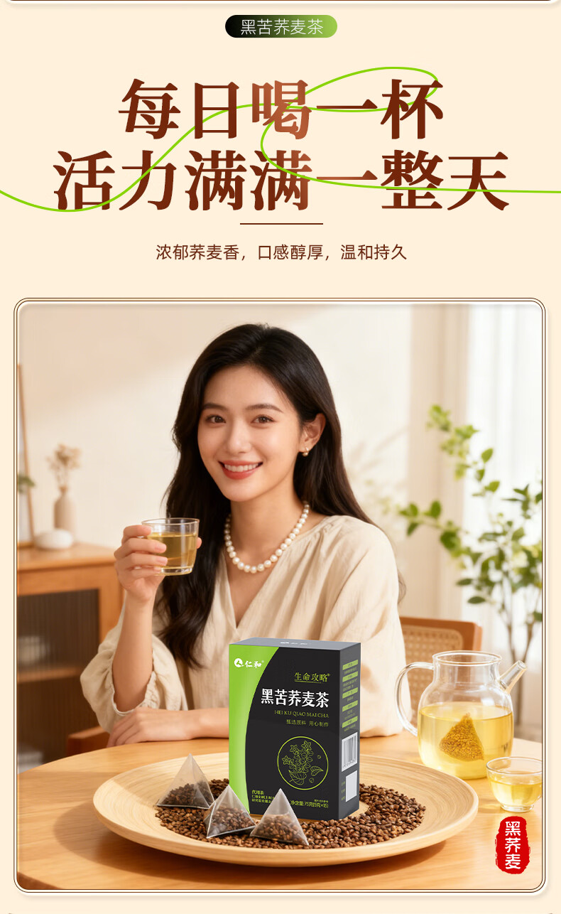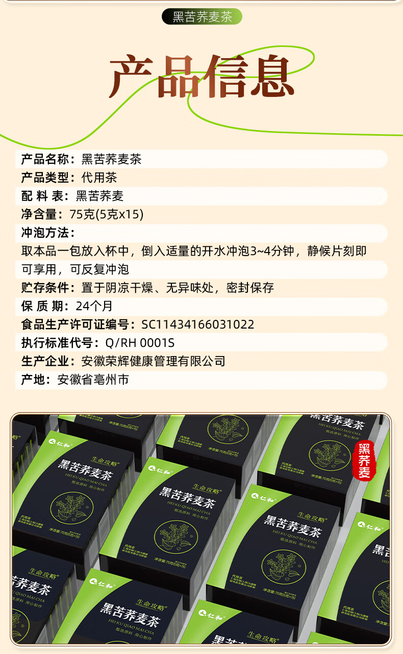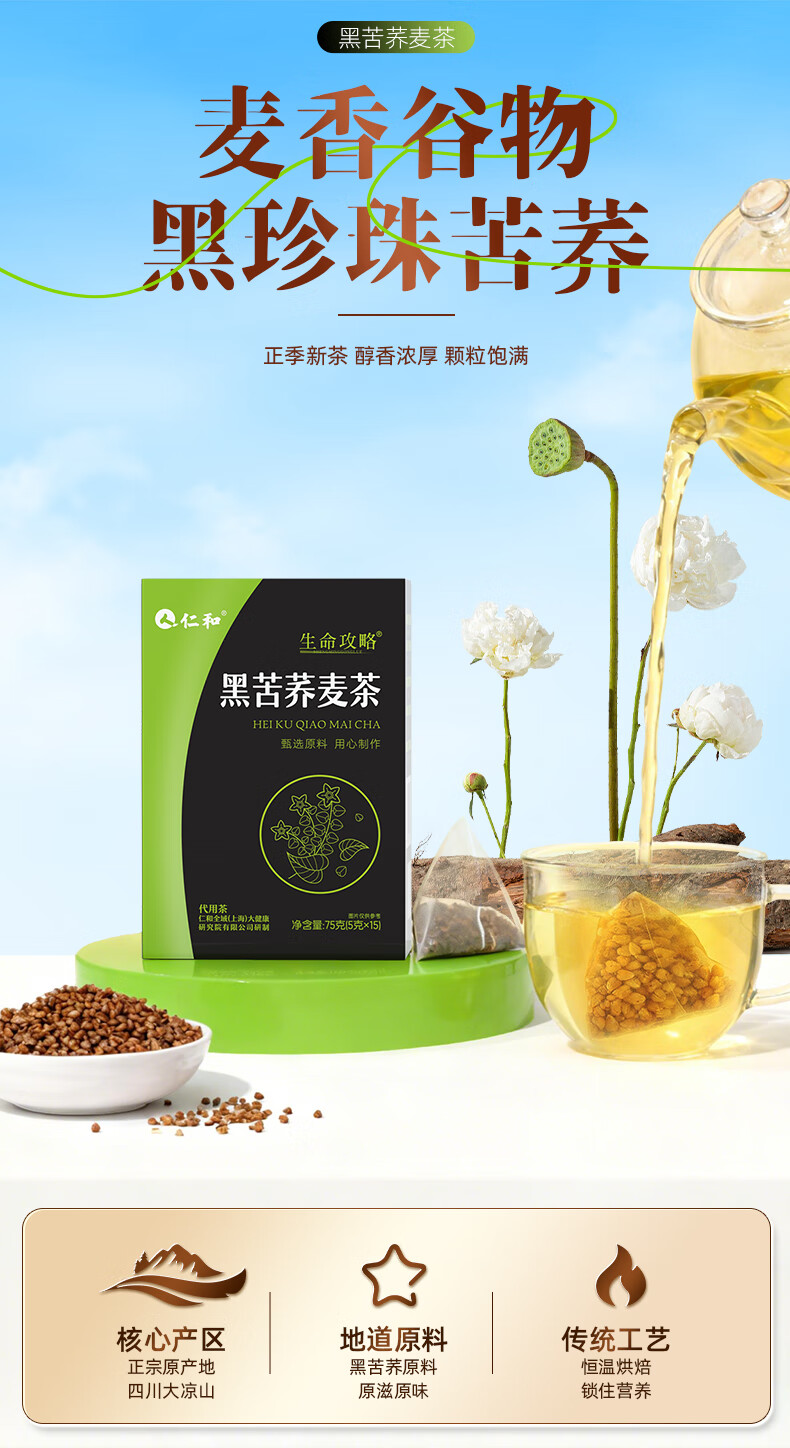 仁和黑苦荞麦茶5g*15袋养生茶健康茶整颗粒泡水浓香盒装 75g*2盒 30袋