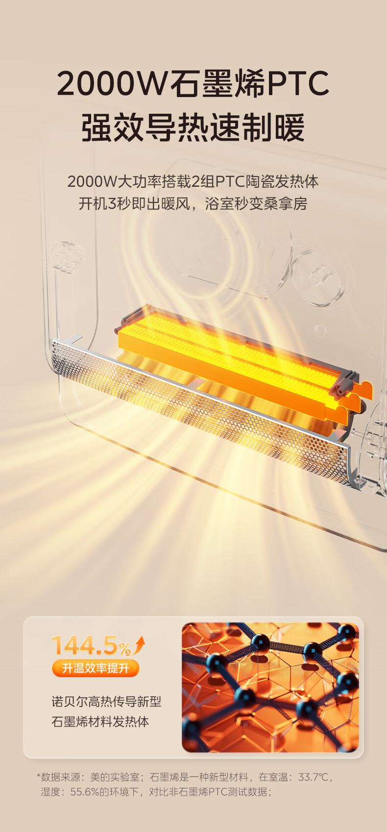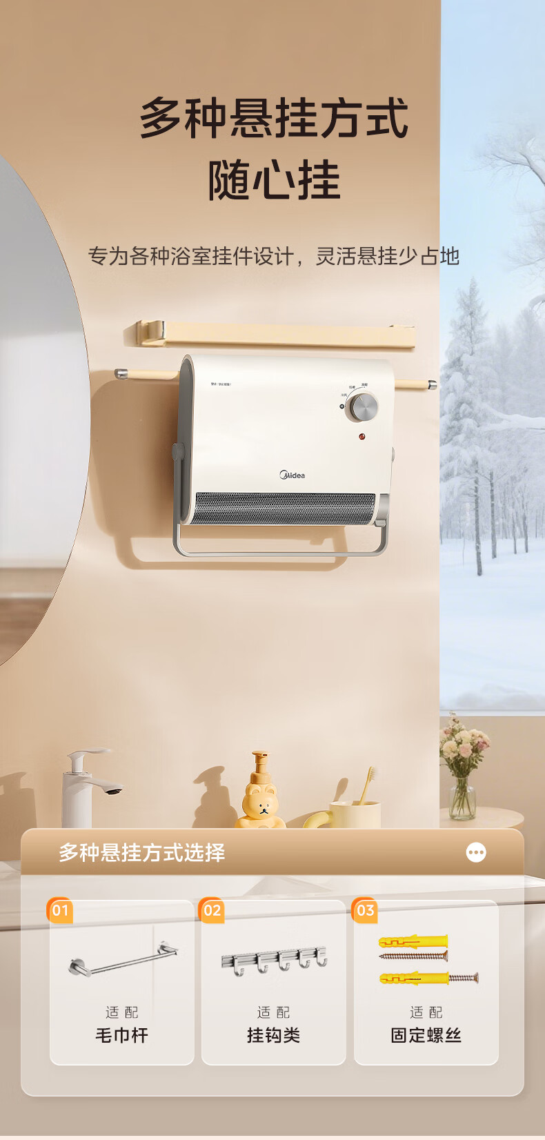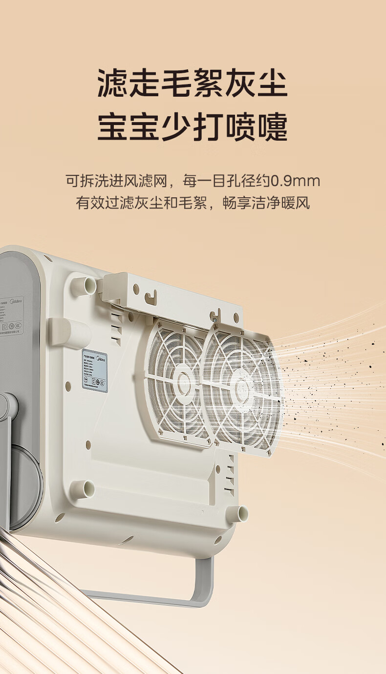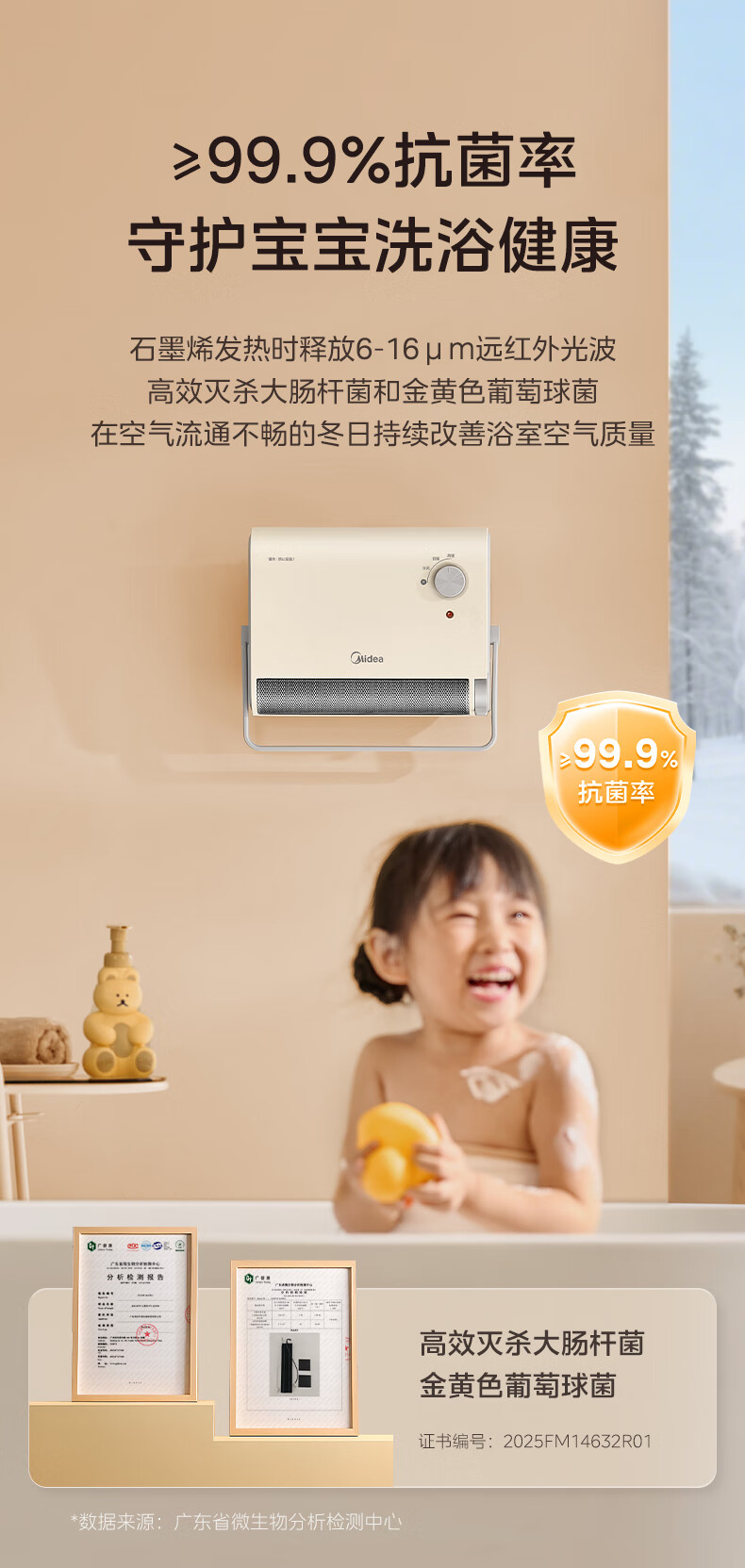 美的(Midea)【浴室新贵】暖风机浴室/台壁两用取暖器/石墨烯极速升温/节能小太阳抗菌过滤低噪音可移动HFS20XQ