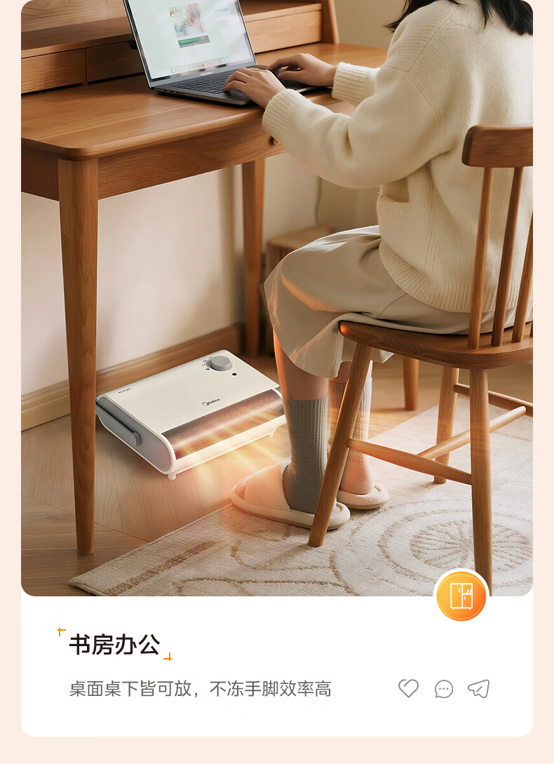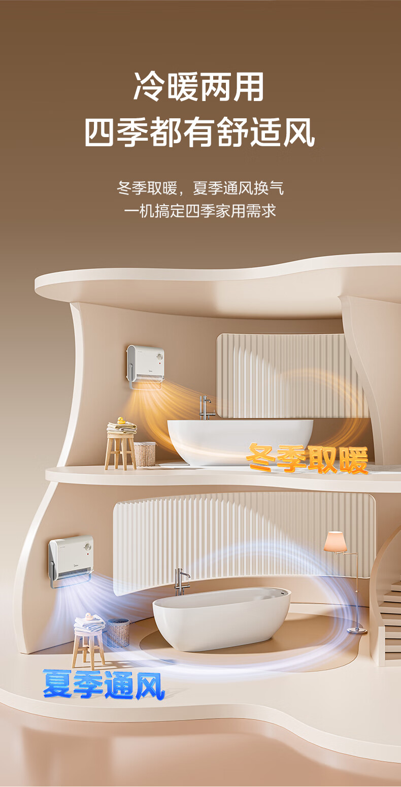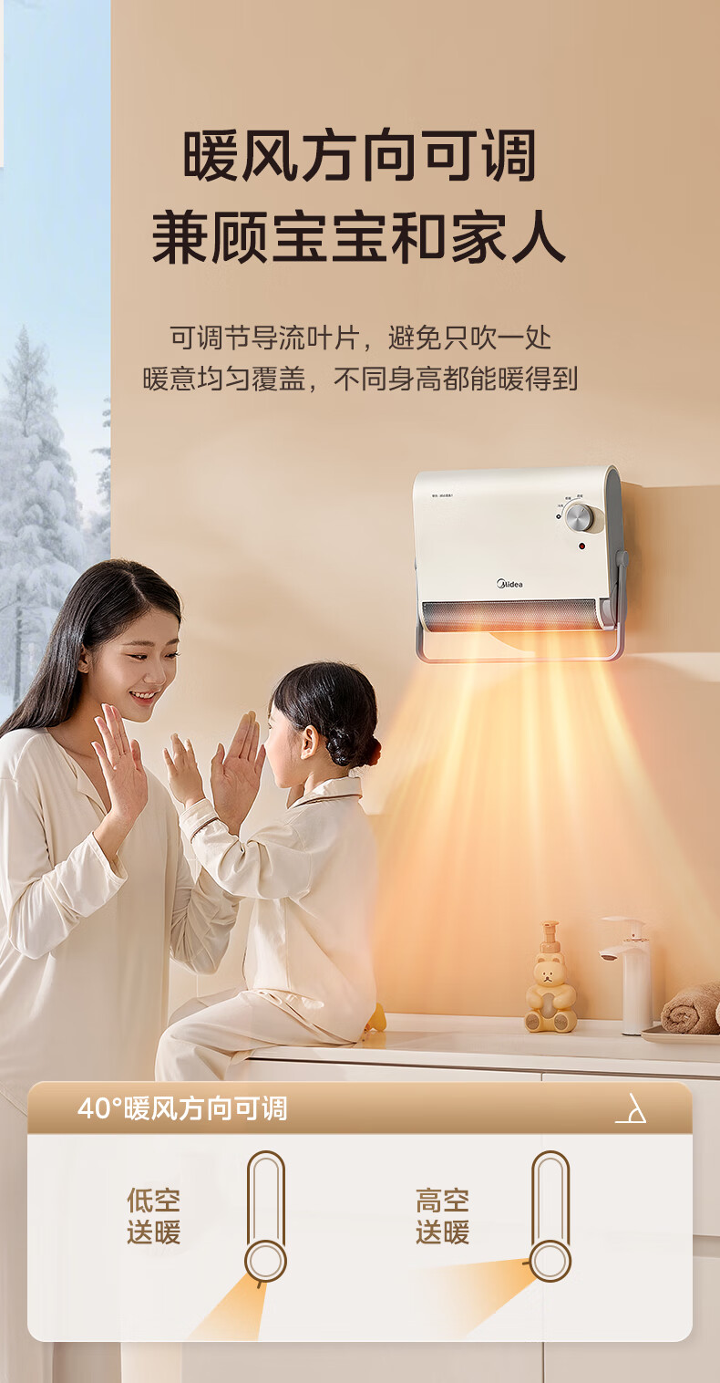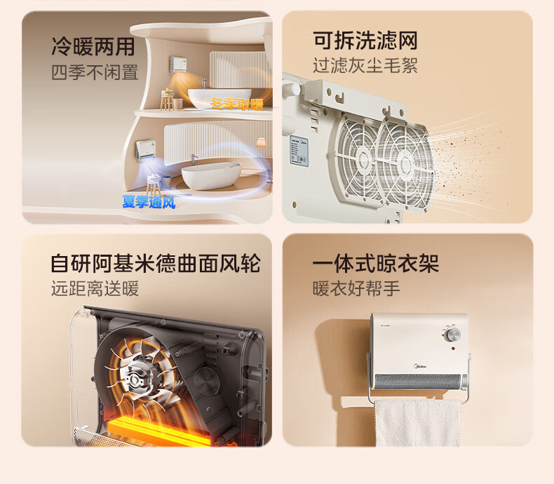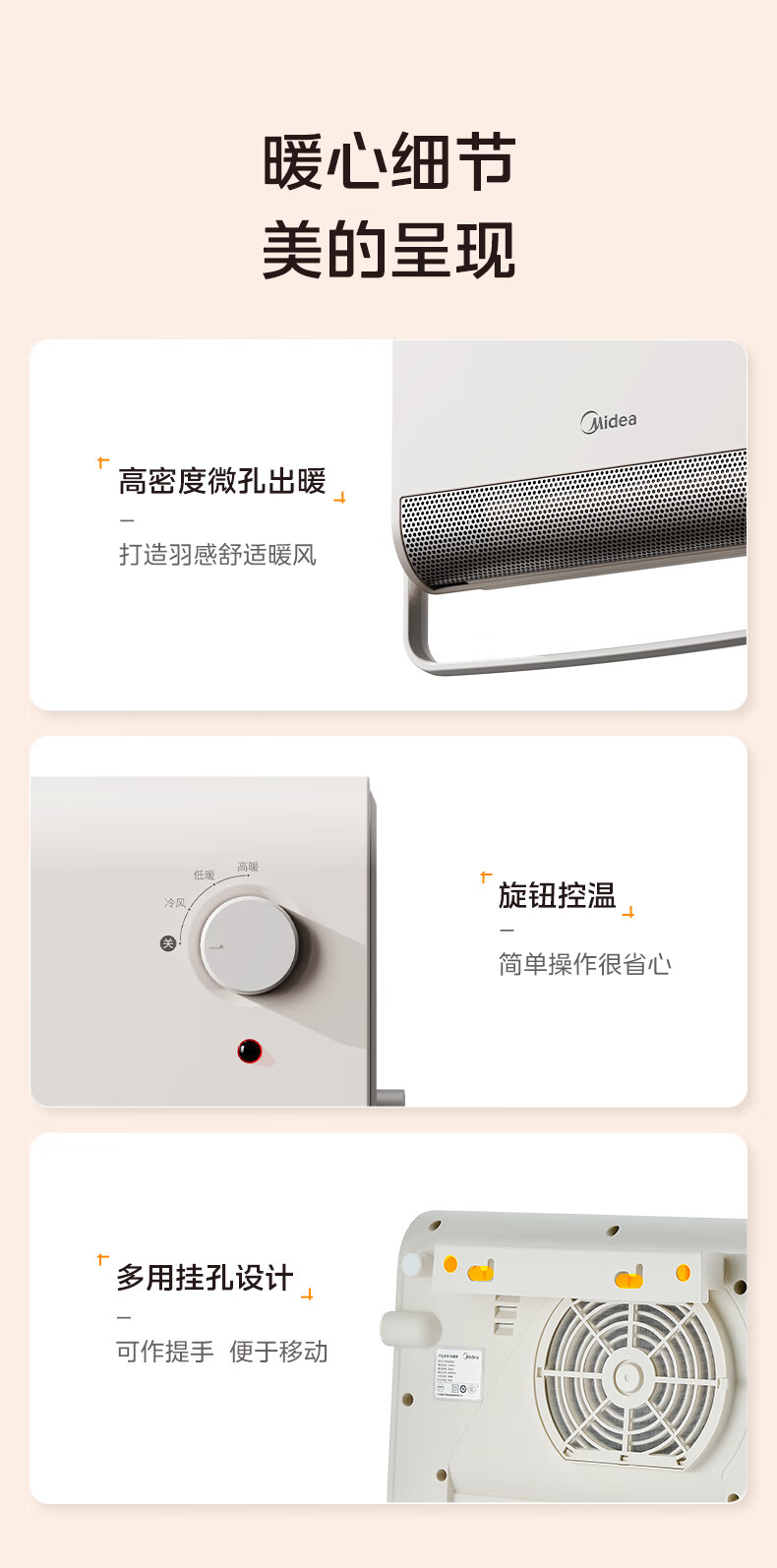 美的(Midea)【浴室新贵】暖风机浴室/台壁两用取暖器/石墨烯极速升温/节能小太阳抗菌过滤低噪音可移动HFS20XQ