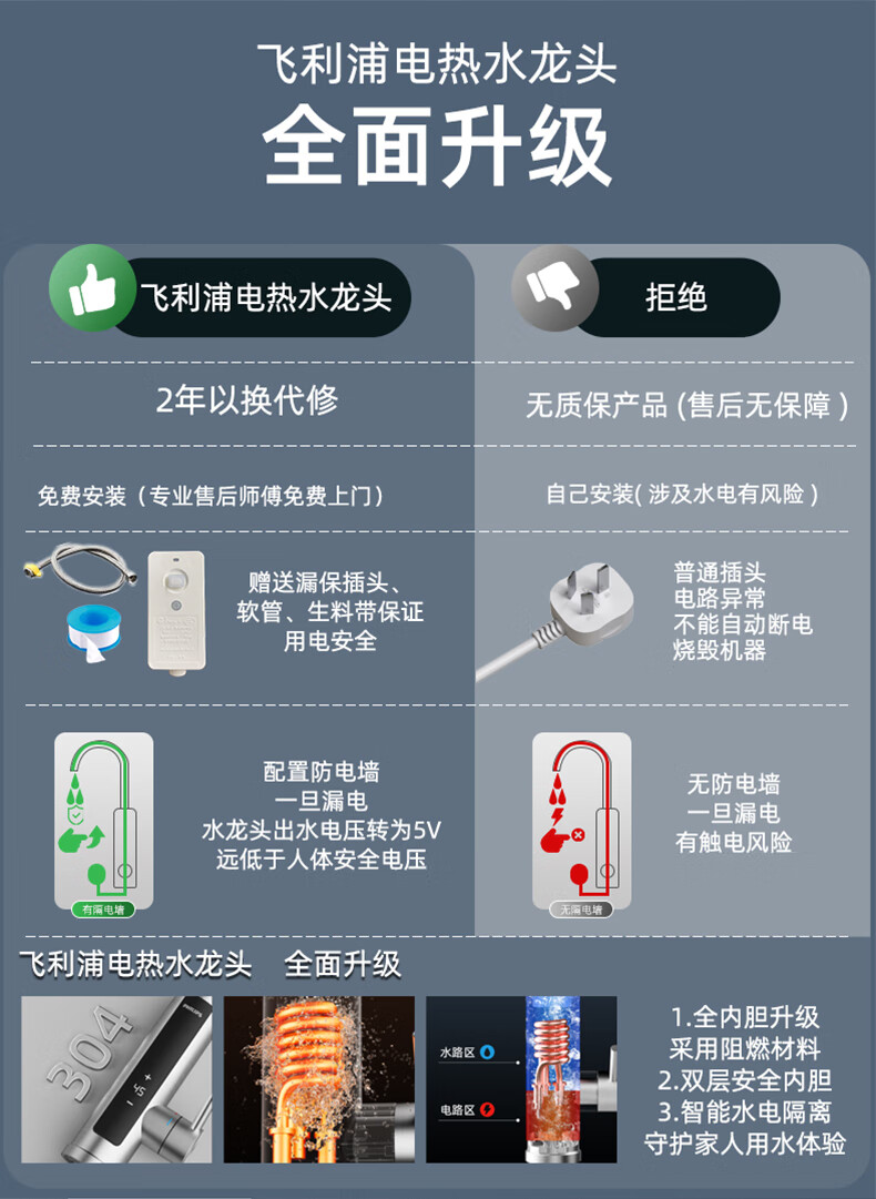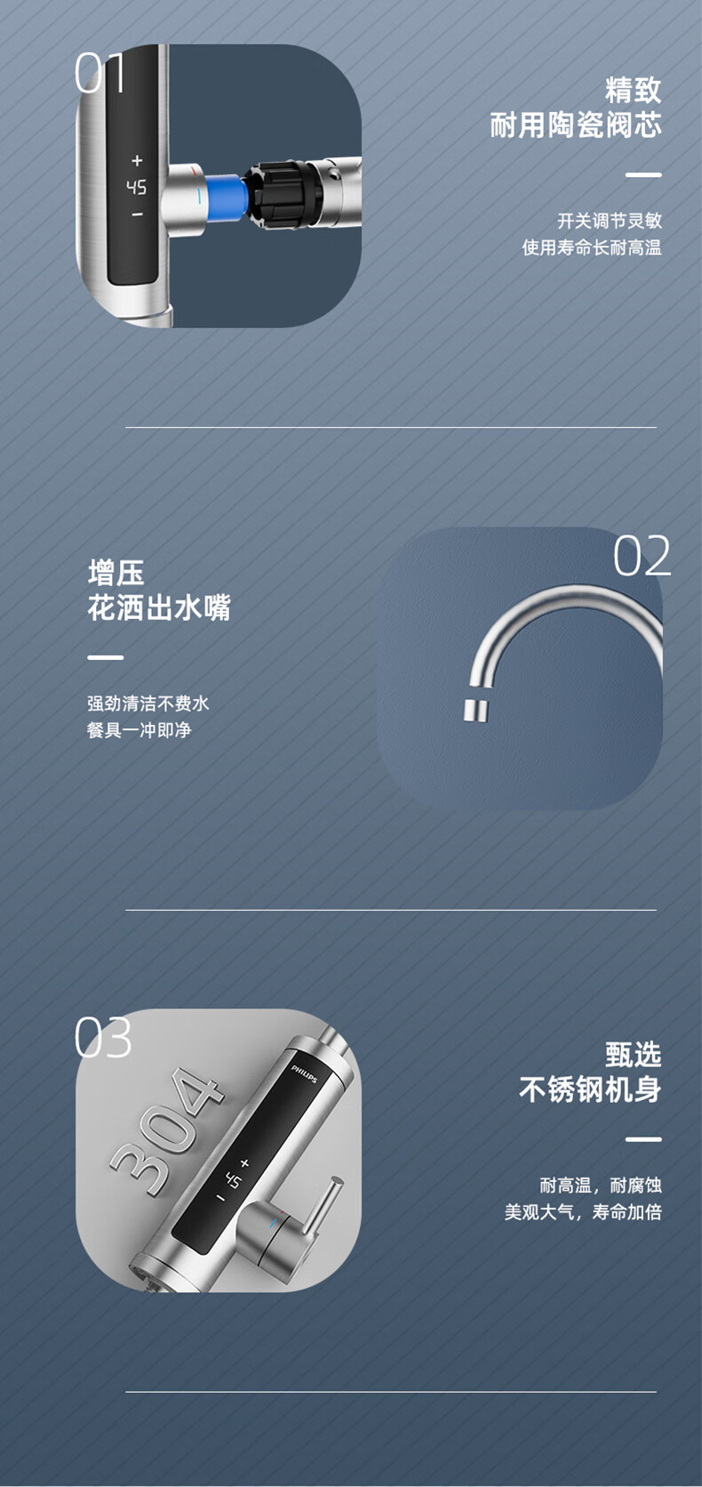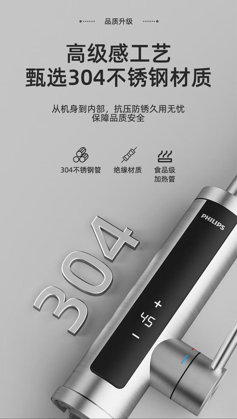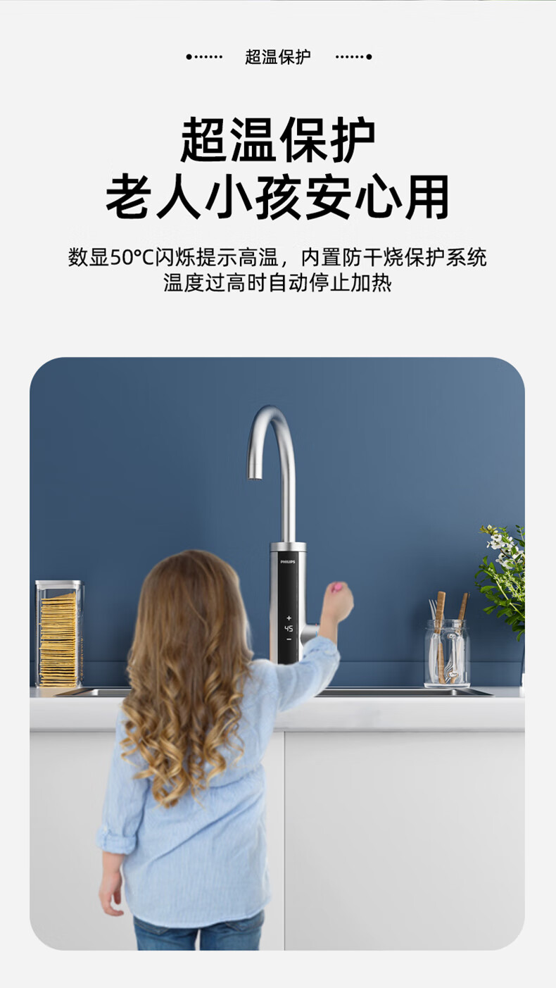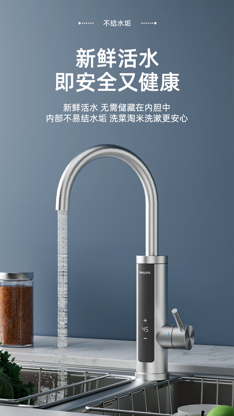 飞利浦Philips-AWH1037电热水龙头奥即热式克变频恒温斯不锈钢过水热水器厨房家用卫生间款数显款包安装 【人气热卖】变频不锈钢款 AWH1037