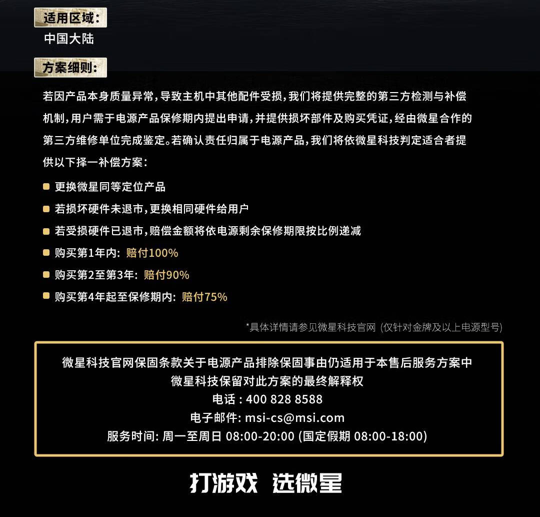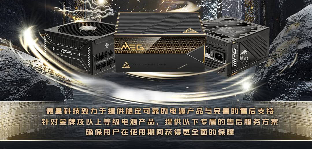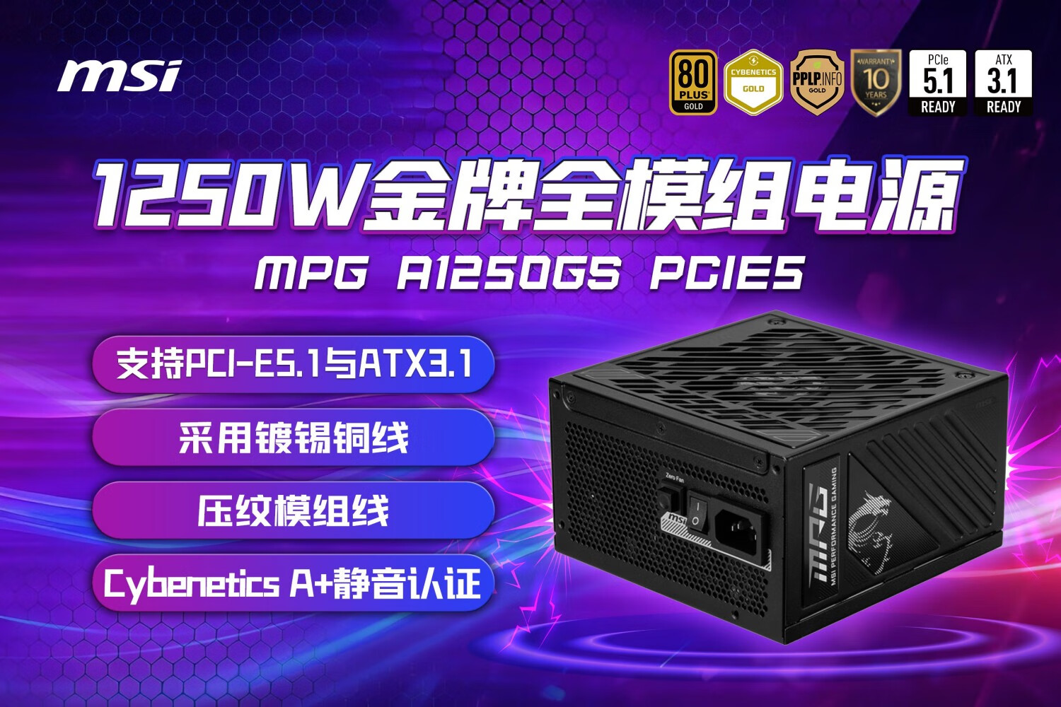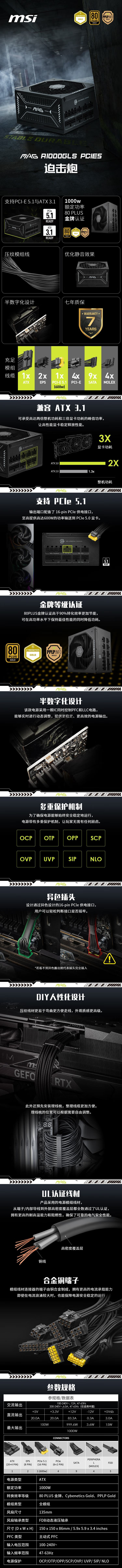 微星微星额定1000W金牌全模组电源ATX3.1/原生16PIN/PCIE5.1/纯铜压纹线/5080显卡 MAG A1000GLS迫击炮