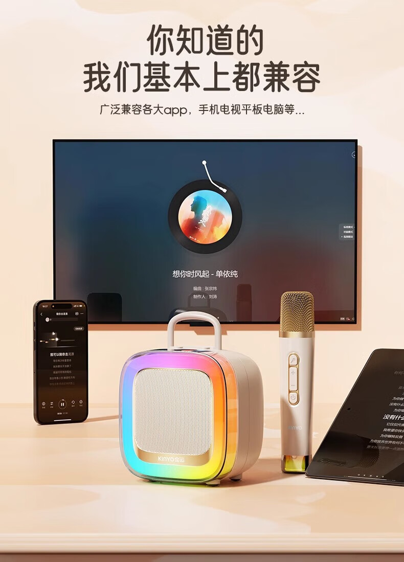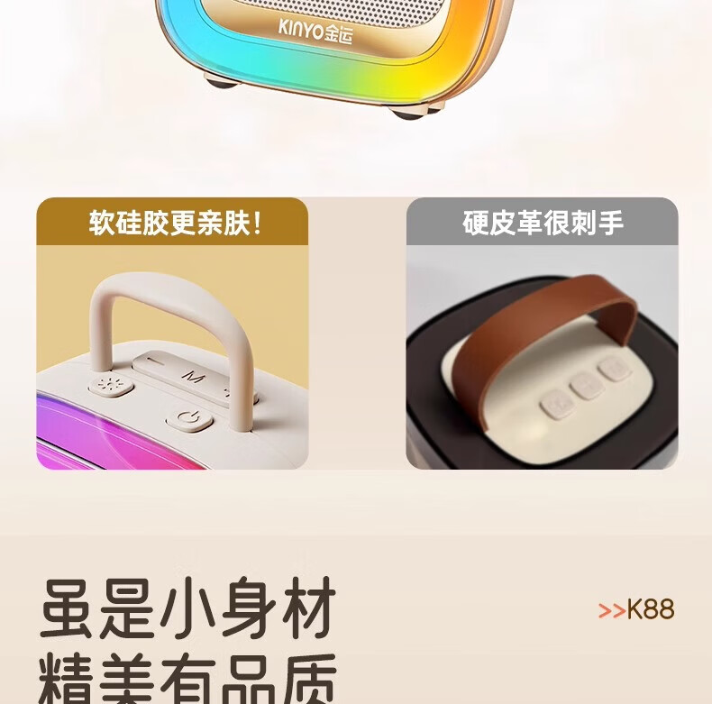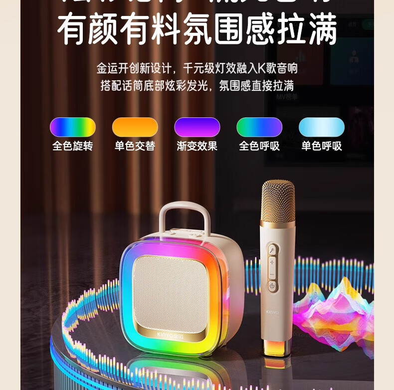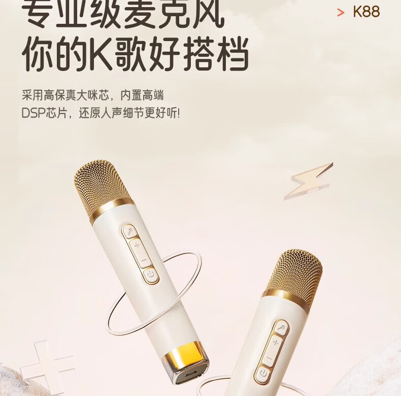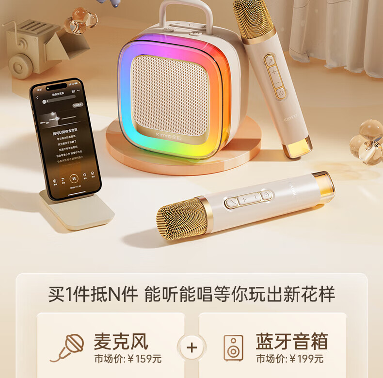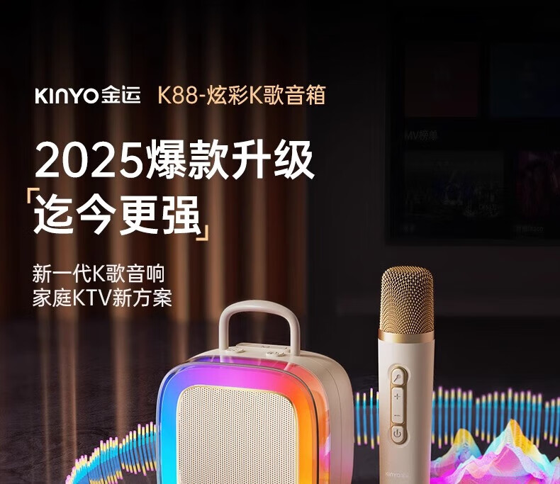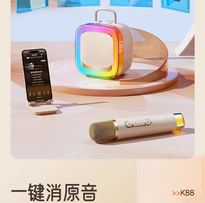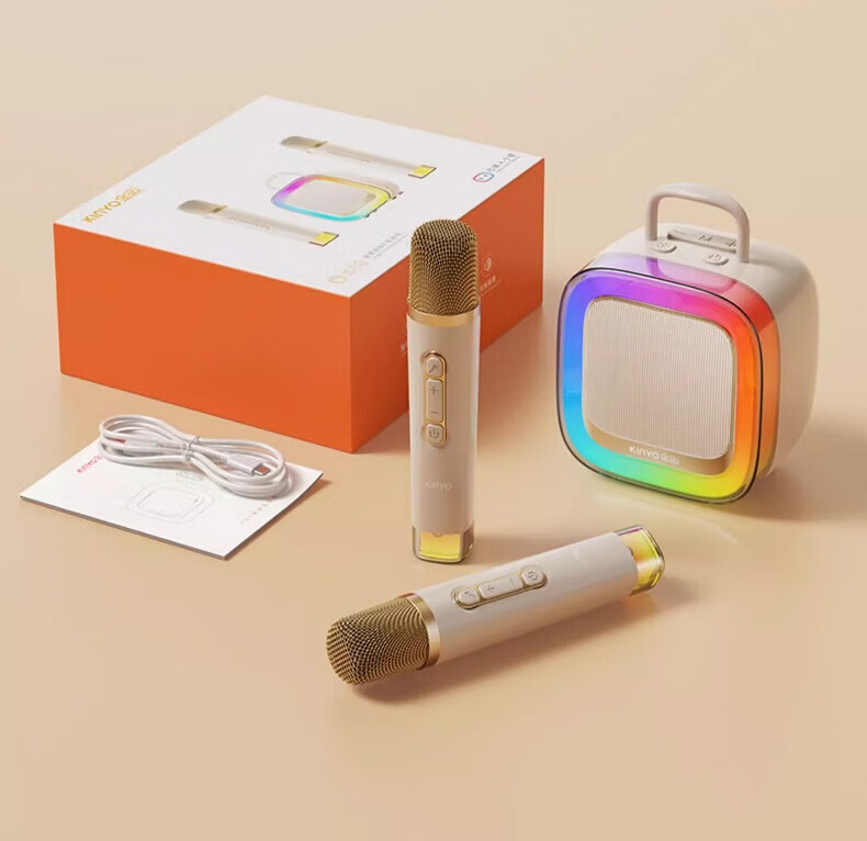 金运(KINYO)【25年升级款】k歌麦克风音箱一体机家庭KTV套装唱歌神器户外便携低音炮话筒蓝牙音响儿童礼物K88 像素白【KTV音效-杜比环绕】
