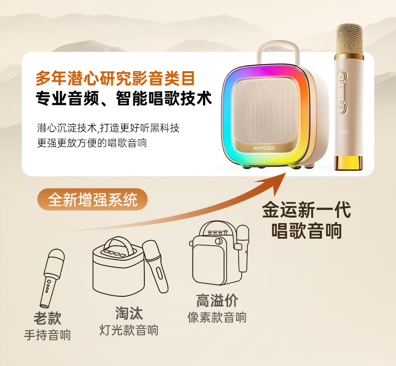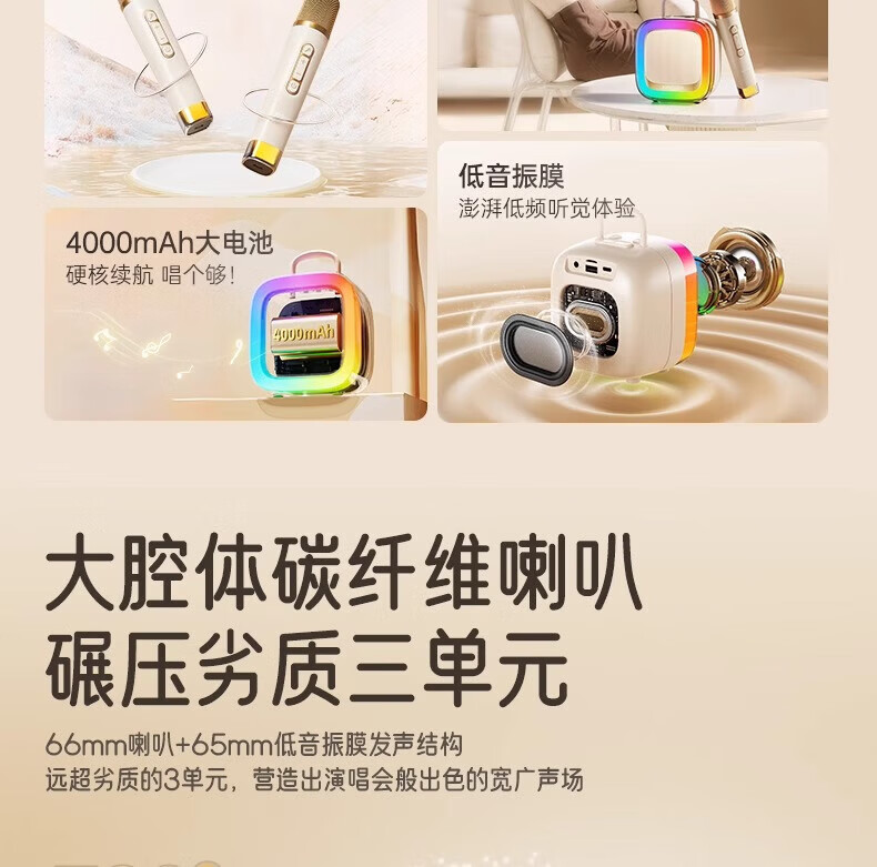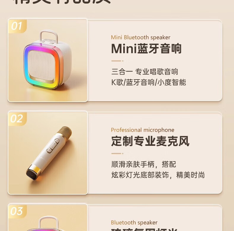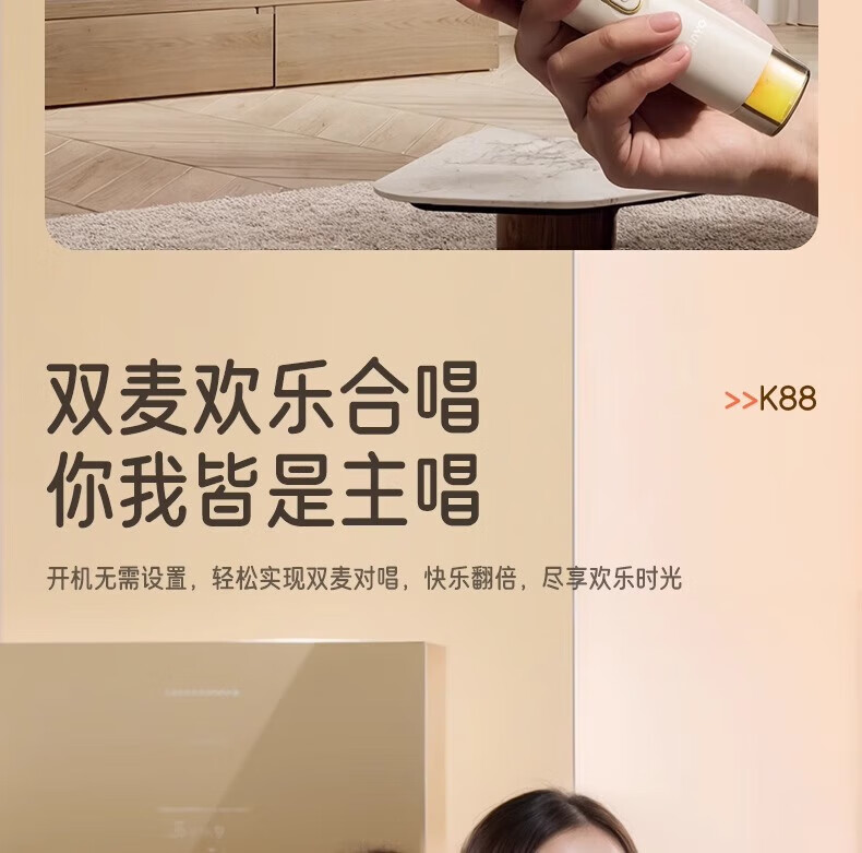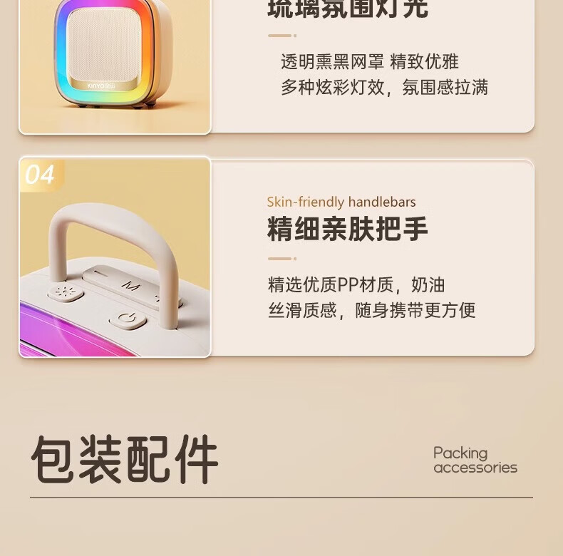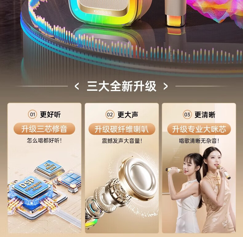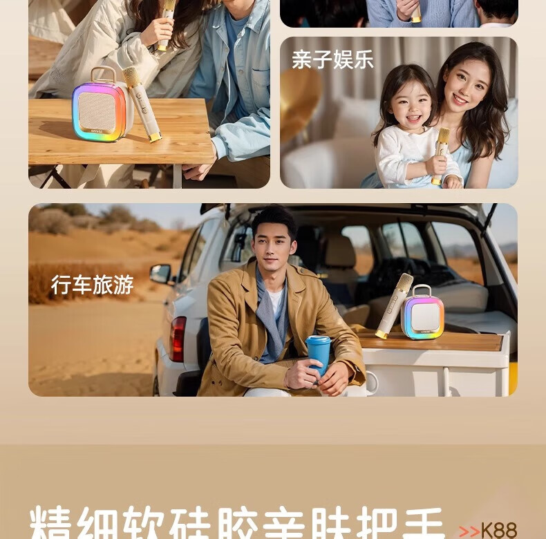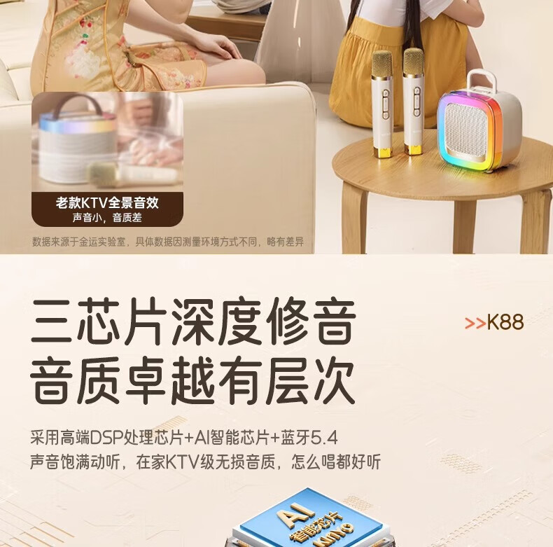 金运(KINYO)【25年升级款】k歌麦克风音箱一体机家庭KTV套装唱歌神器户外便携低音炮话筒蓝牙音响儿童礼物K88 像素白【KTV音效-杜比环绕】