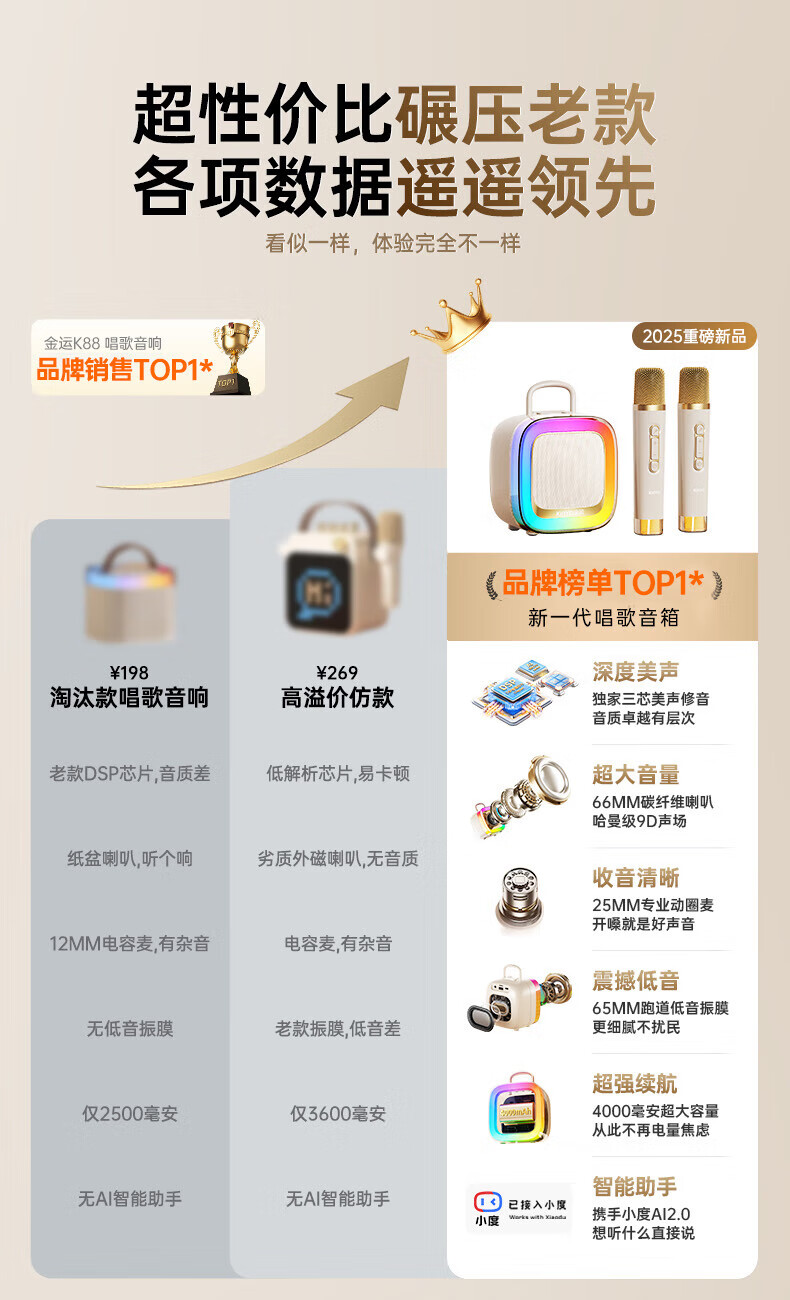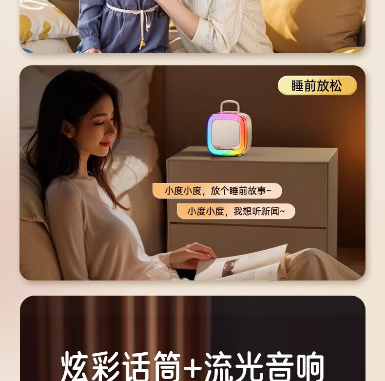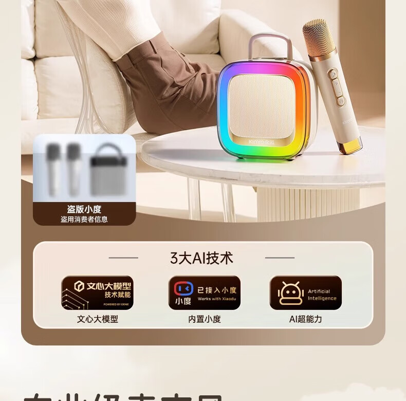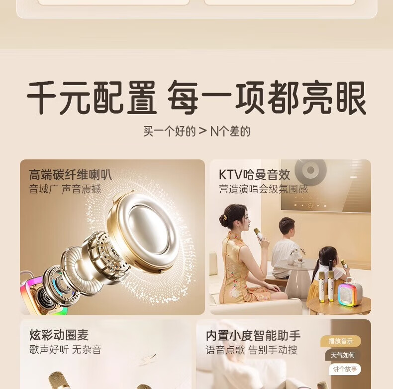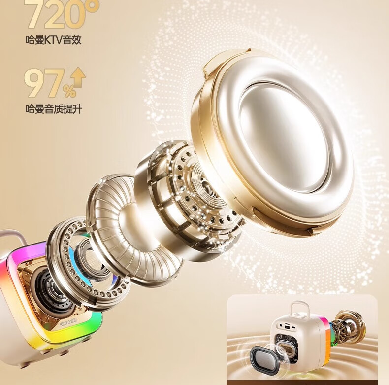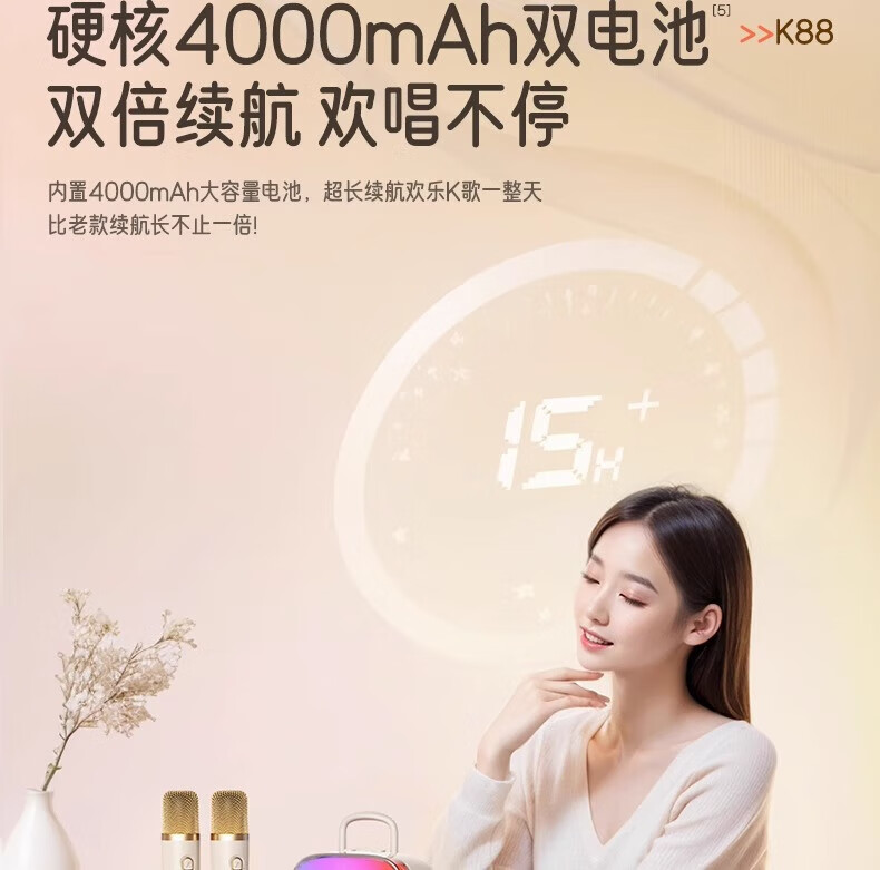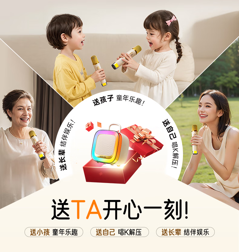 金运(KINYO)【25年升级款】k歌麦克风音箱一体机家庭KTV套装唱歌神器户外便携低音炮话筒蓝牙音响儿童礼物K88 像素白【KTV音效-杜比环绕】