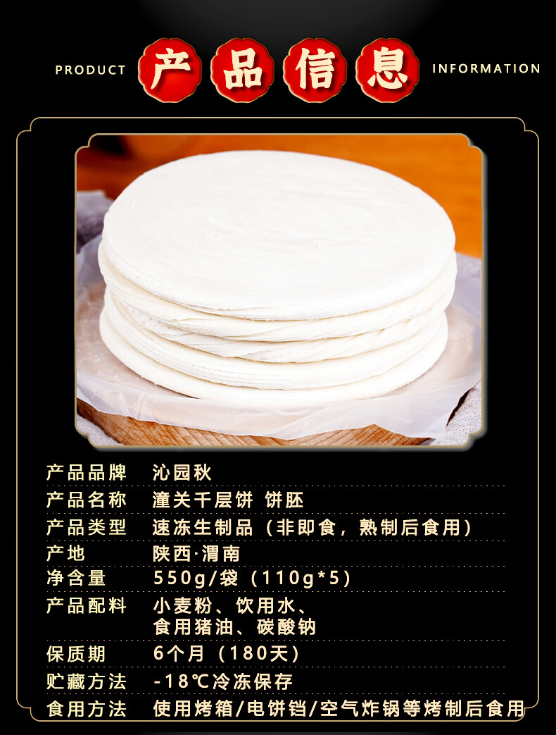 沁园秋潼关肉夹馍千层饼潼关饼胚 千层饼1100g(550g*2袋)