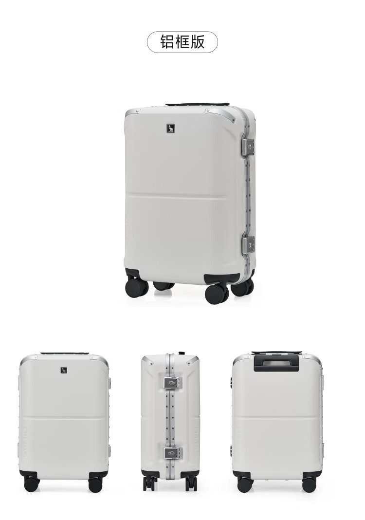 ROYAL ARMY多功能行李箱大容量旅行箱男女学生时尚潮流拉杆箱登机密码锁箱包 白色升级款-手机支架+杯架+挂钩 25英寸 -【需托运】