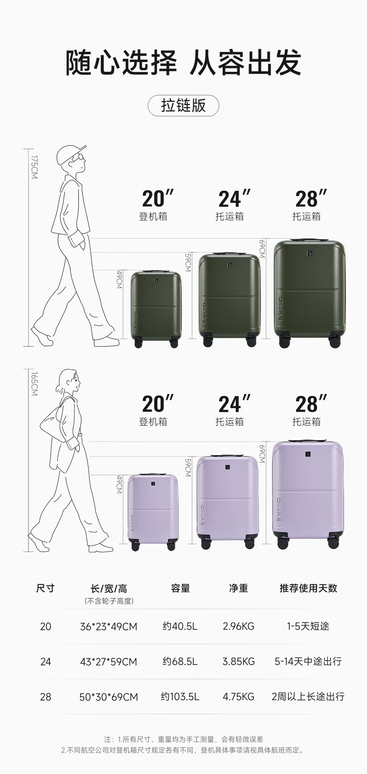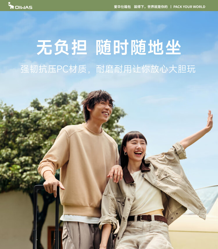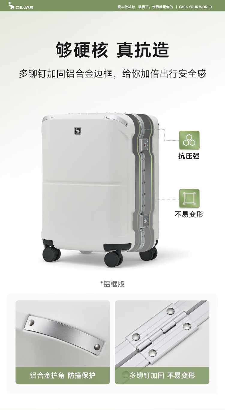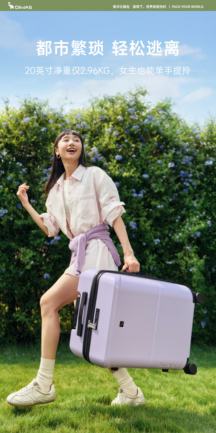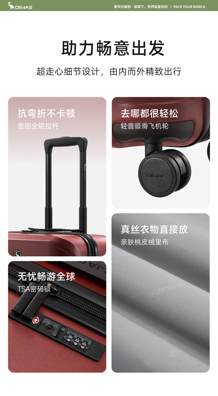 爱华仕(OIWAS)海岸线系列大容量轻音旅行李箱皮箱密码箱航空箱可登机轻便耐用 6848拉链款曜石黑 28英寸