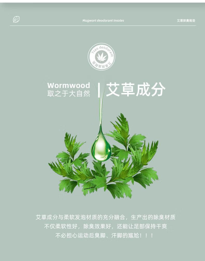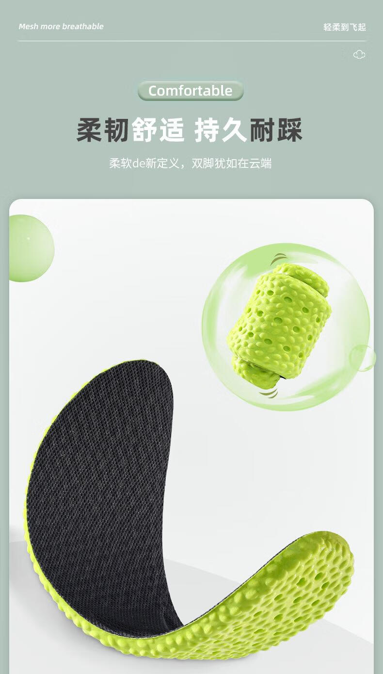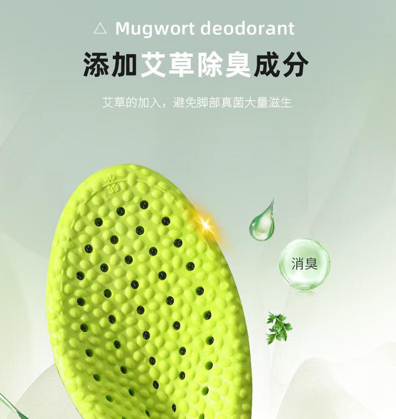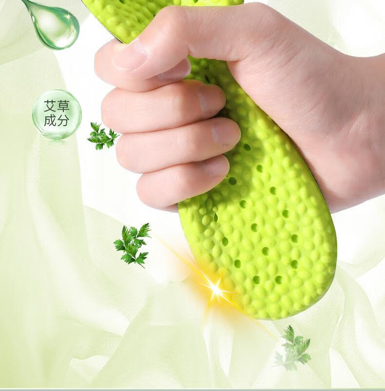 【甄选百货】踩屎感柔软舒适运动鞋垫减震透气艾草鞋垫pu高弹鞋垫 高弹减震—艾草防臭 45-46
