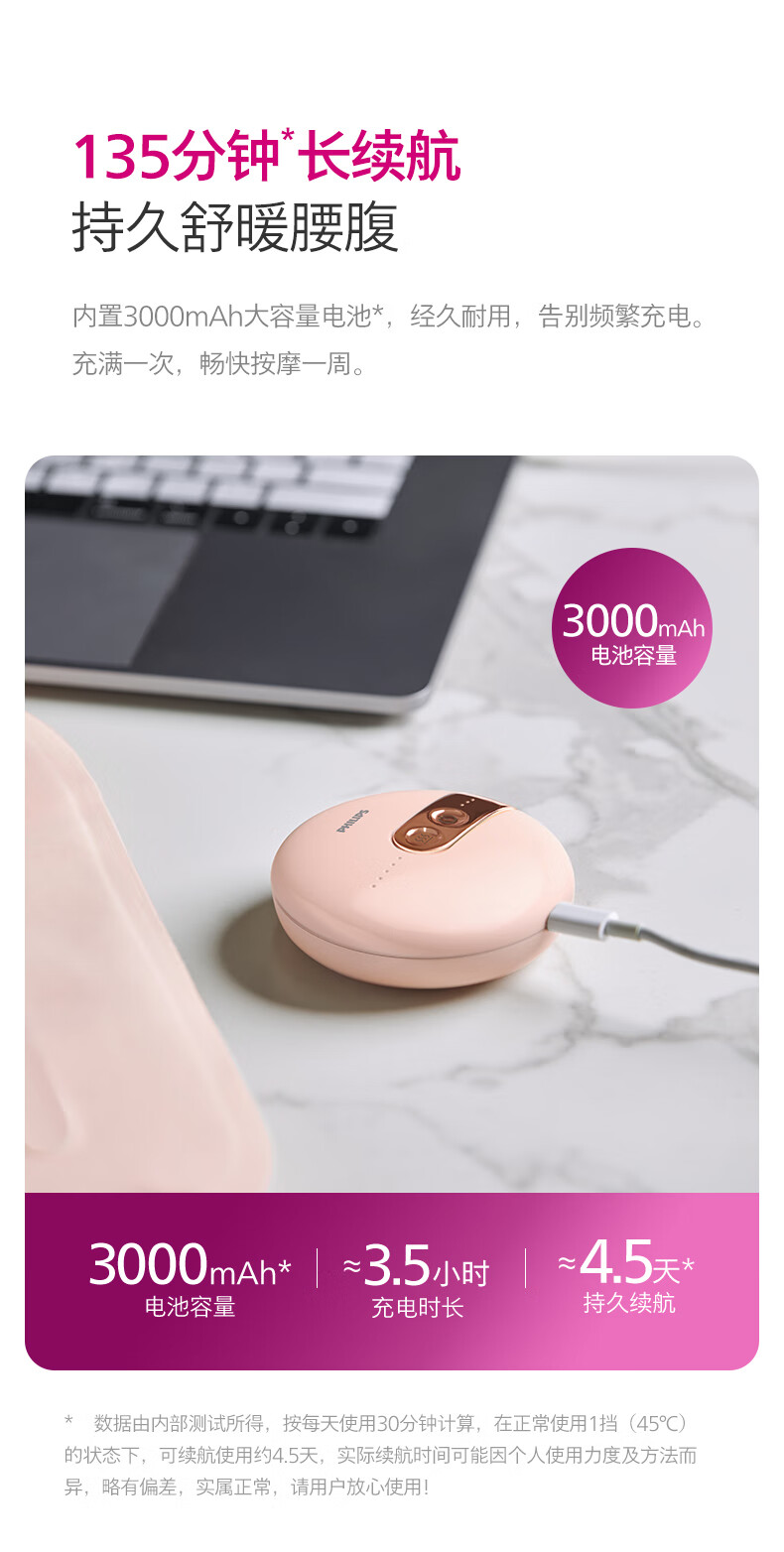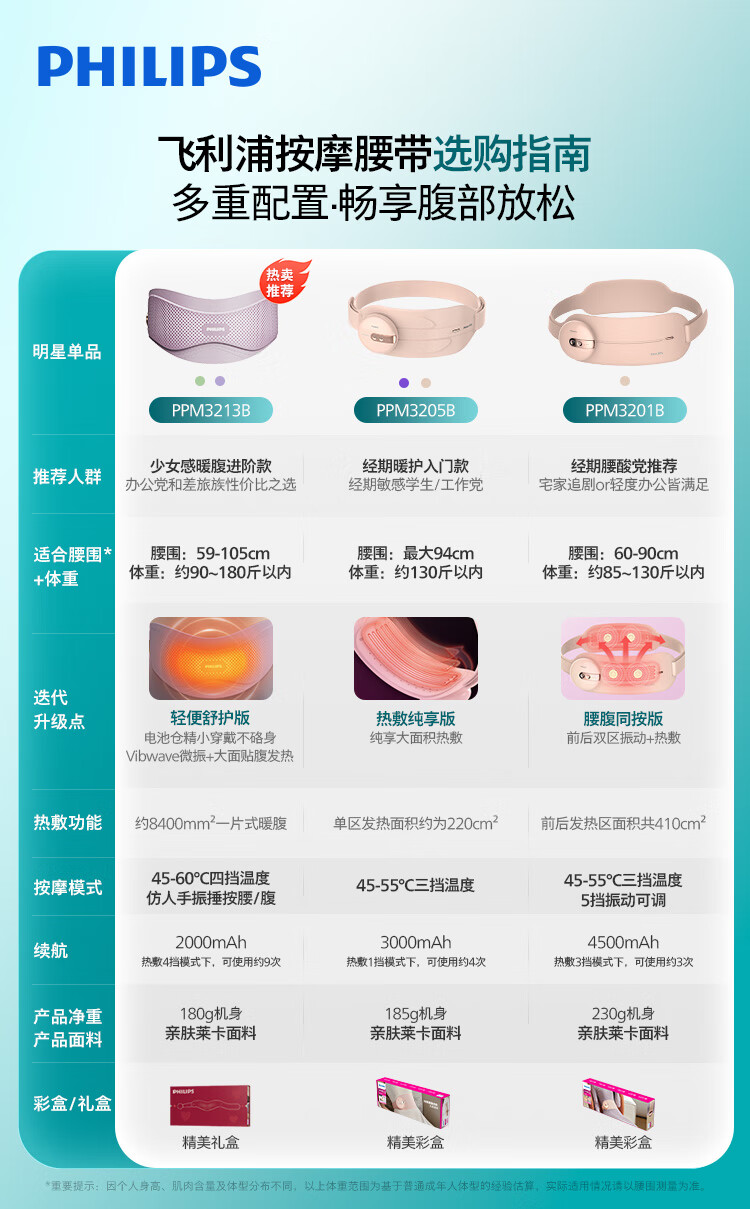 飞利浦(PHILIPS)腰部按摩仪 暖宫暖腹按摩腰带生理期大姨妈神器缓解腰酸护腰仪送女友老婆妈妈生日圣诞礼物 3205B