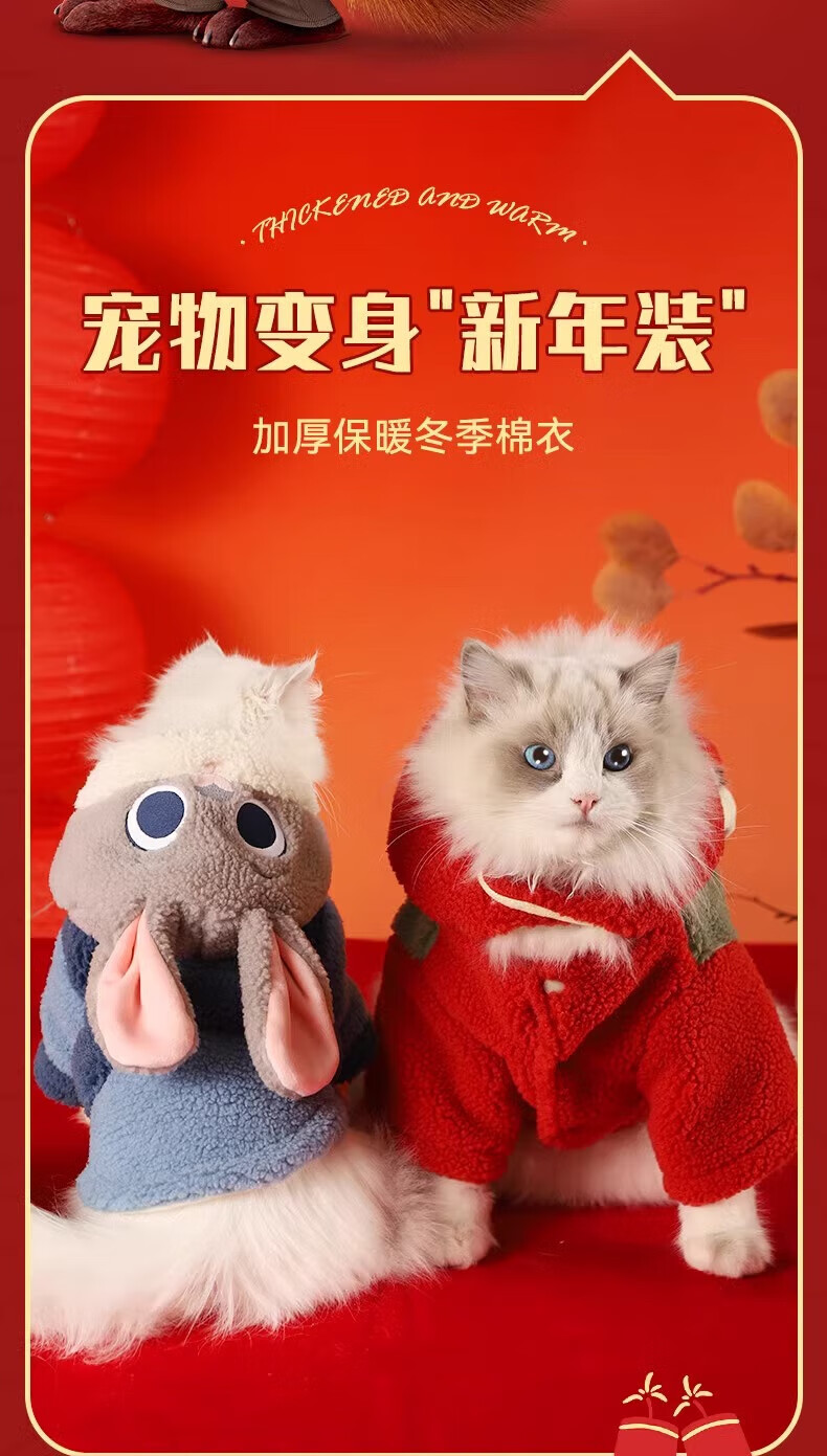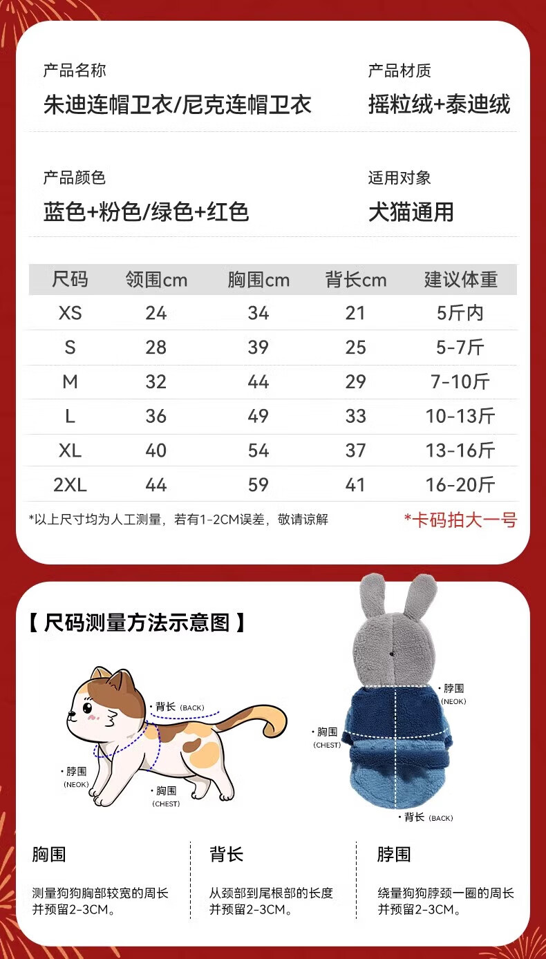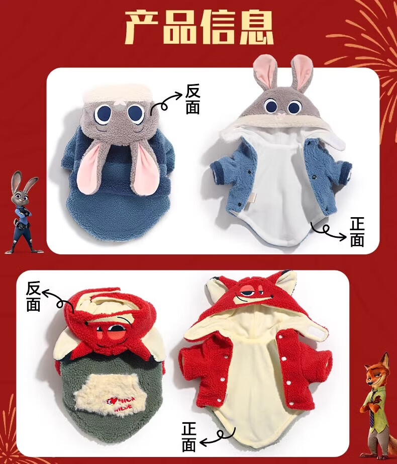 迪士尼尼克狗狗衣服秋冬款小狗泰迪中小型犬比熊柯基宠物冬季保暖猫衣服