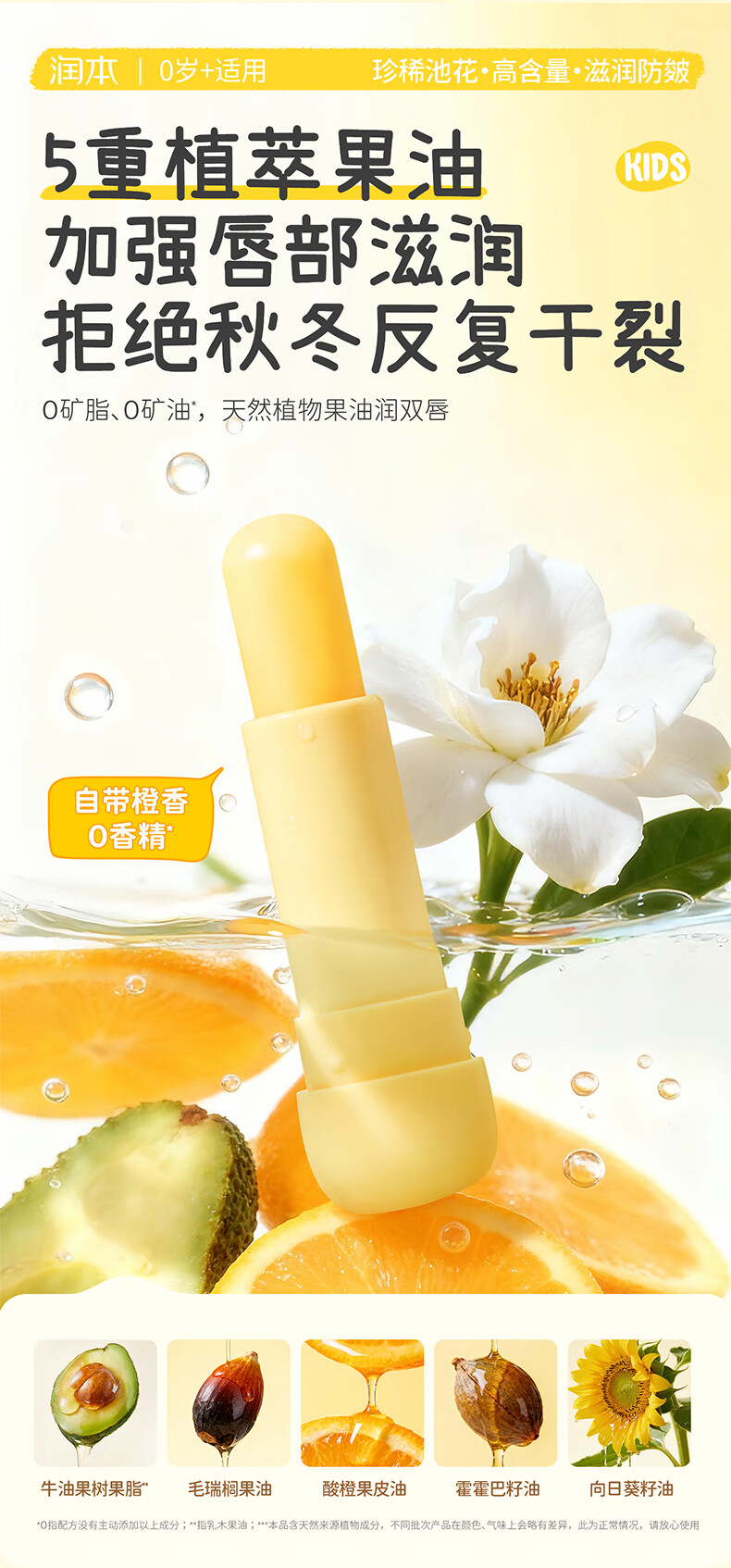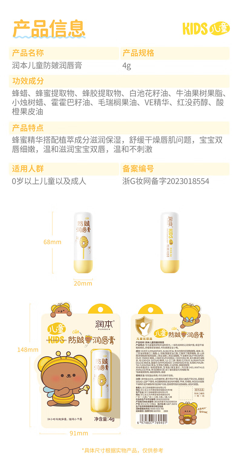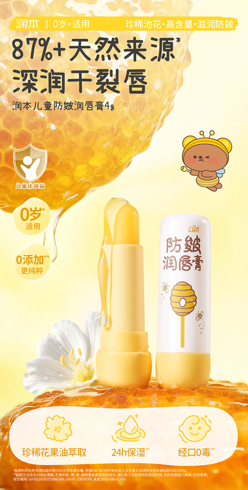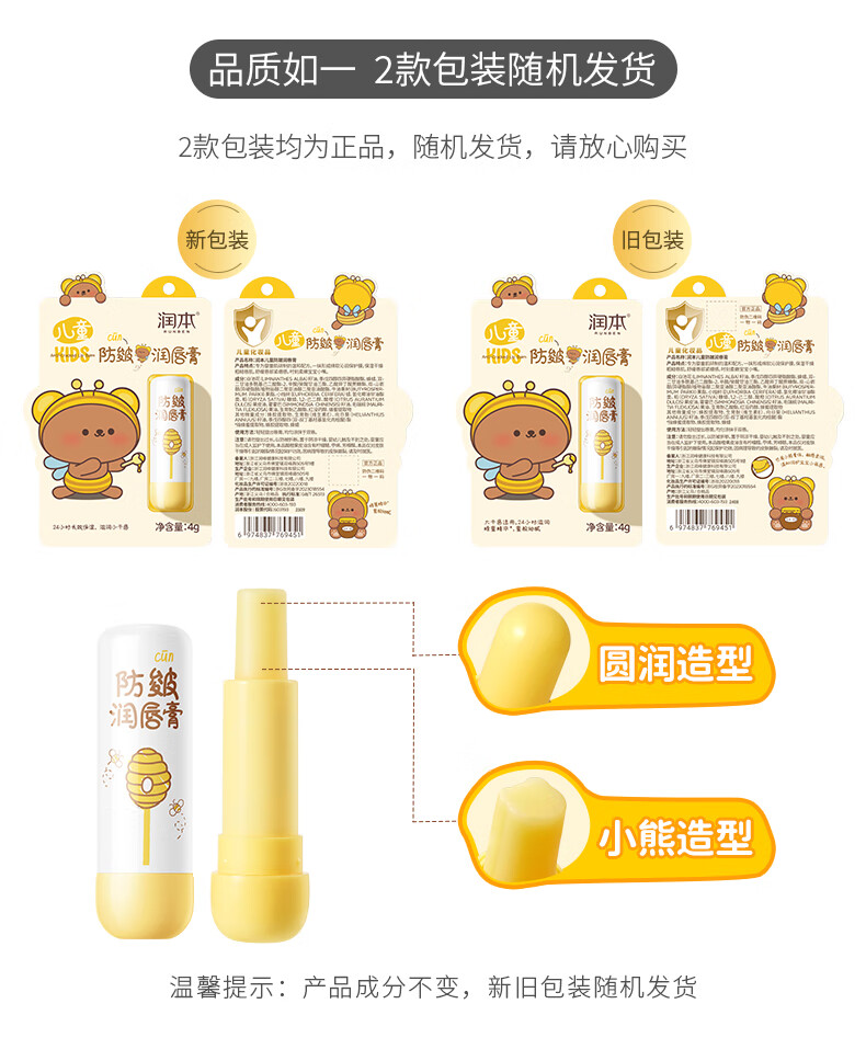润本(RUNBEN)儿童唇膏婴儿护唇膏宝宝润唇膏 防皴滋润保湿防干裂秋冬4g