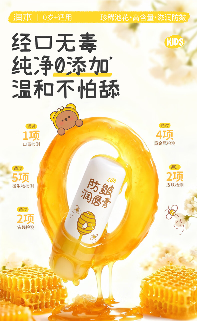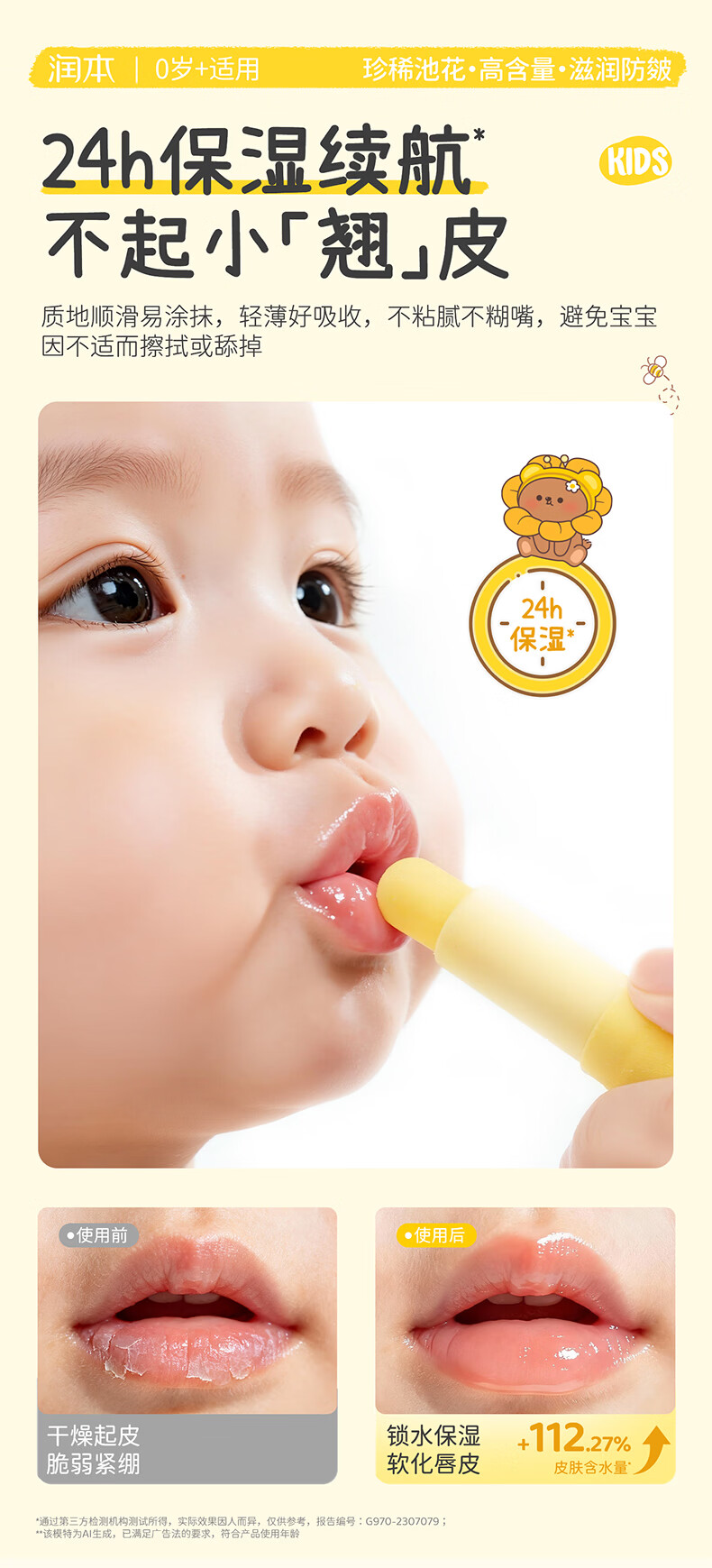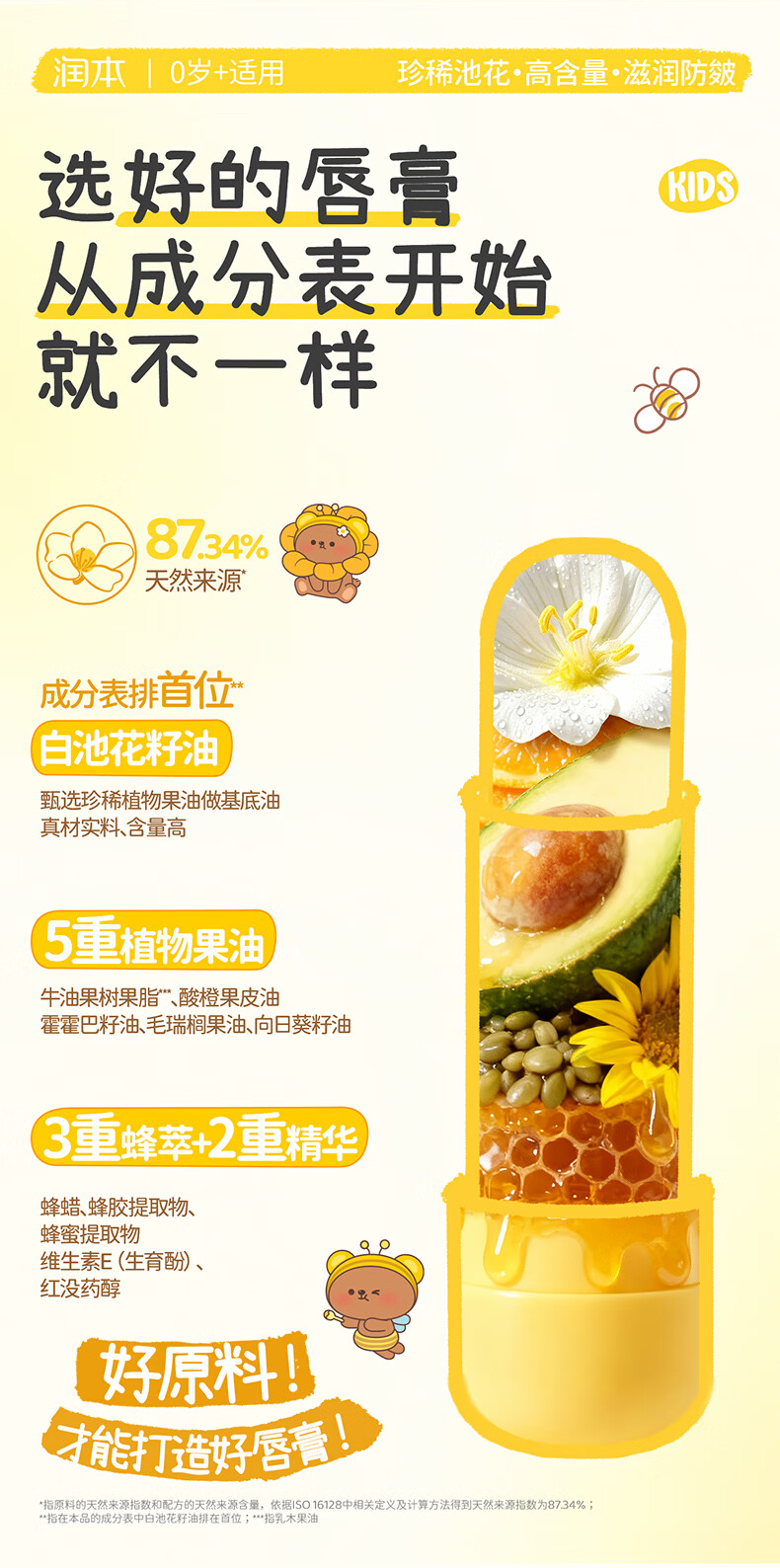 润本(RUNBEN)儿童唇膏婴儿护唇膏宝宝润唇膏 防皴滋润保湿防干裂秋冬4g