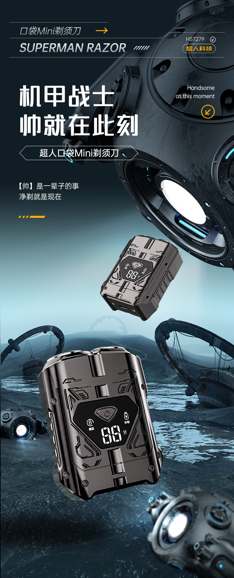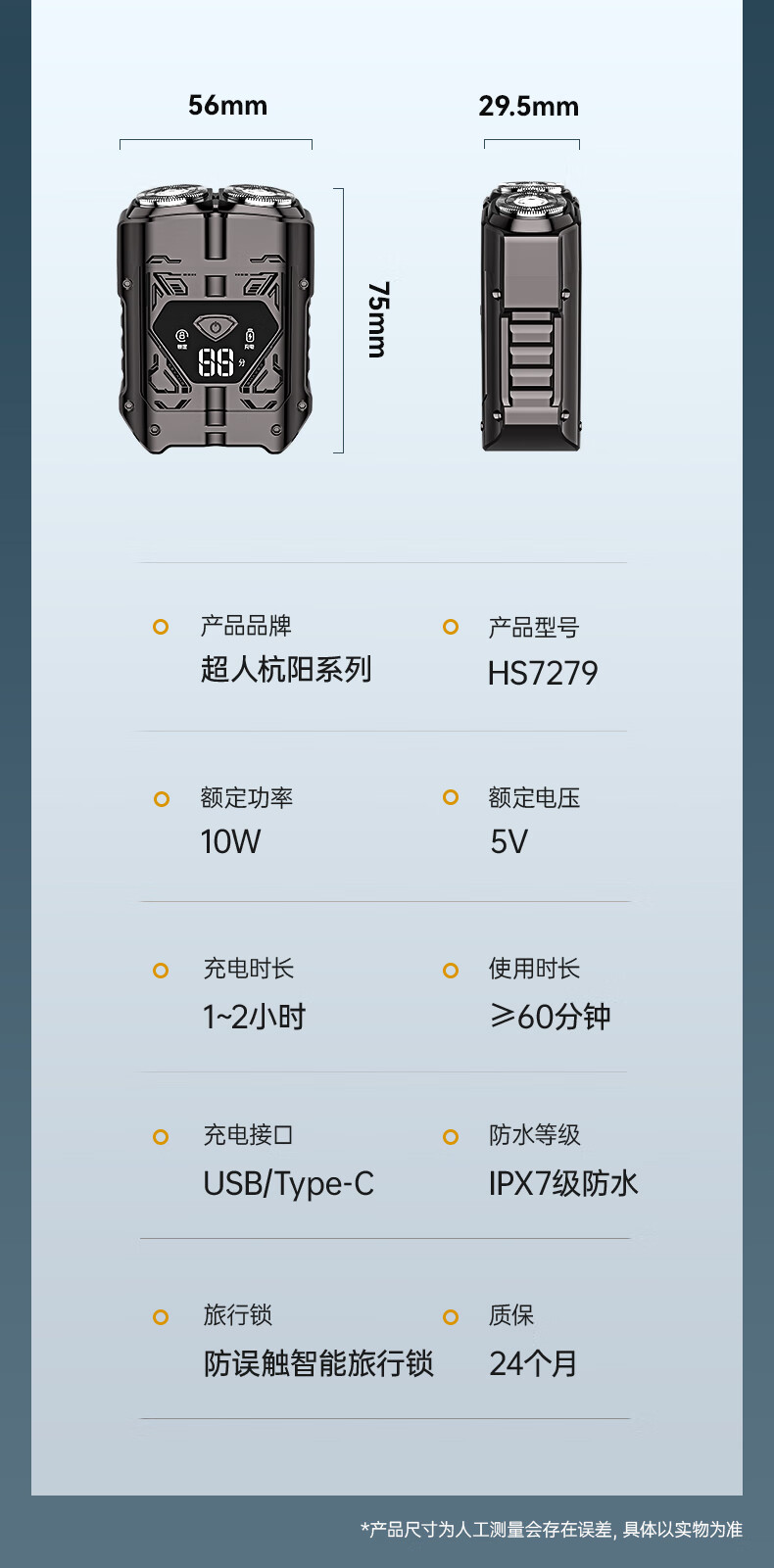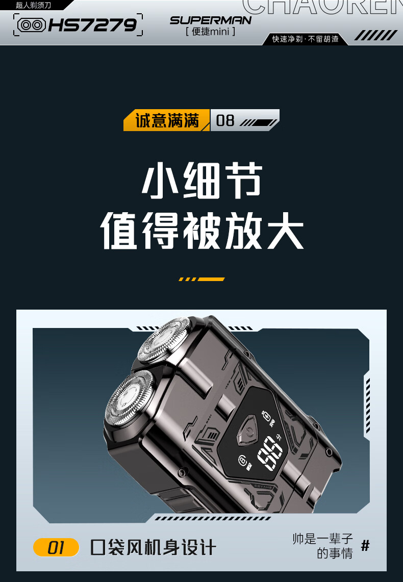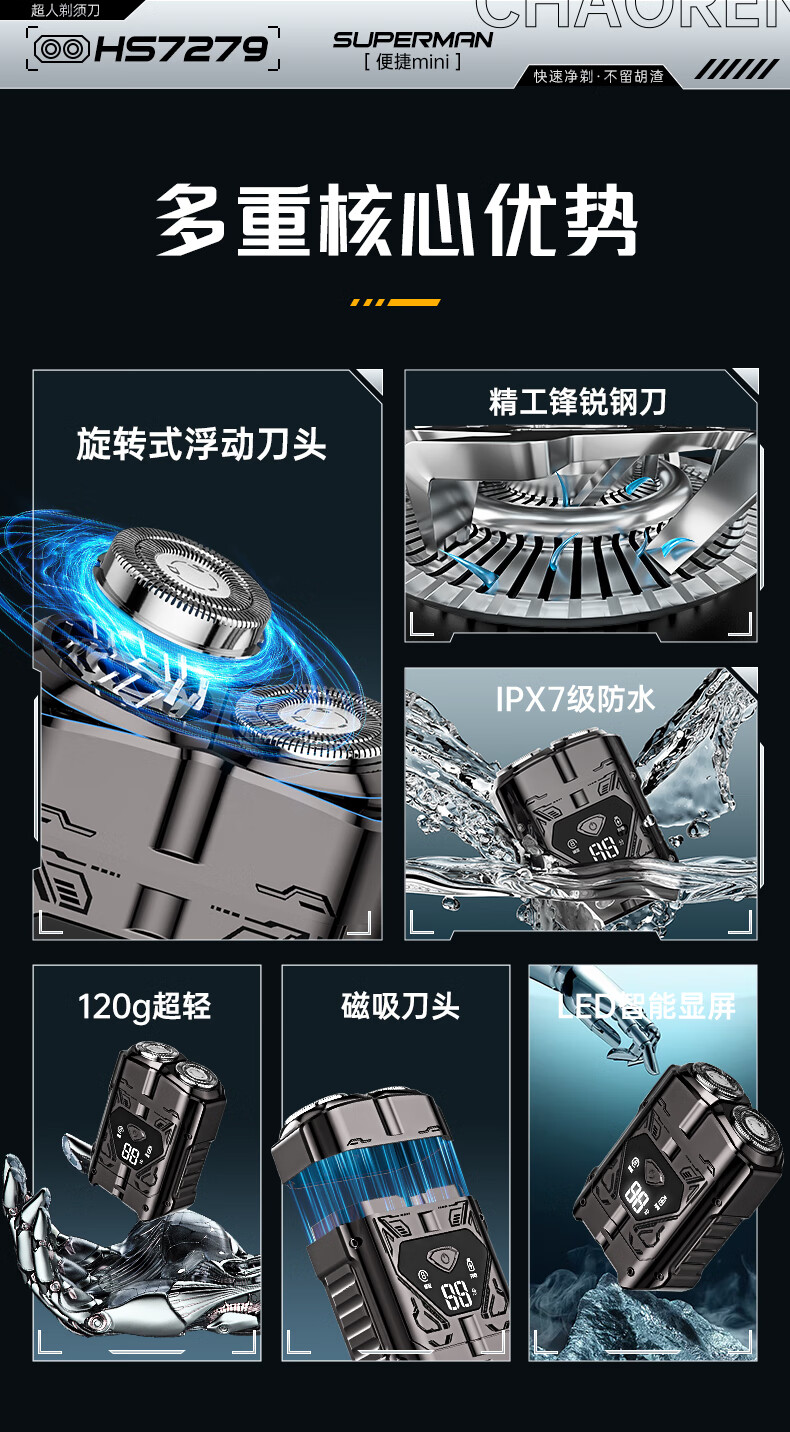 超人(SID)电动剃须刀 小型迷你便携式刮胡刀 旋转式剃须刀全身水洗 送男友送老公生日节日礼物 HS7279 重磅新品