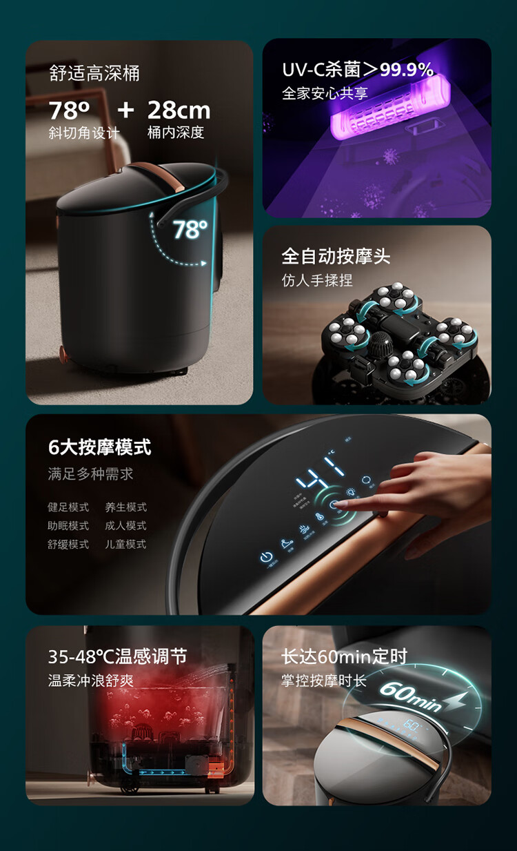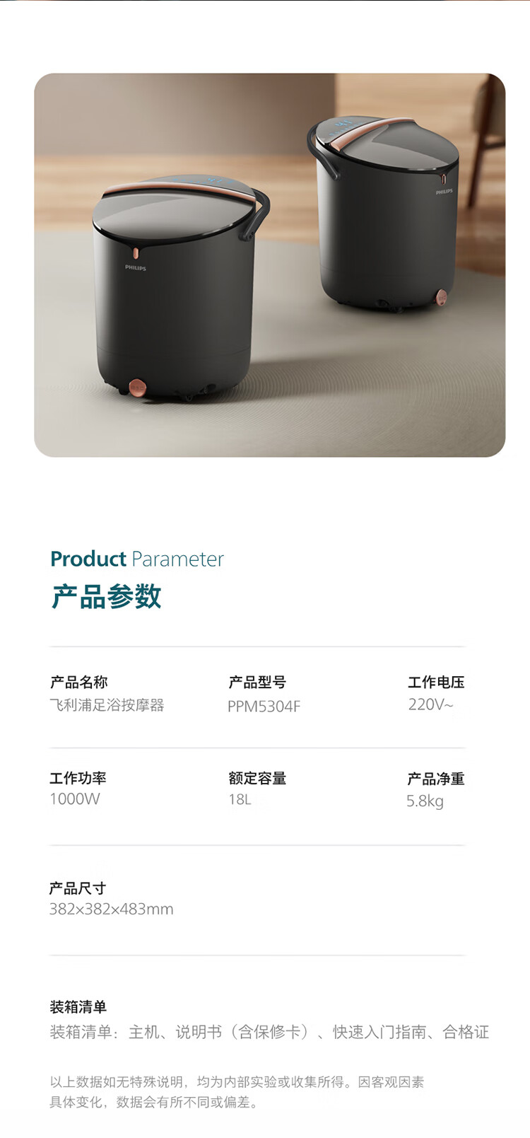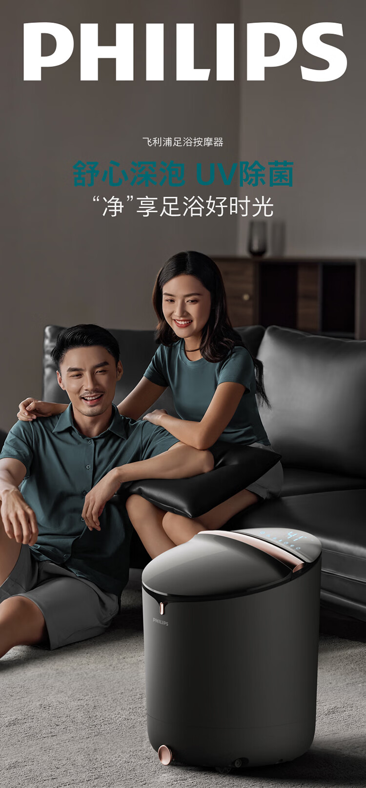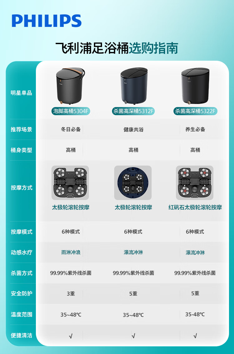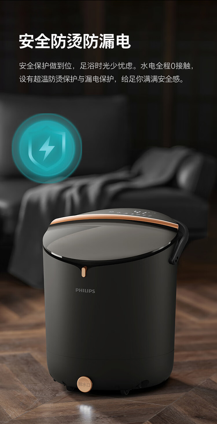飞利浦(PHILIPS)泡脚桶智能杀菌恒温加热洗脚盆全自动揉捏按摩桶泡脚盆送父母长辈生日圣诞实用高端礼物5304F