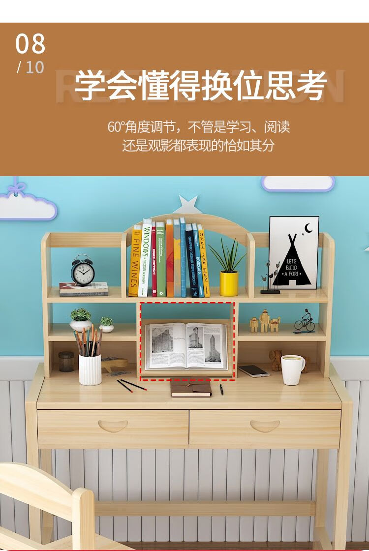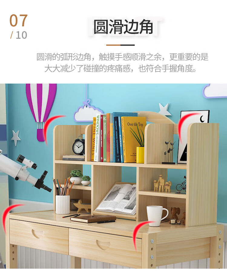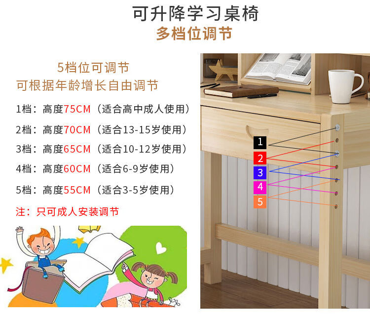 倘然之家新款简约现代松木可升降环保E0级学习桌小学生家用写字桌椅套装 05款原木无漆 80*50*75桌椅一套可升降