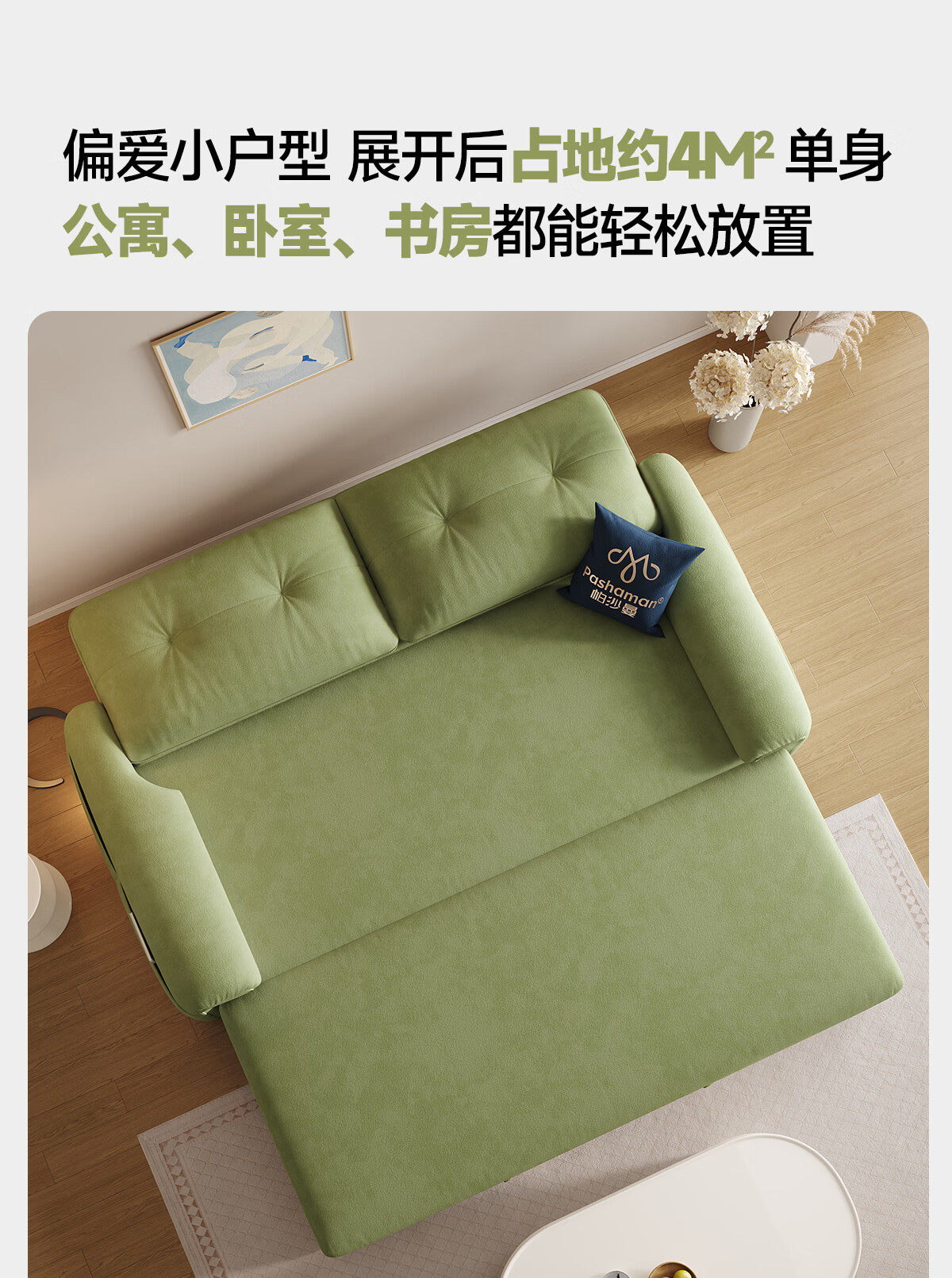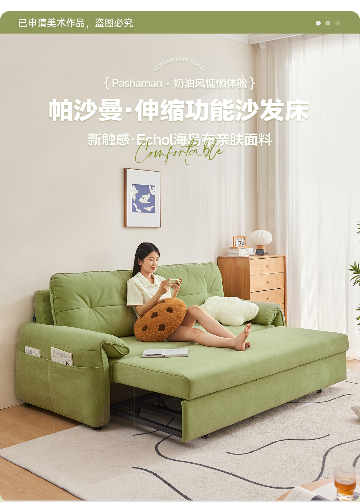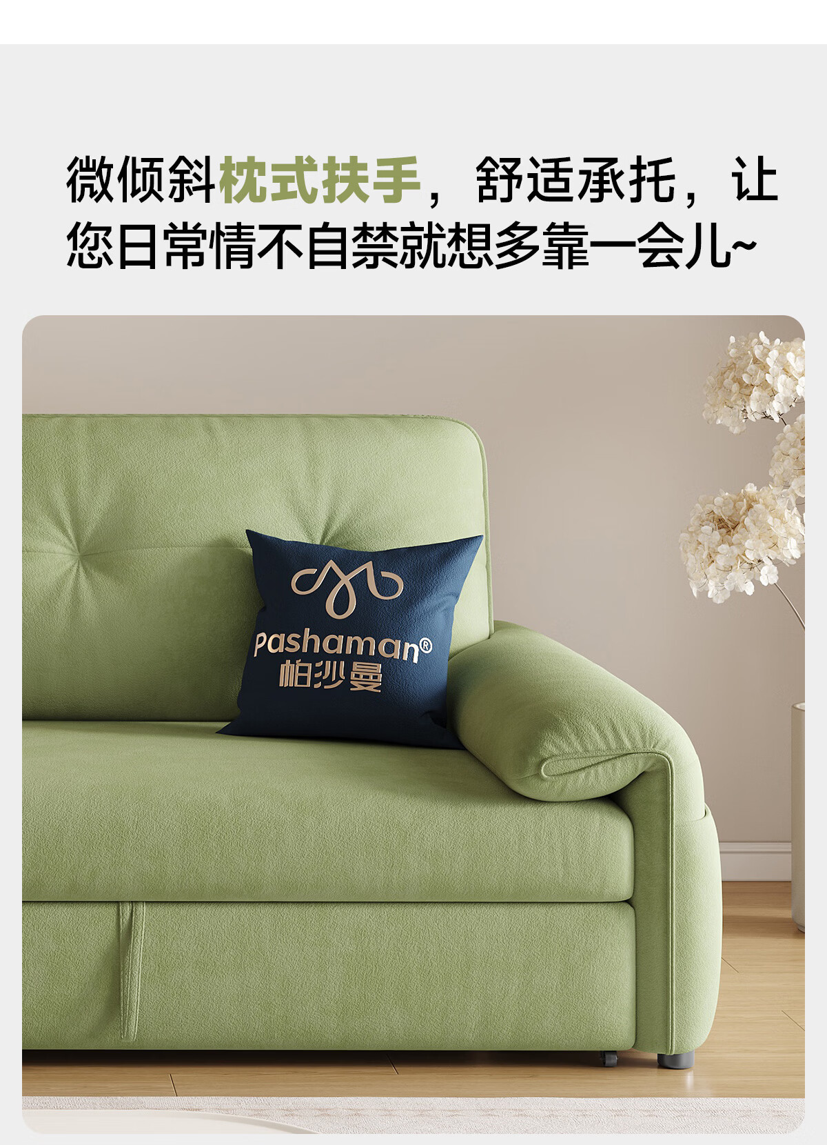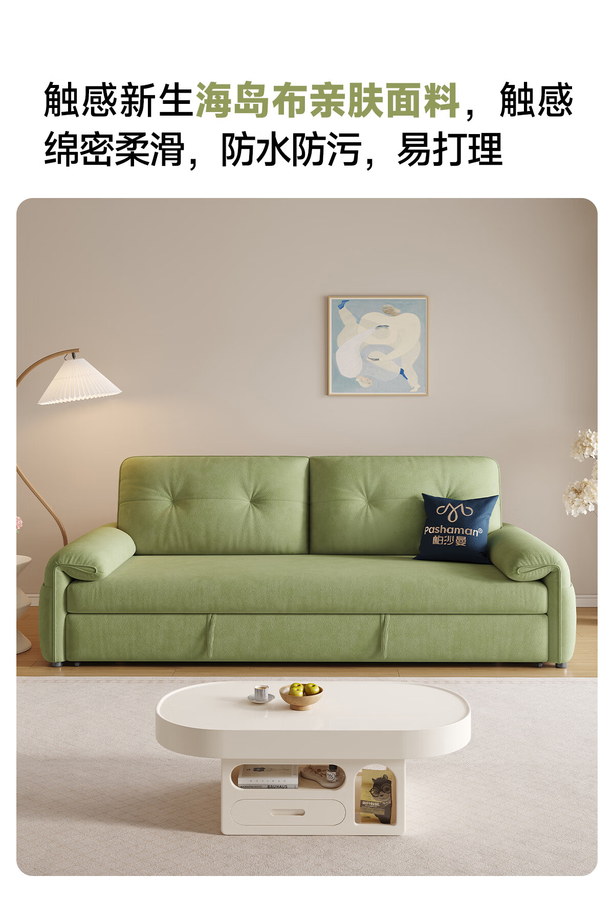 帕沙曼奶油风沙发床小户型客厅一体两用可折叠2025新款布艺沙发 2535ZF 1.75米大双人位(蓬松靠感 深度释压) 清爽透气海岛【高回弹海绵】