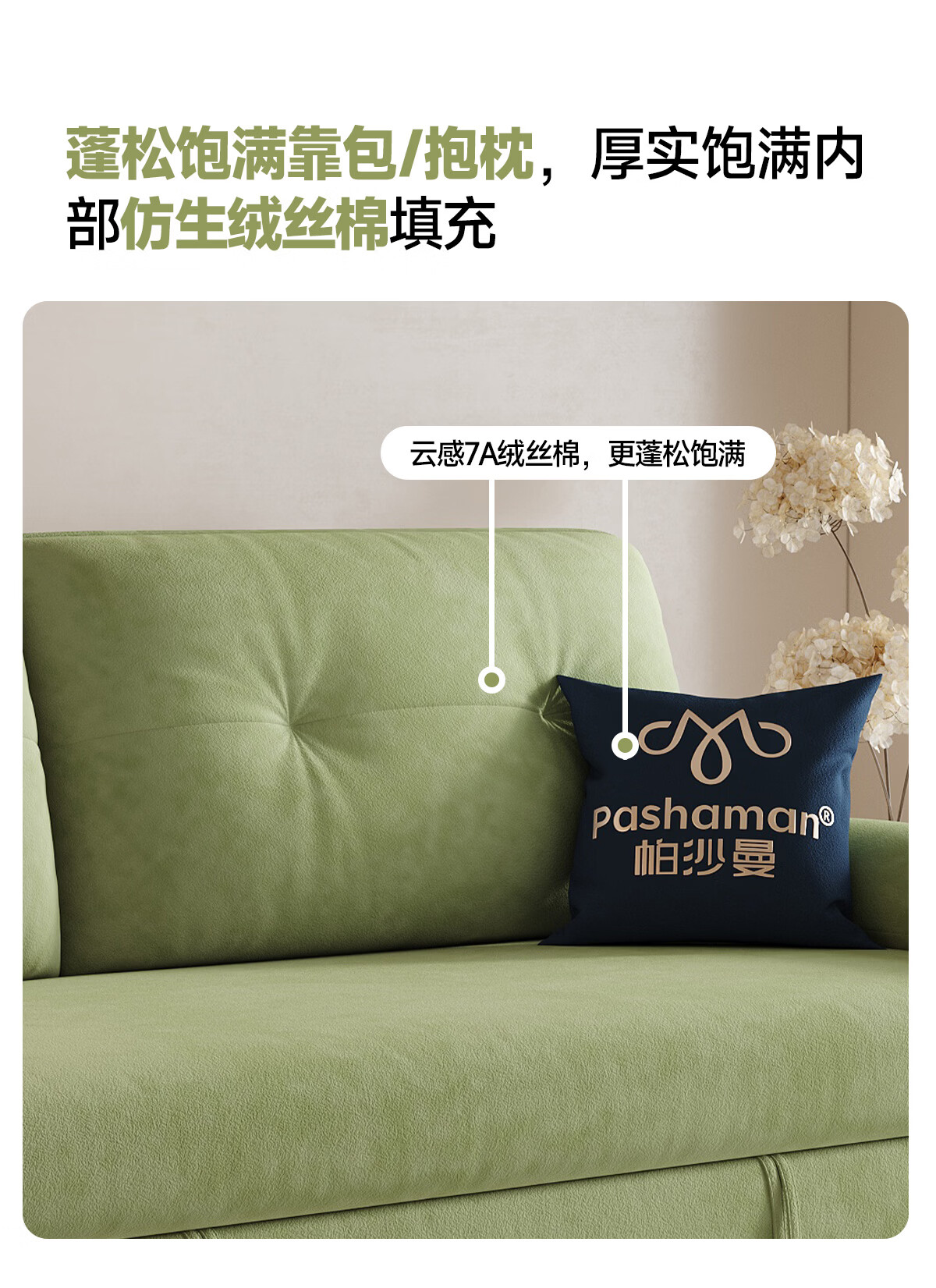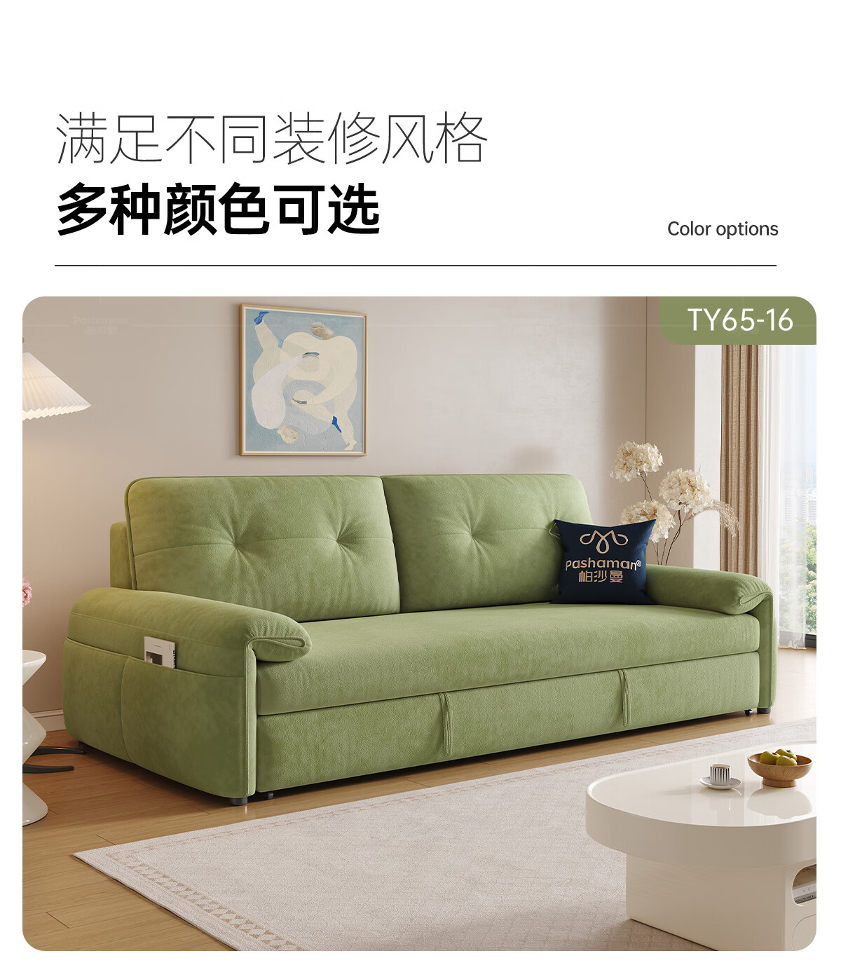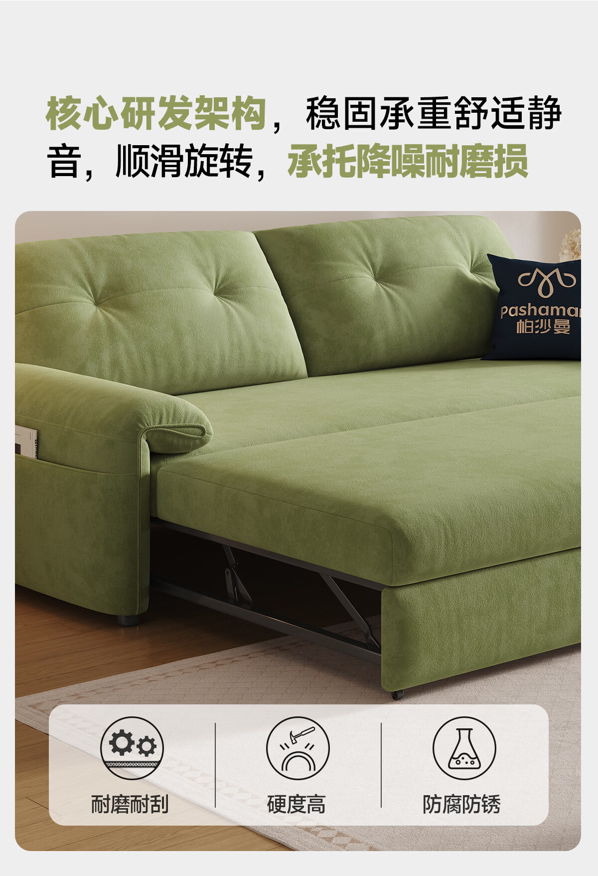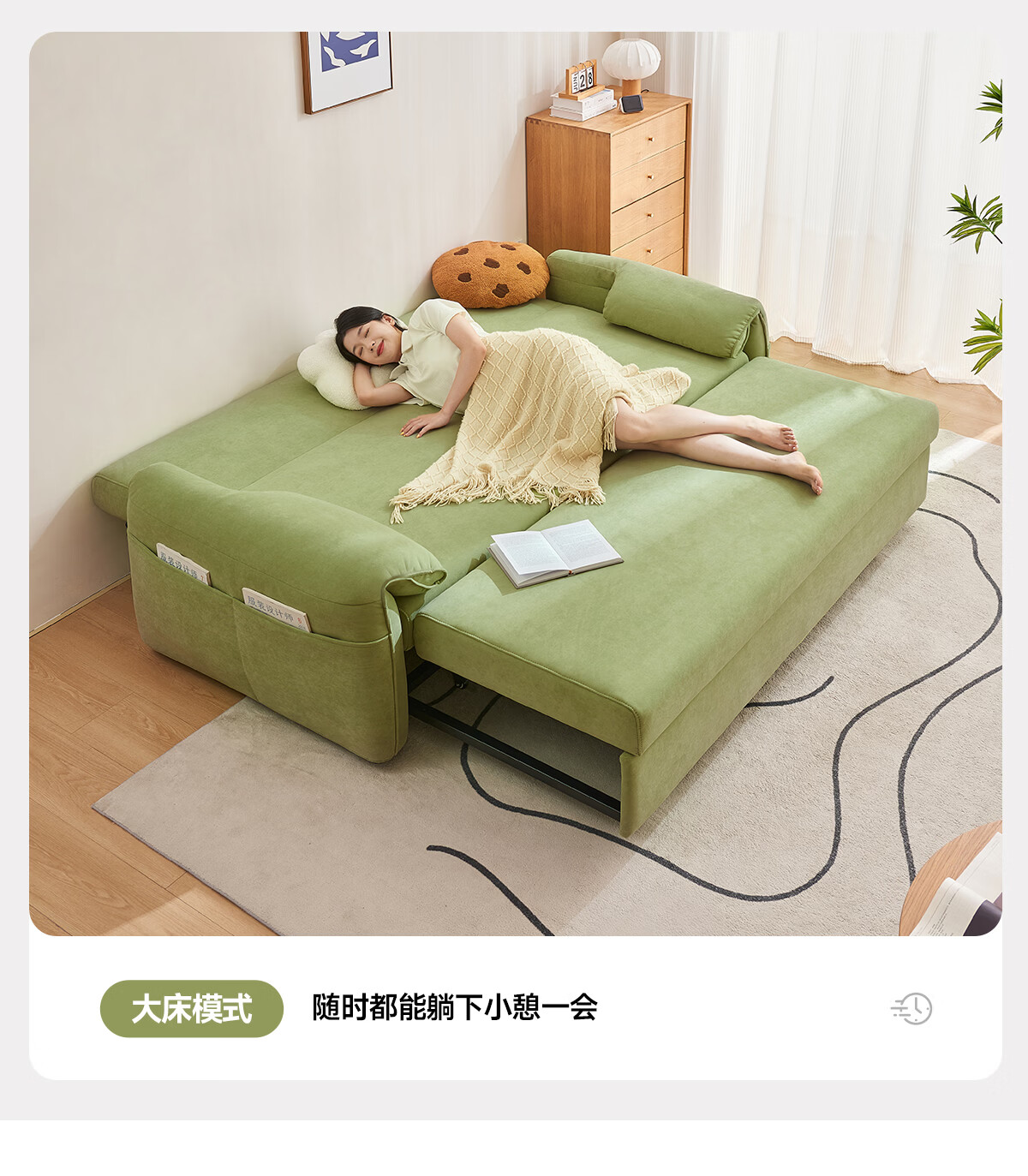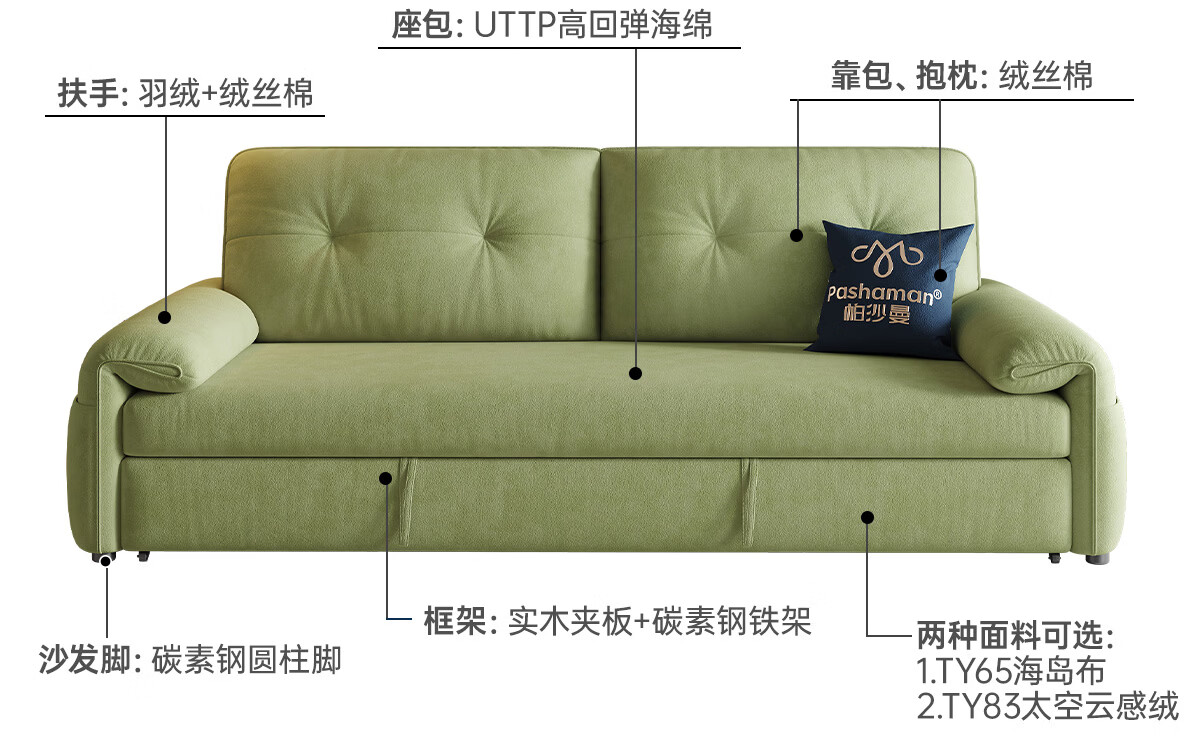 帕沙曼奶油风沙发床小户型客厅一体两用可折叠2025新款布艺沙发 2535ZF 1.75米大双人位(蓬松靠感 深度释压) 清爽透气海岛【高回弹海绵】