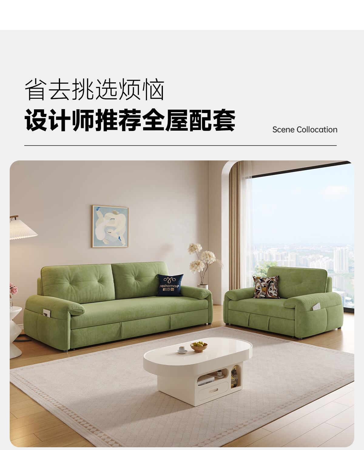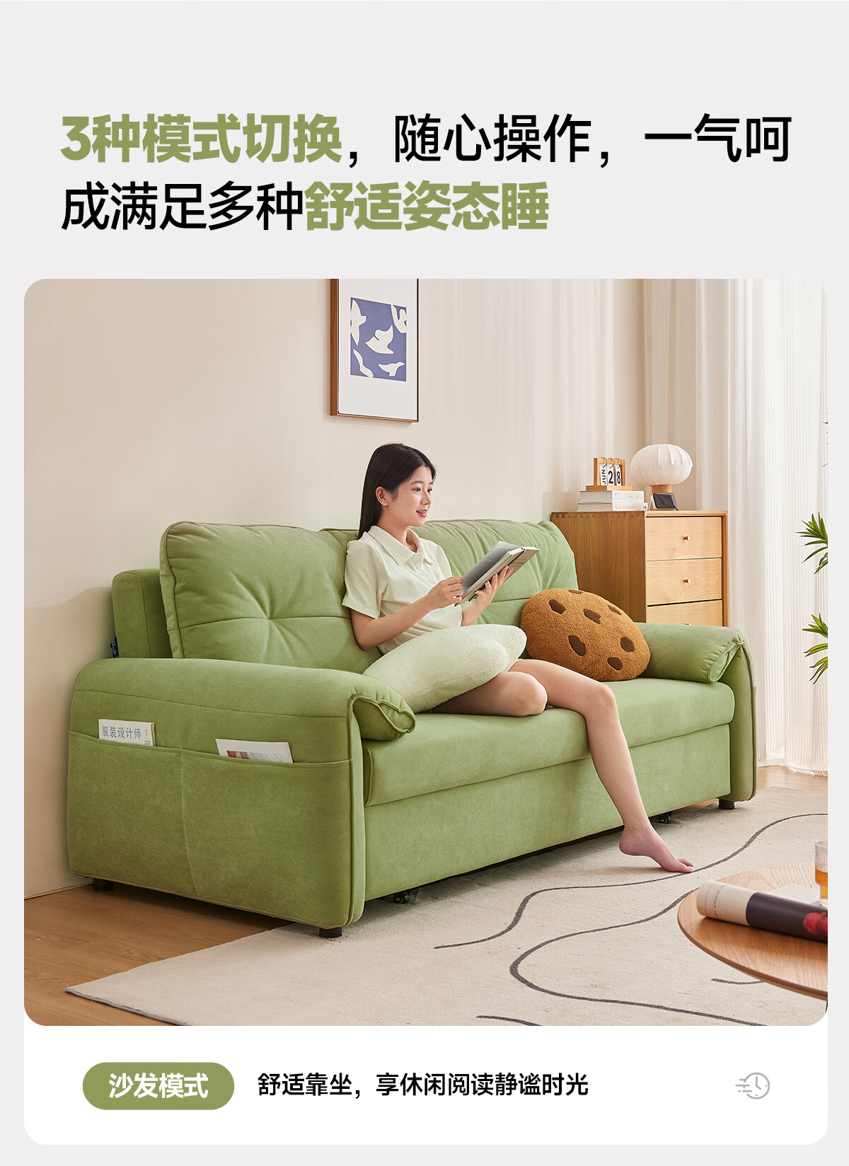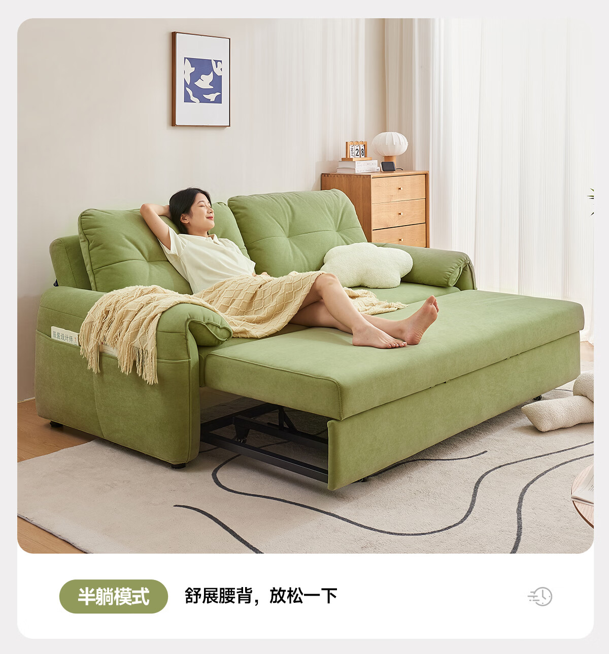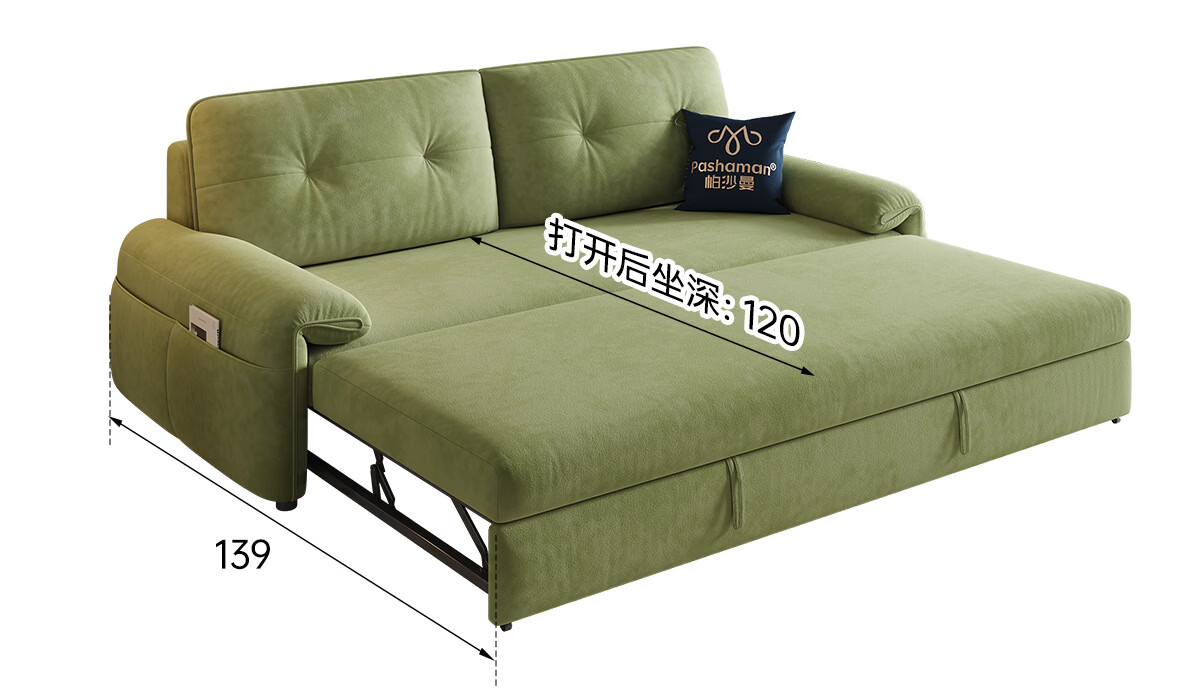 帕沙曼奶油风沙发床小户型客厅一体两用可折叠2025新款布艺沙发 2535ZF 1.75米大双人位(蓬松靠感 深度释压) 清爽透气海岛【高回弹海绵】