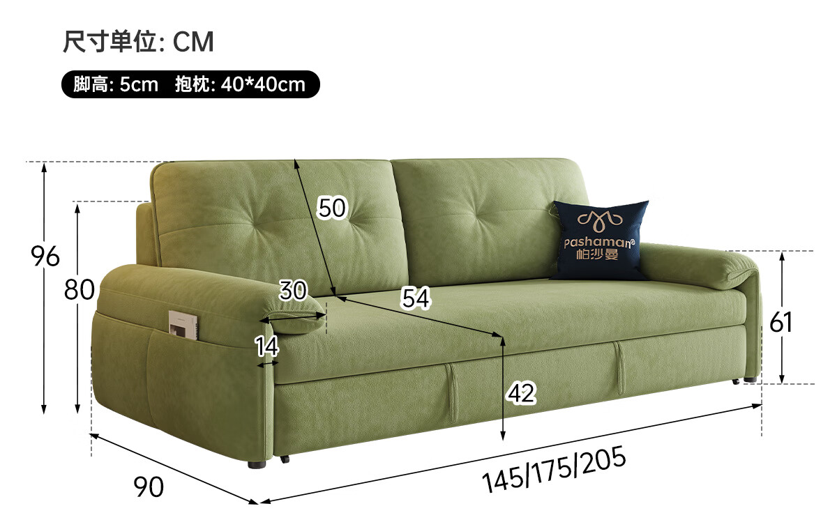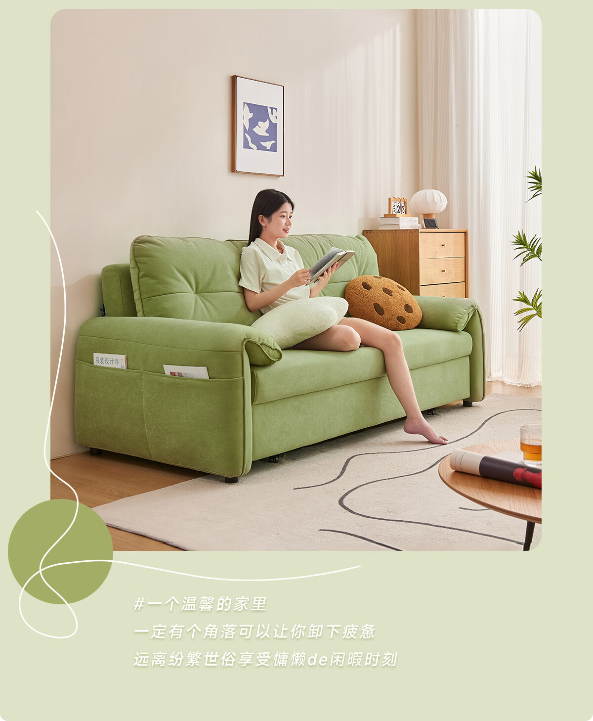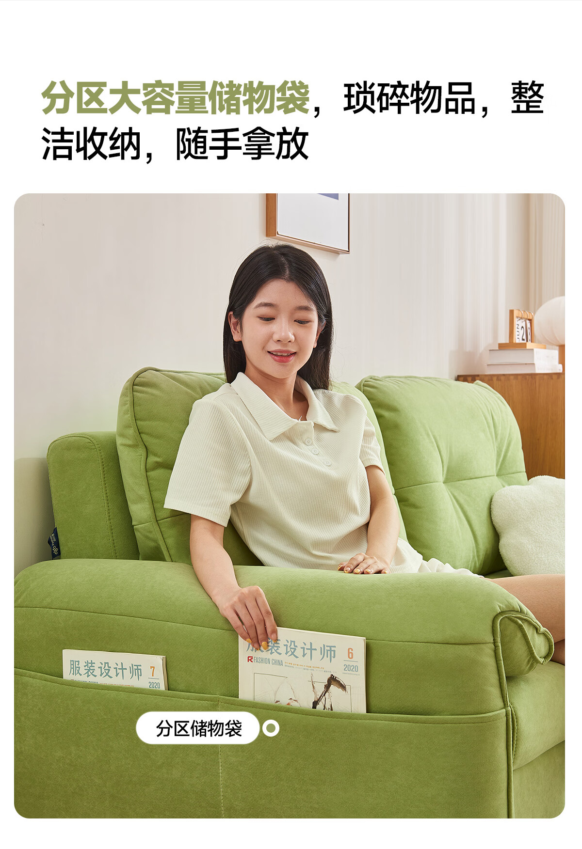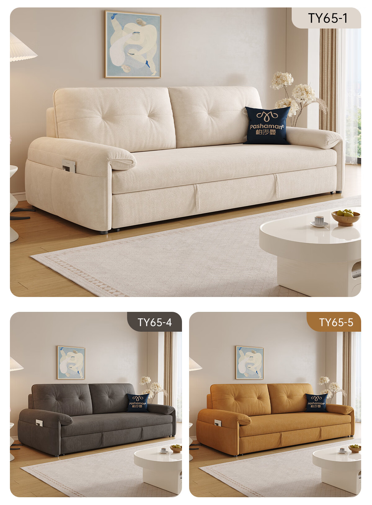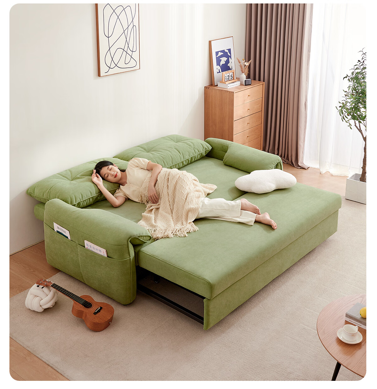 帕沙曼奶油风沙发床小户型客厅一体两用可折叠2025新款布艺沙发 2535ZF 1.75米大双人位(蓬松靠感 深度释压) 清爽透气海岛【高回弹海绵】