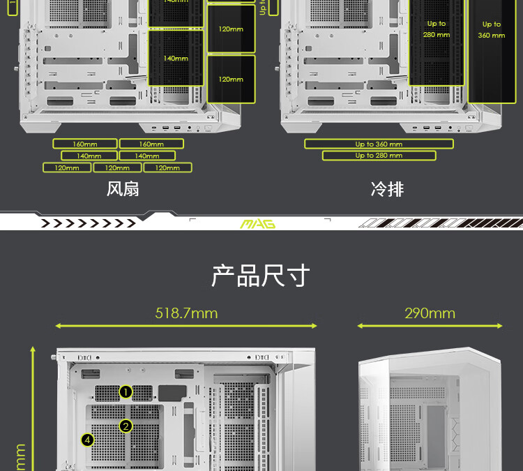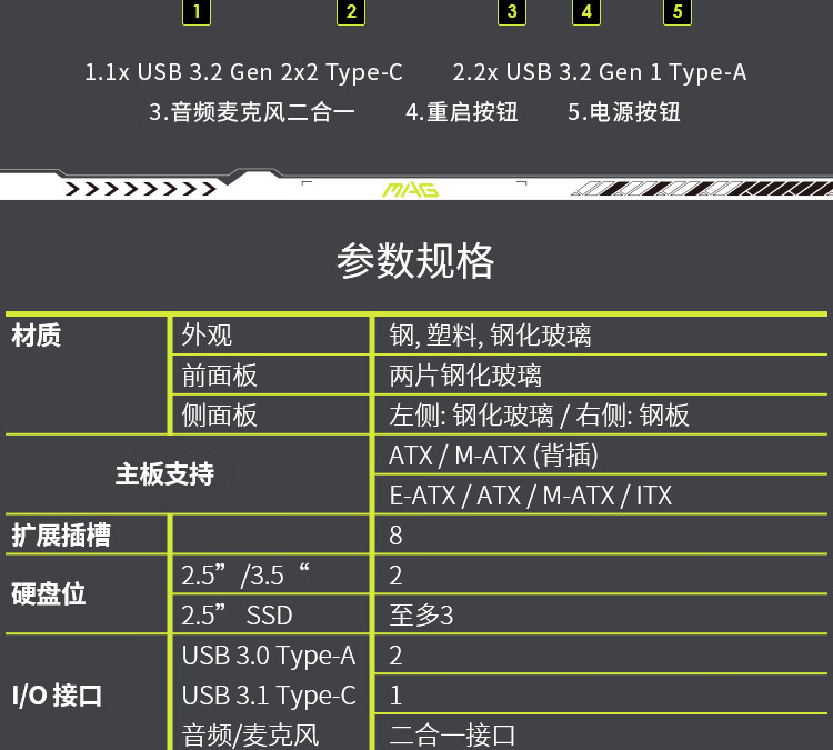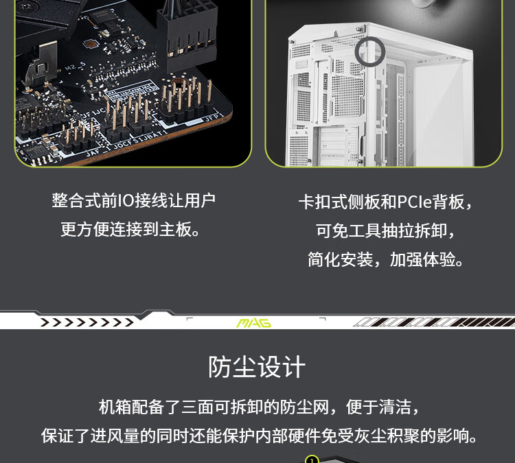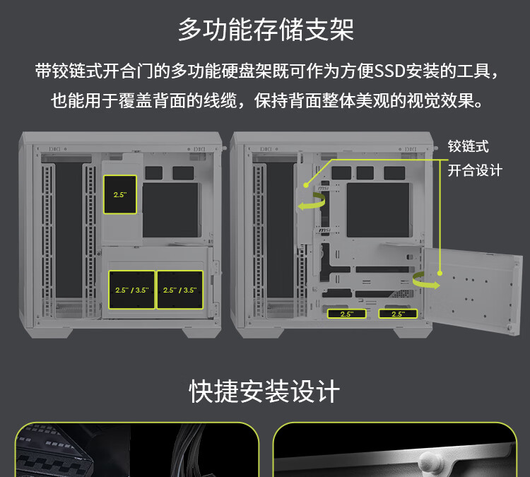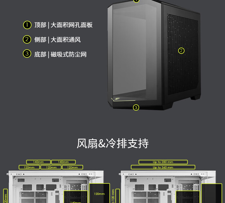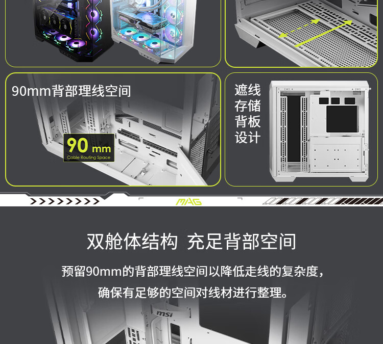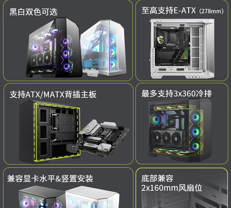微星(MSI)白刃PLUS机箱 支持E-ATX主板(360冷排位/ATX背插/海景房/16cm风扇位/前置Type-C/支持5090)