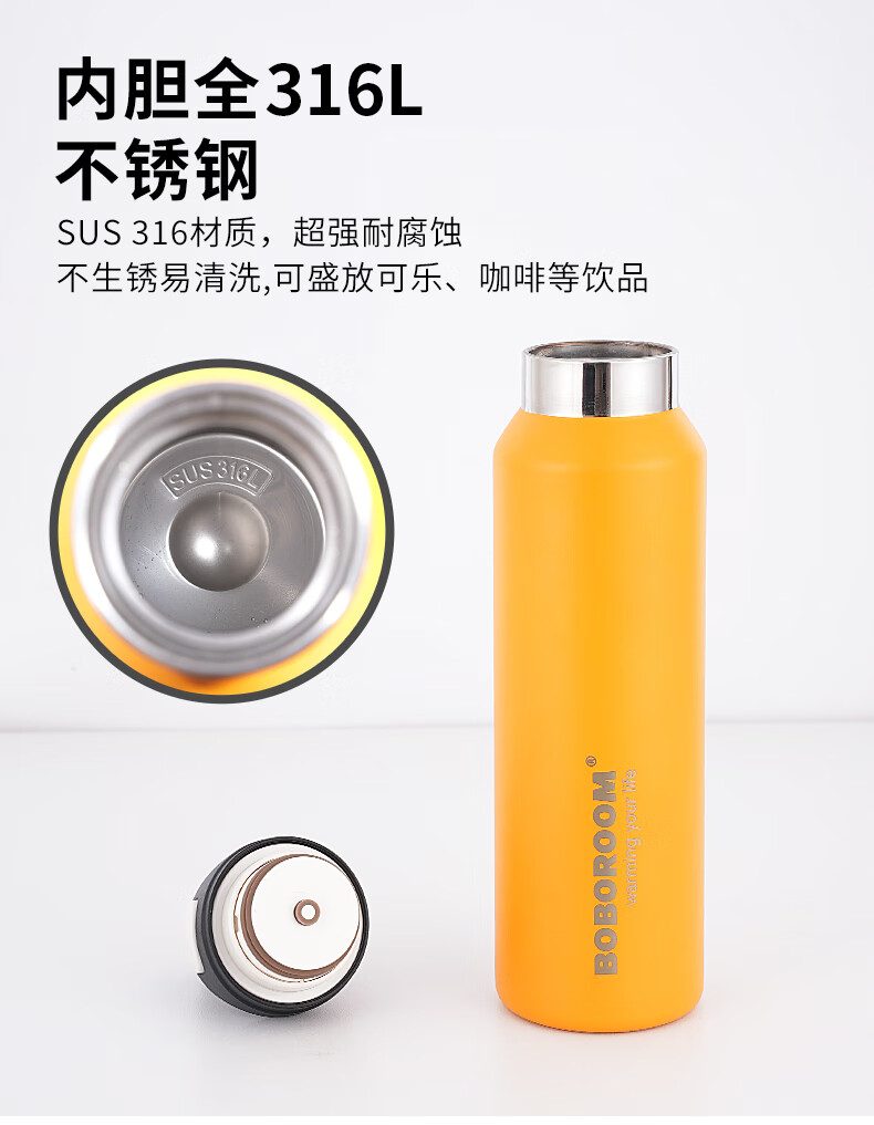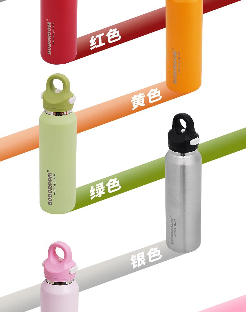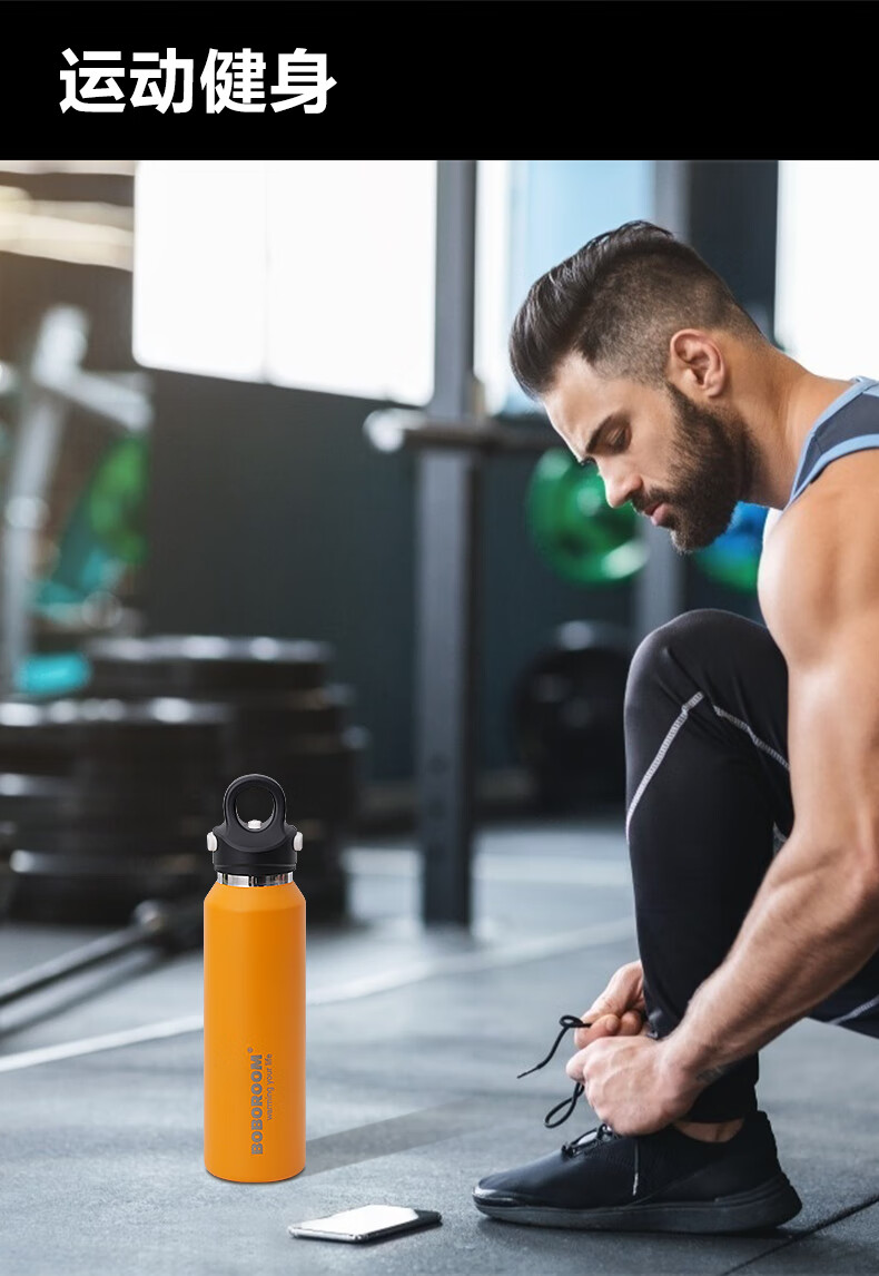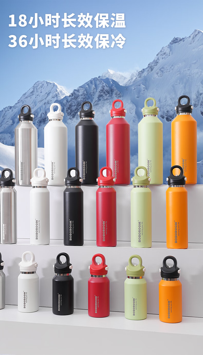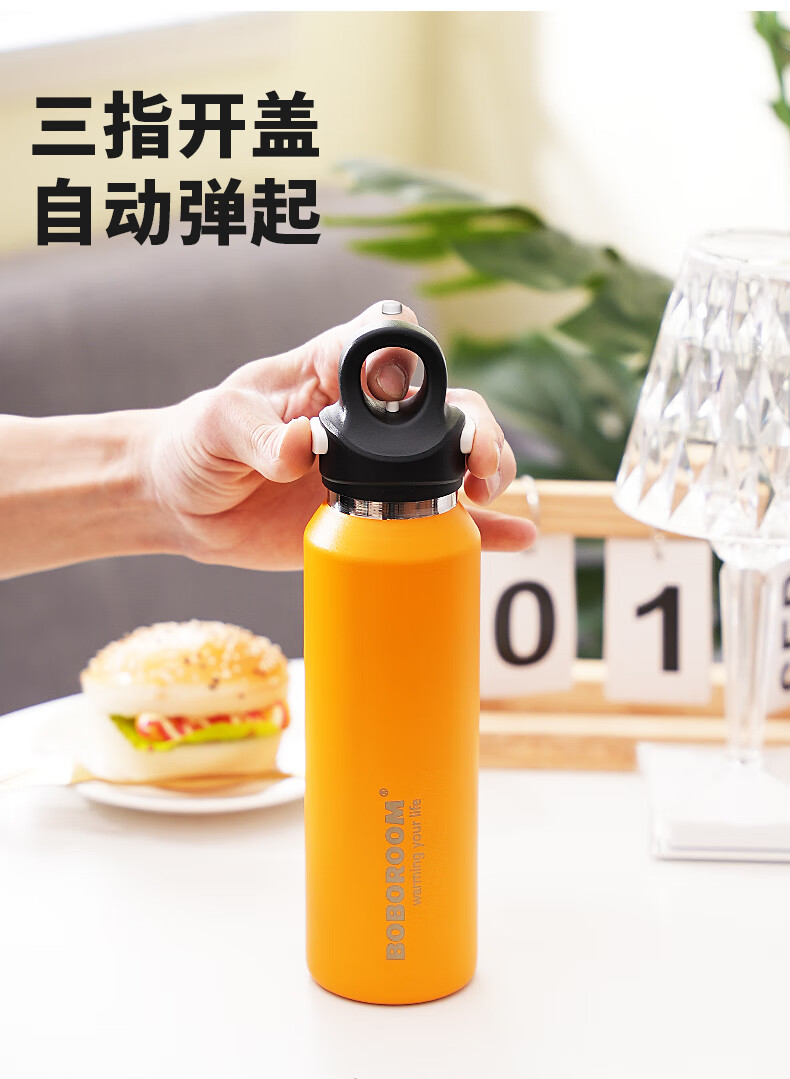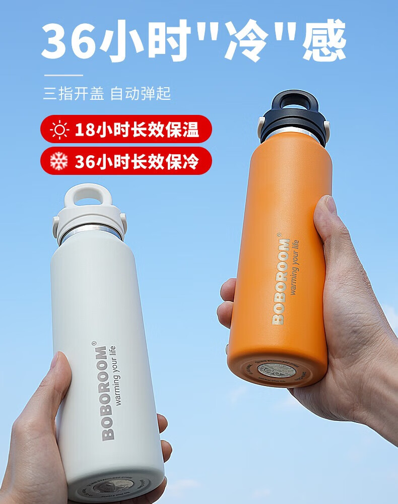 BOBOROOM无螺纹316L不锈钢内胆保温杯男款户外一键开盖运动水杯大容量茶杯 浅从绿1000ml【316L内胆-单手速开-36H长效保温】