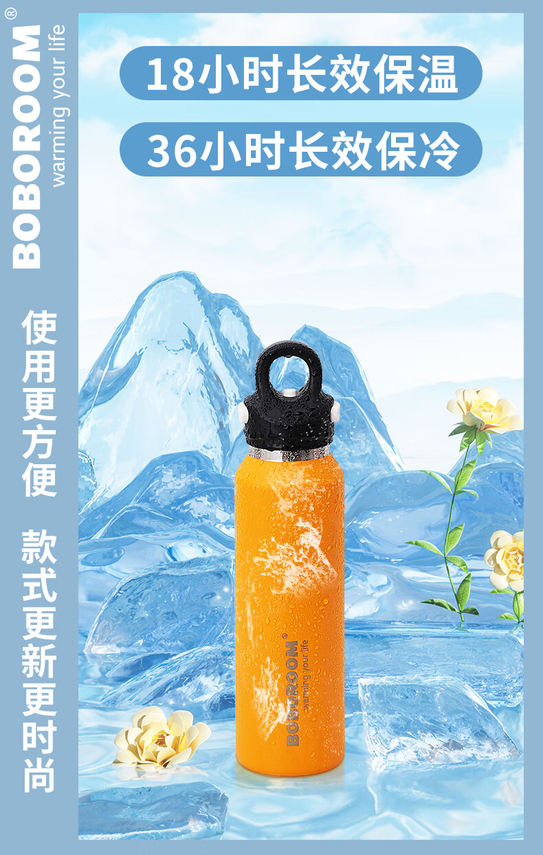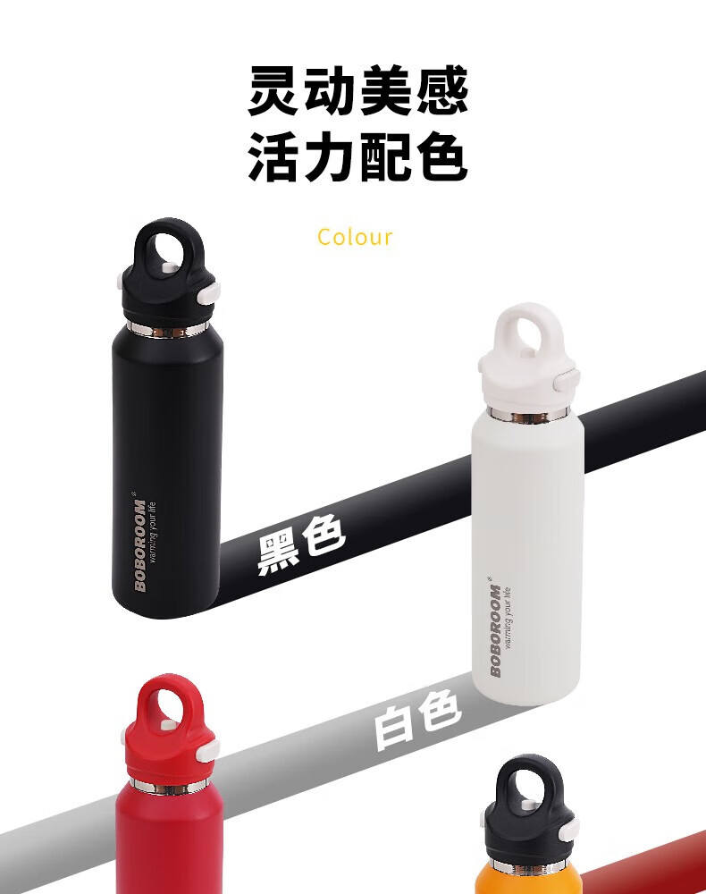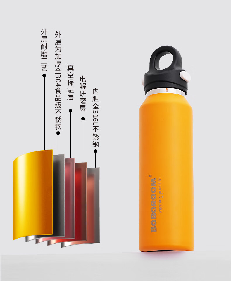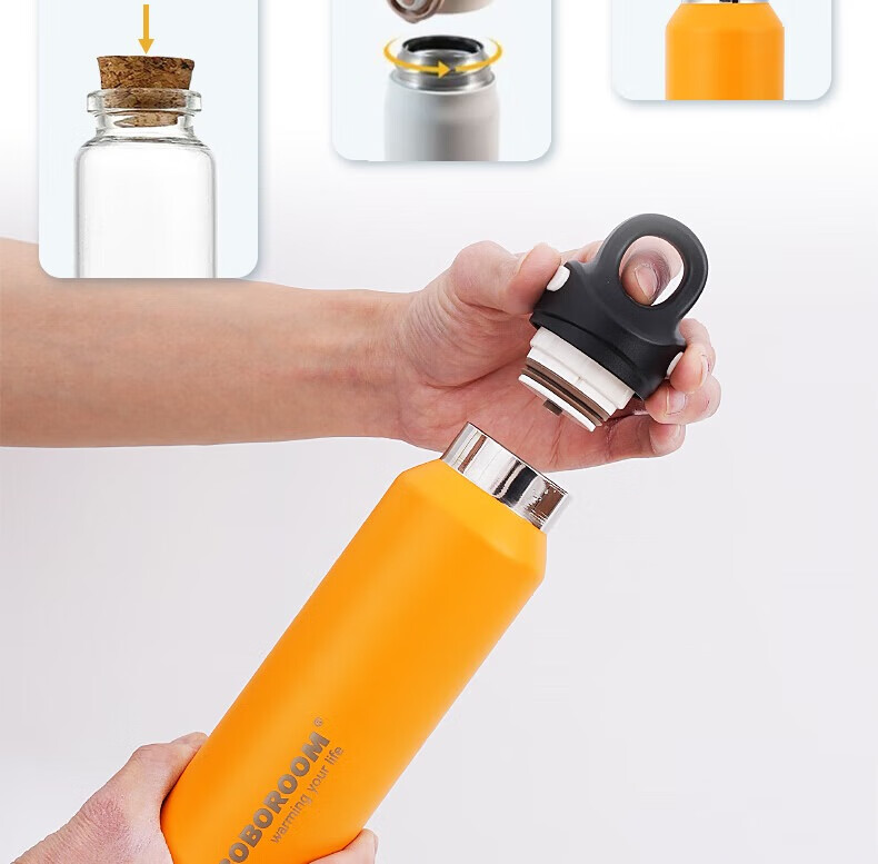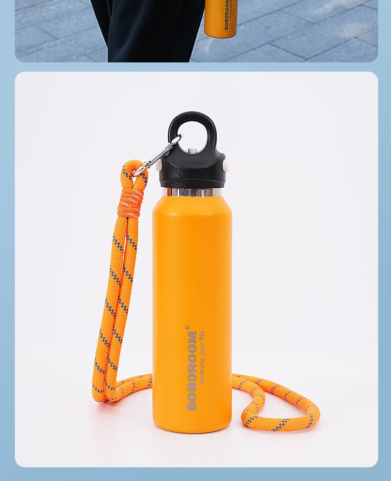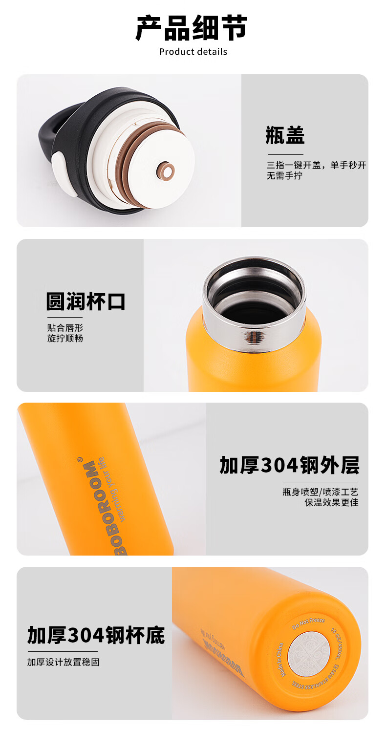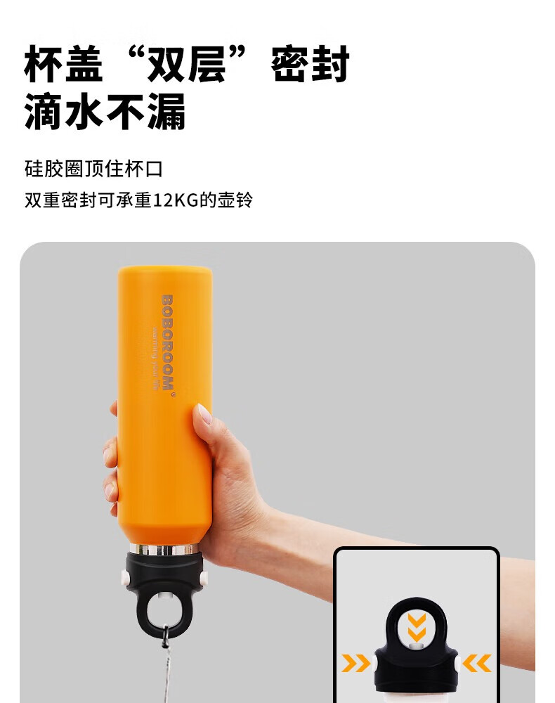 BOBOROOM无螺纹316L不锈钢内胆保温杯男款户外一键开盖运动水杯大容量茶杯 浅从绿1000ml【316L内胆-单手速开-36H长效保温】
