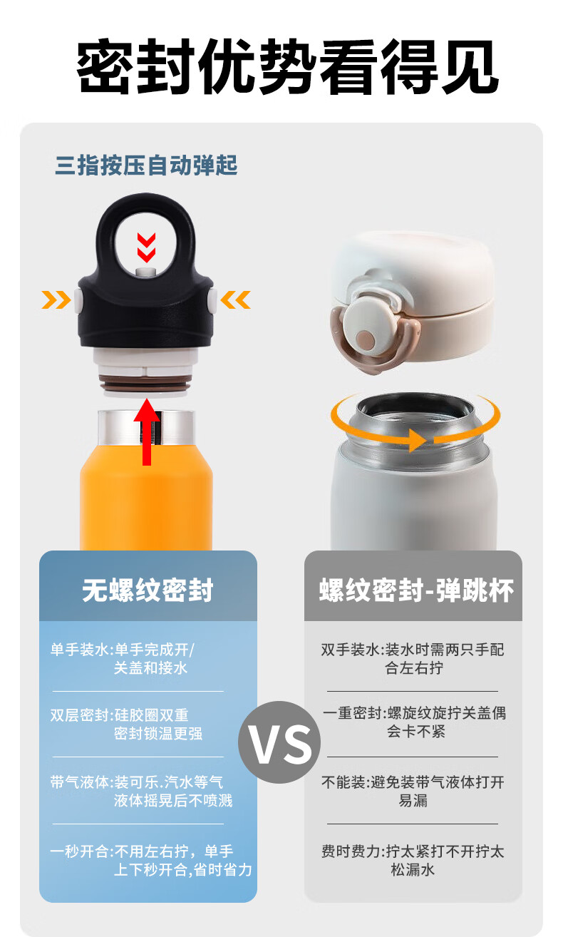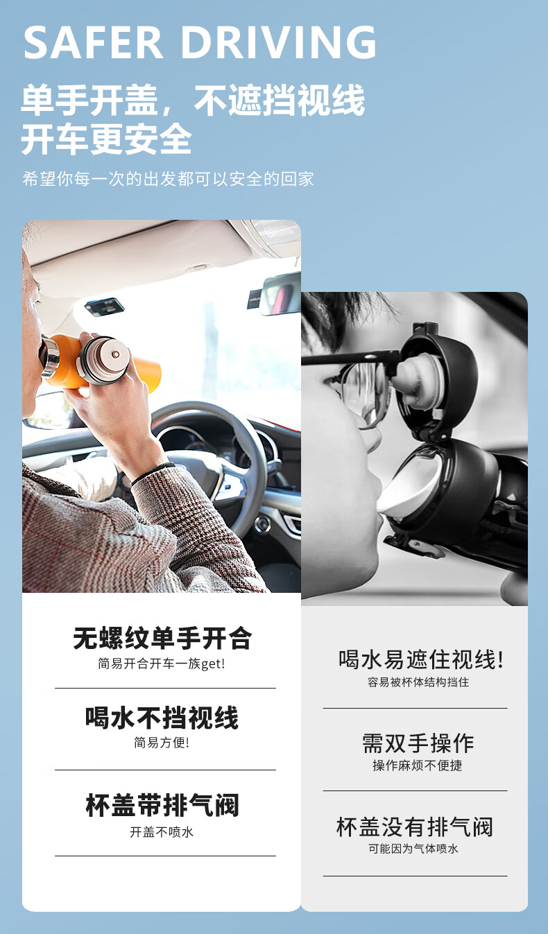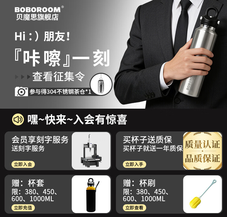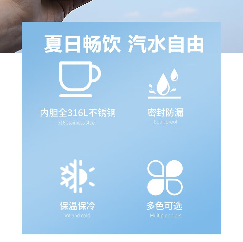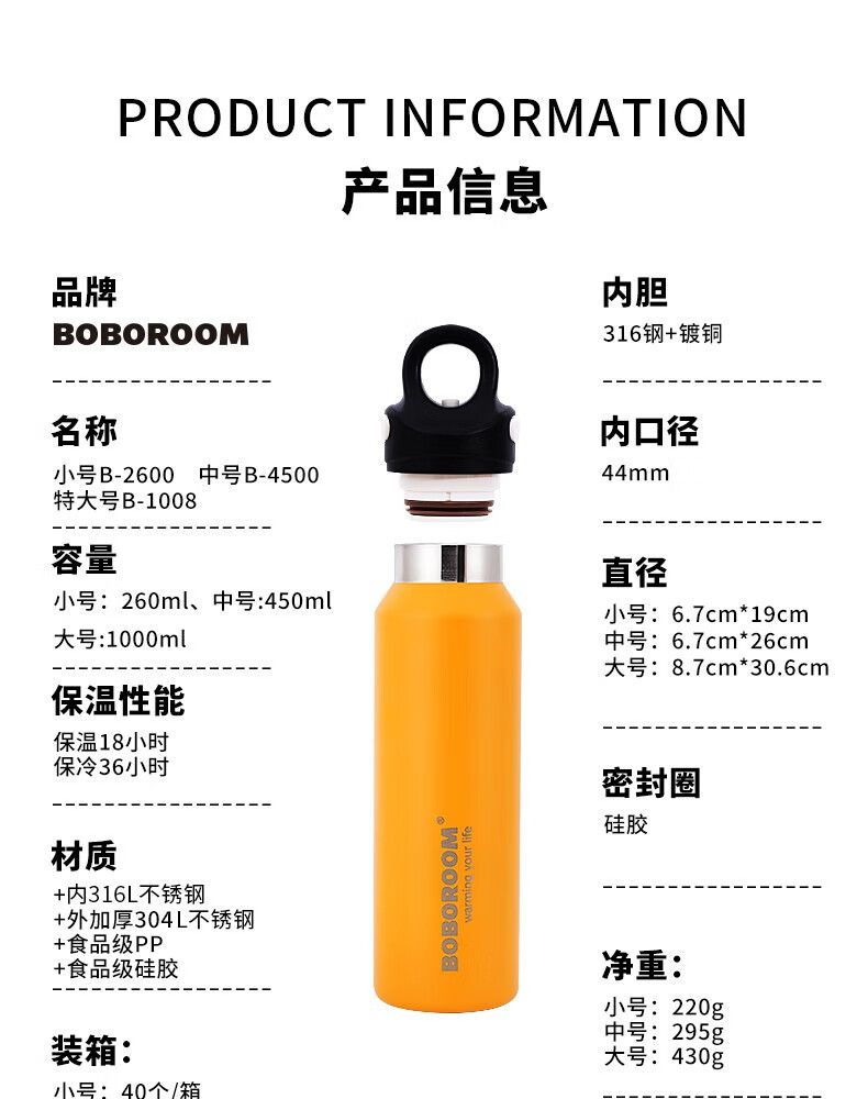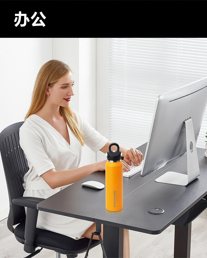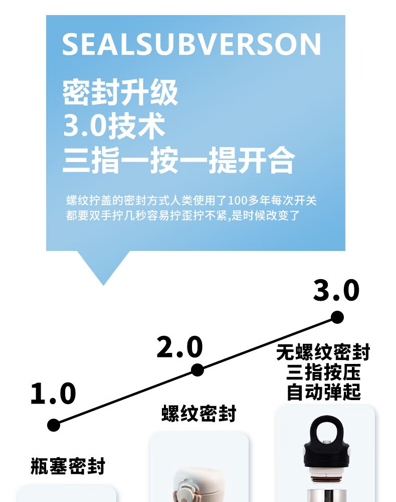 BOBOROOM无螺纹316L不锈钢内胆保温杯男款户外一键开盖运动水杯大容量茶杯 浅从绿1000ml【316L内胆-单手速开-36H长效保温】