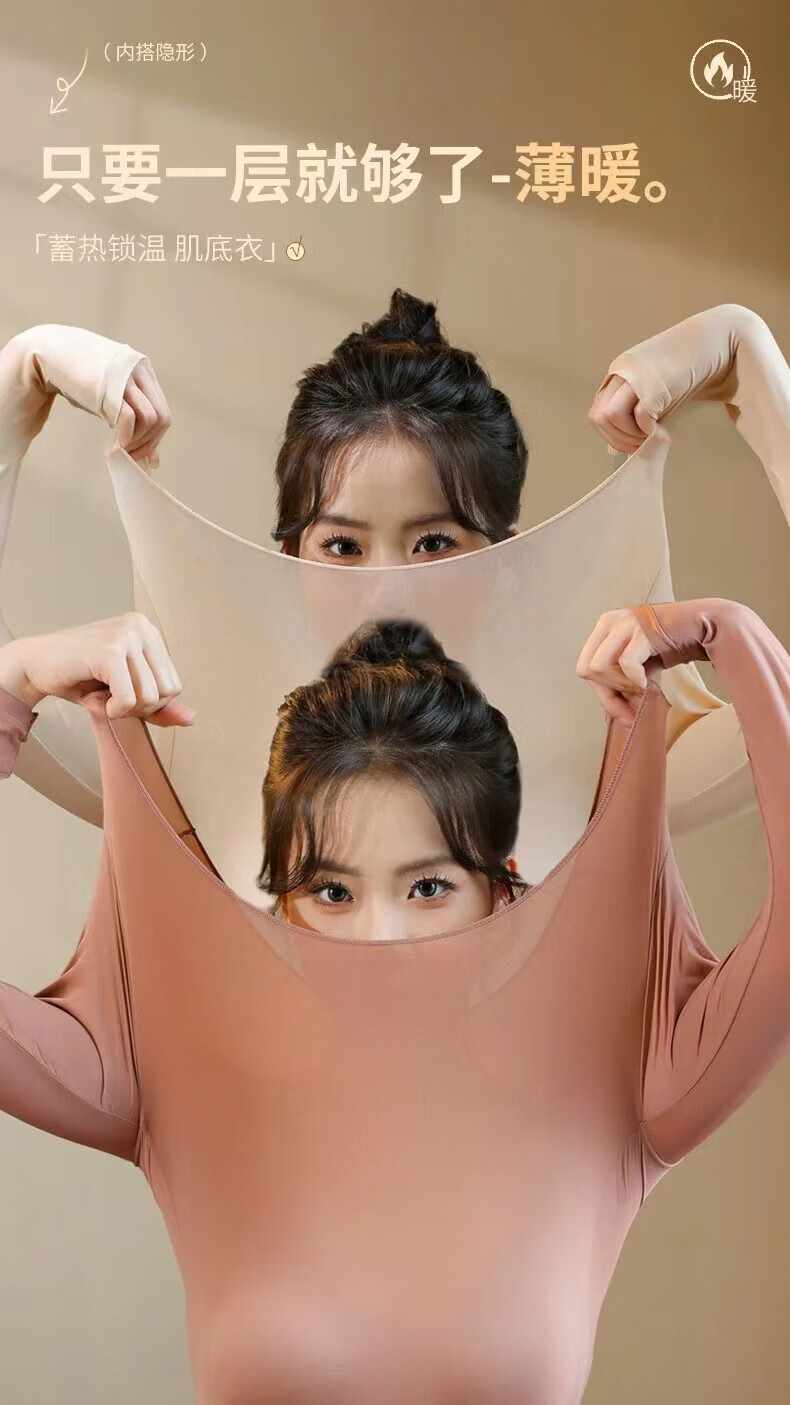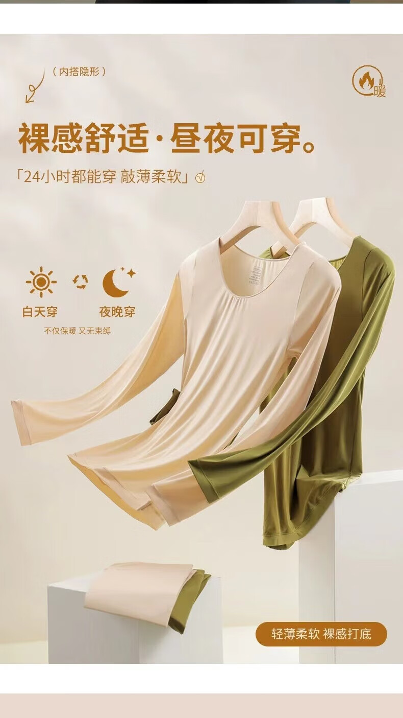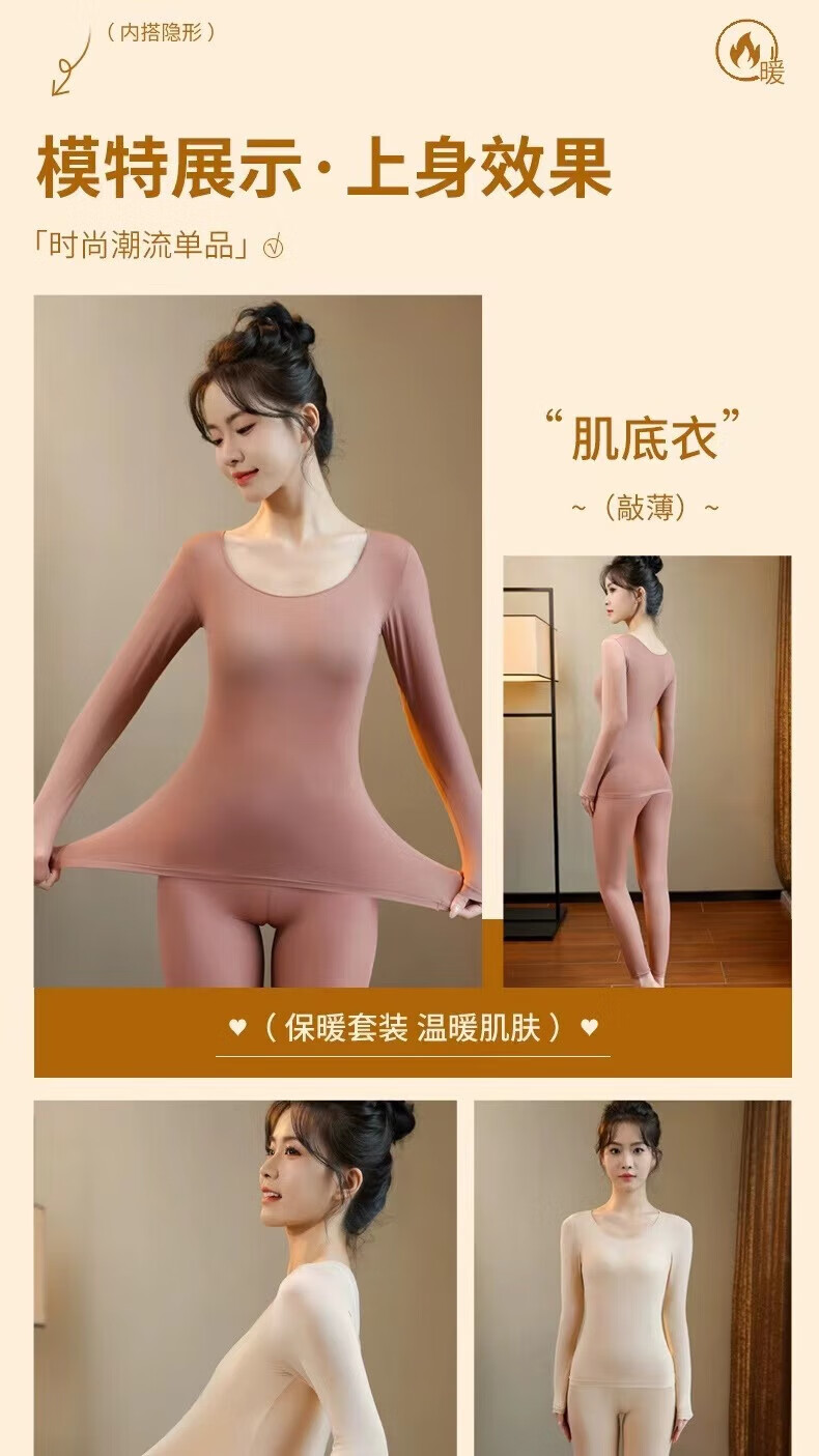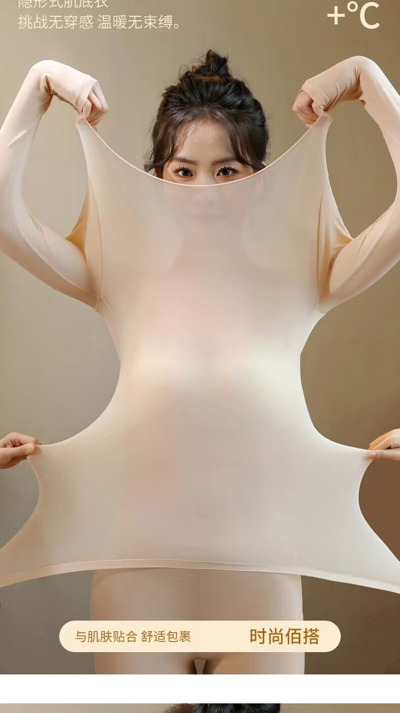 樱央美肤衣无痕保暖内衣女隐形肌底衣秋冬紧身打底衫秋衣秋裤套装 经典黑【上衣+下裤套装】 L 【75-120斤】