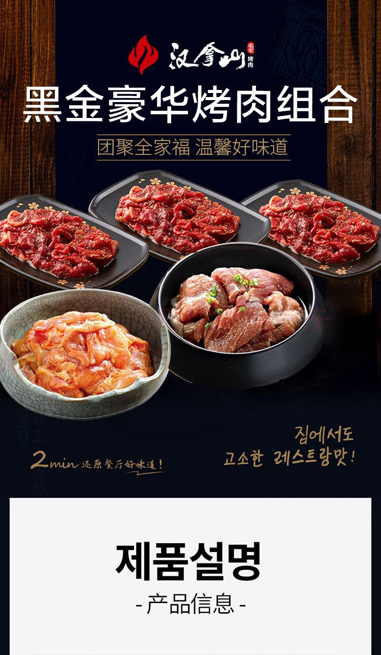 汉拿山烤肉套餐5~6人 生鲜牛肉食材烧烤半成品套餐韩式户外家庭家用 1900g(含赠品到手9包肉1个料)