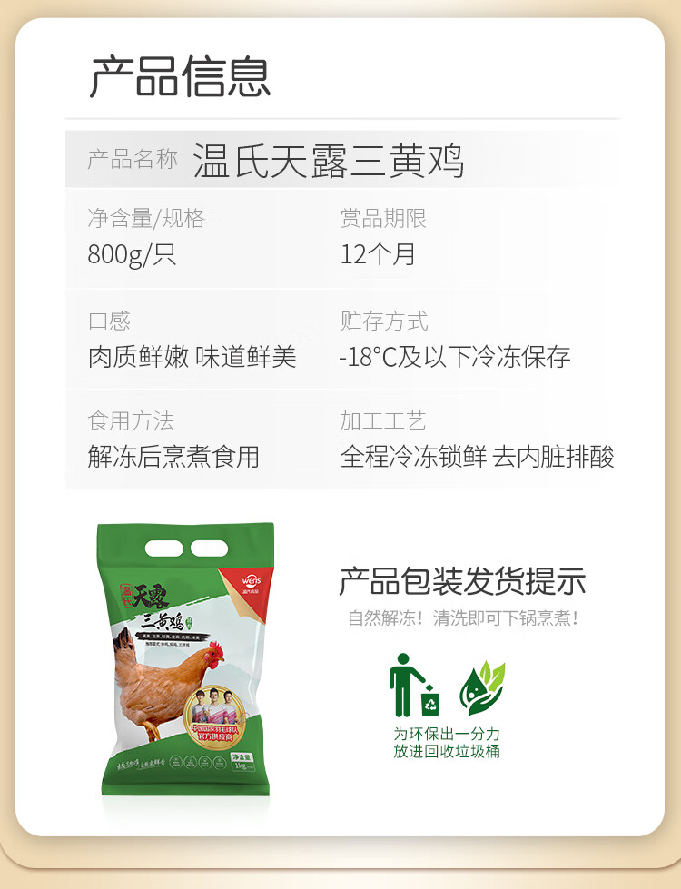 温氏供港三黄鸡1kg*2只 农家散养土鸡 冷冻生鲜鸡肉红烧白切煲汤食材 三黄鸡800g*2只