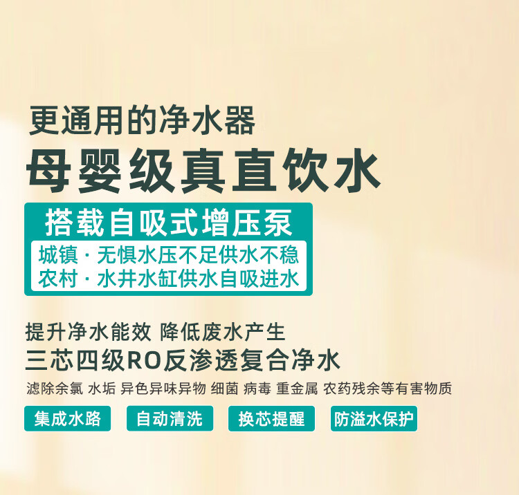 乐喝农村净水器家用RO反渗透净水器厨下式厨房自来水过滤器直饮净水机井水水缸自来水内置自吸泵净水器 自装=【每日1台特价】无赠品