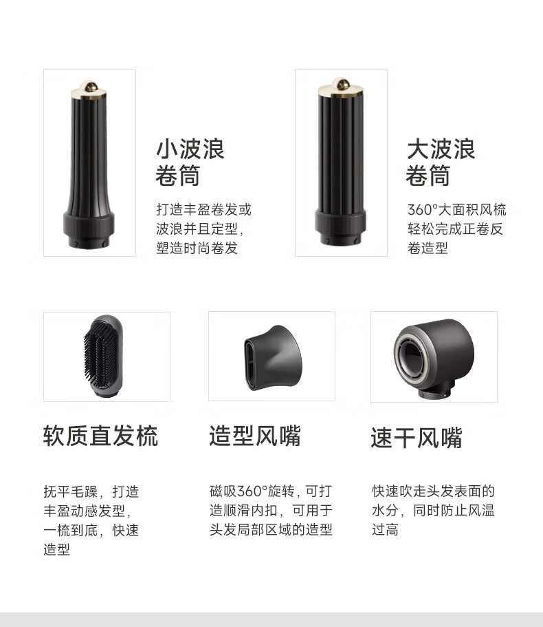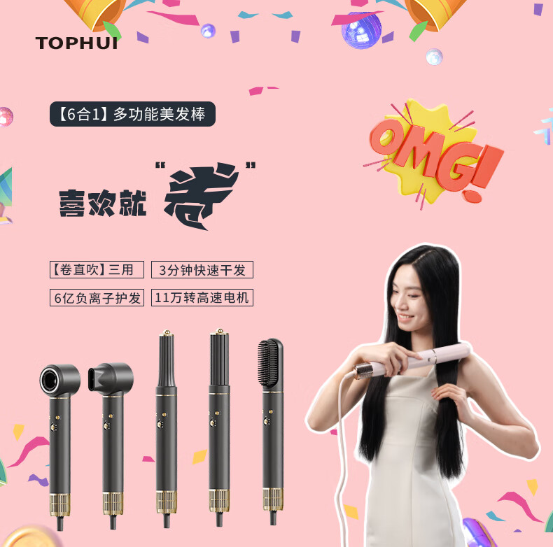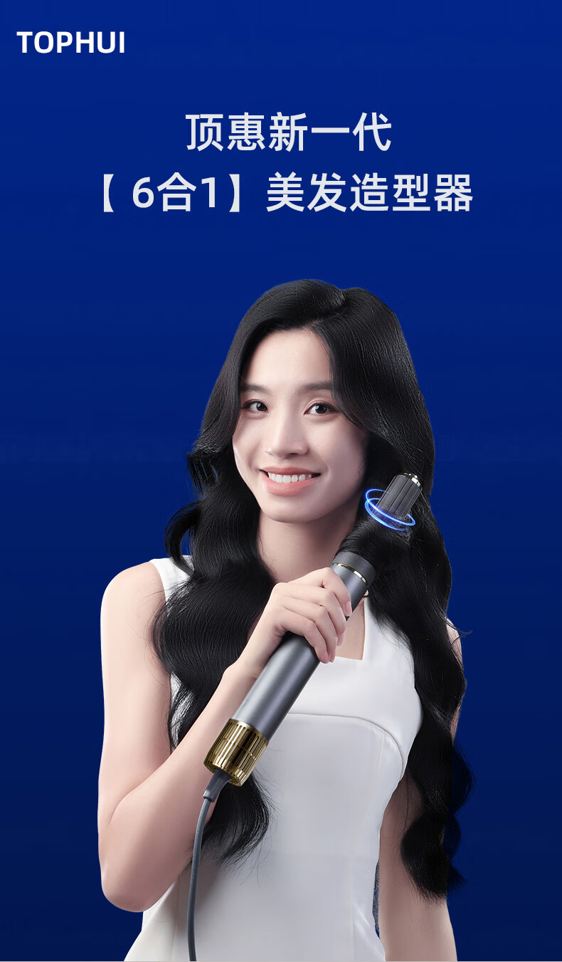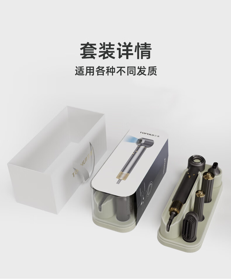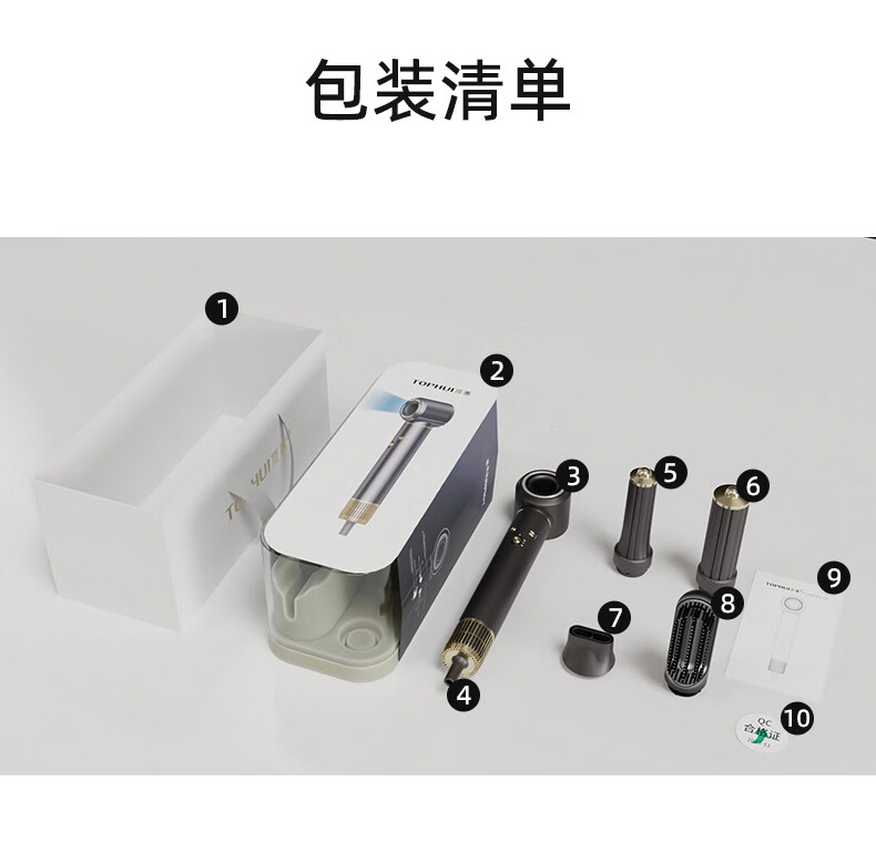 TOPHUI顶惠多功能高速吹风机美发6合1全自动卷发棒6.8亿负离子电卷棒直发梳卷直两用造型礼盒持久定型不伤发 【星空灰】6合1全自动美发造型器