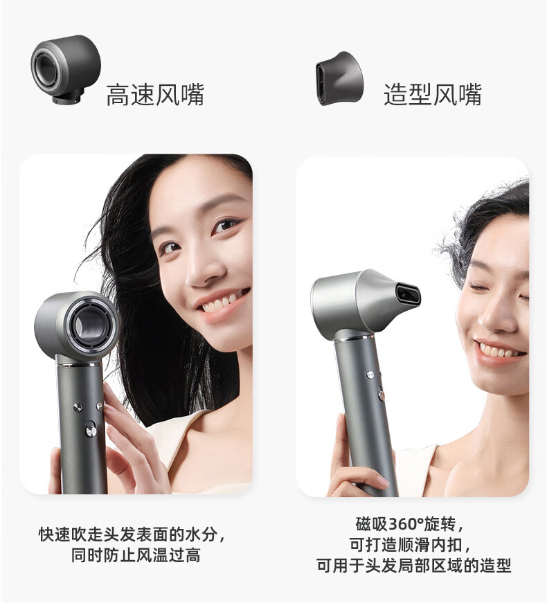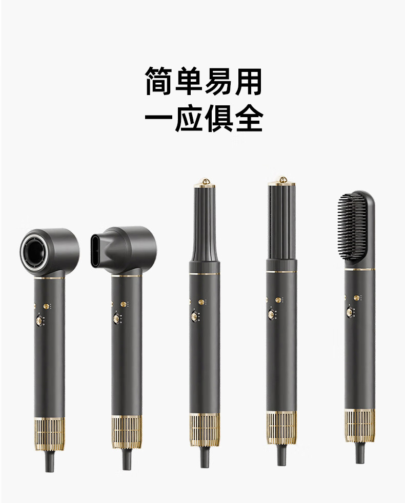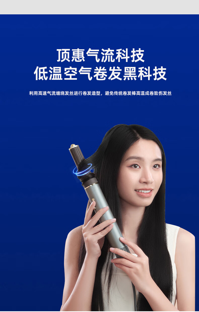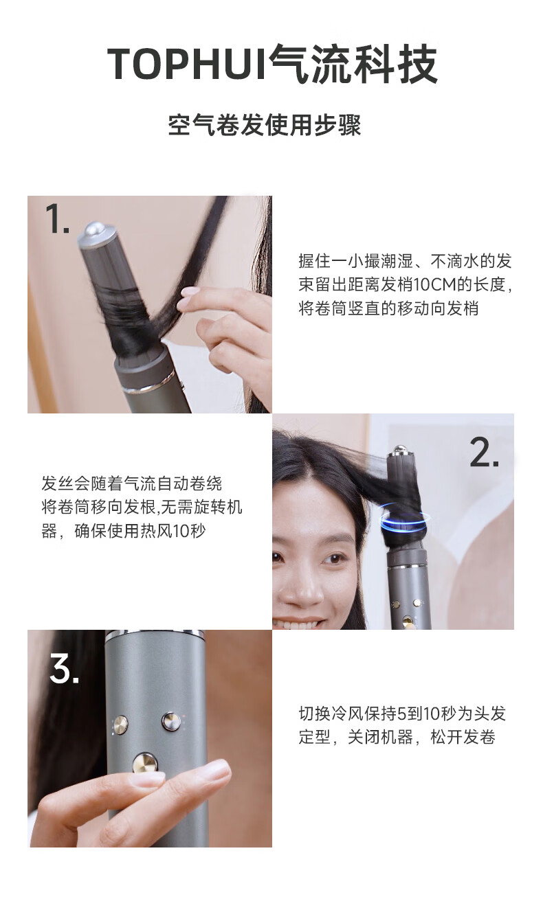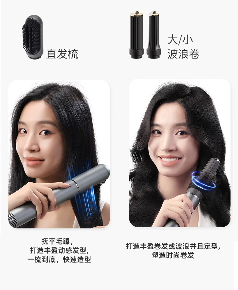 TOPHUI顶惠多功能高速吹风机美发6合1全自动卷发棒6.8亿负离子电卷棒直发梳卷直两用造型礼盒持久定型不伤发 【星空灰】6合1全自动美发造型器