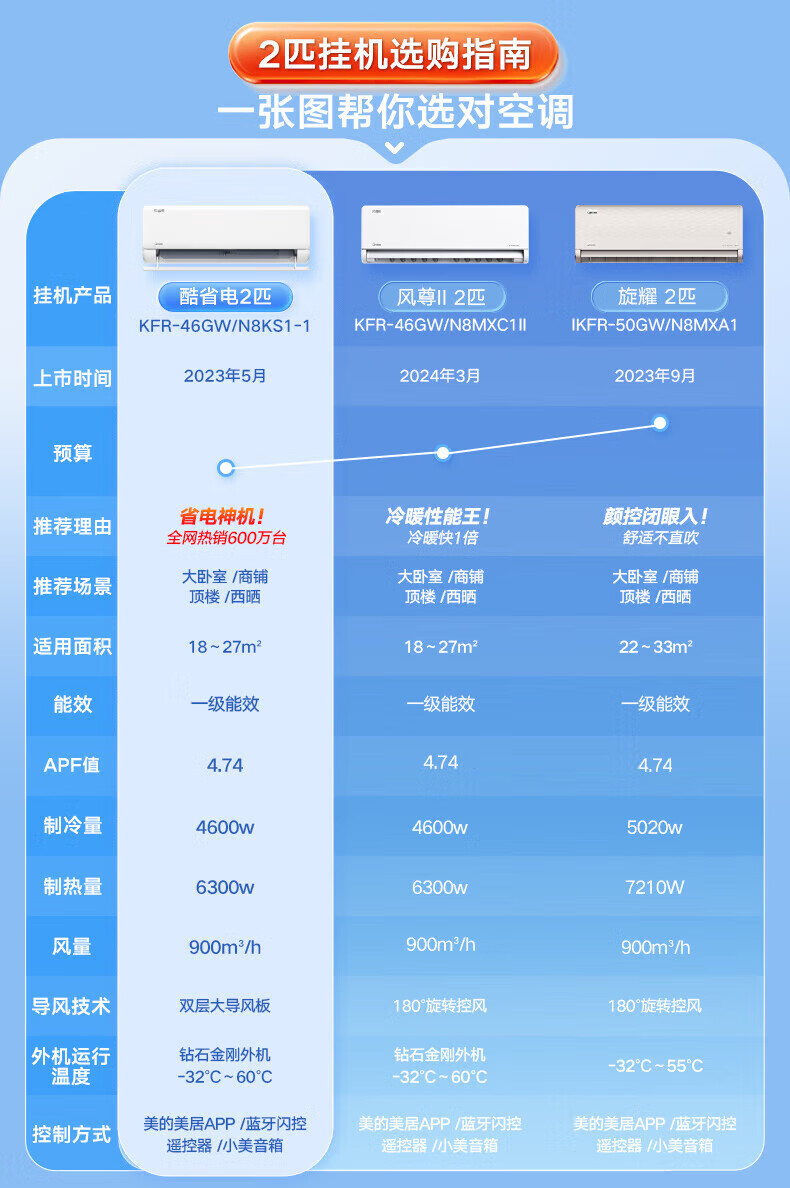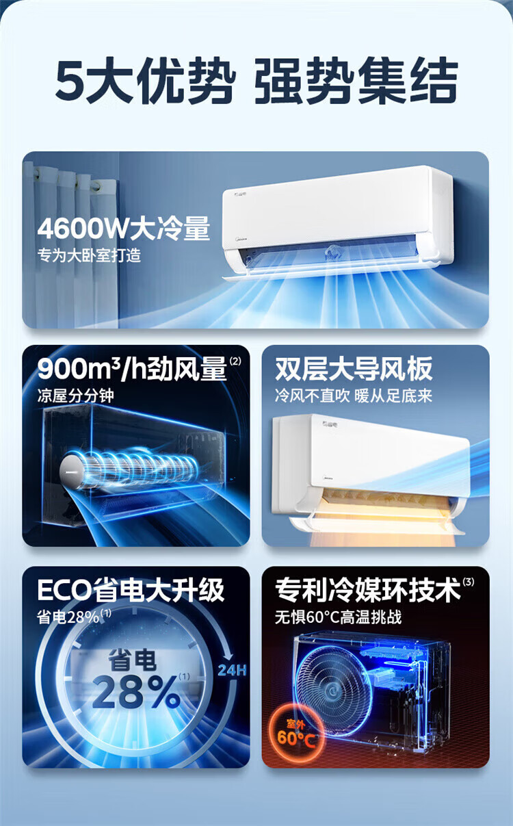 美的(Midea)酷省电系列 一套购齐 新一级能效 变频冷暖 智能省电 挂机+立式柜机组合 酷省电2025款+酷省电大挂(一室一厅)