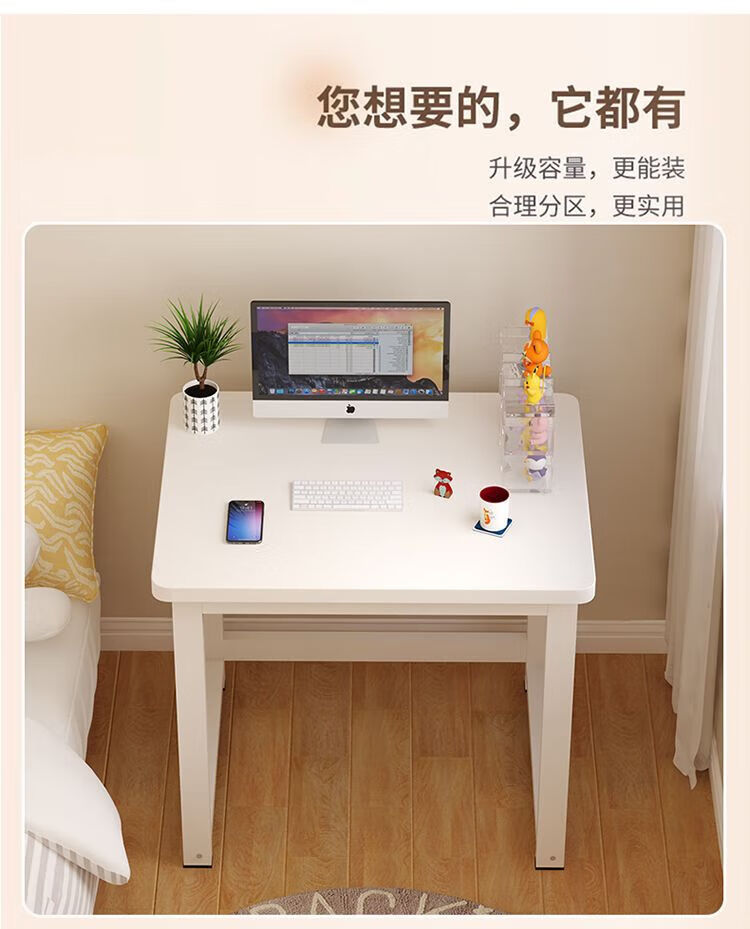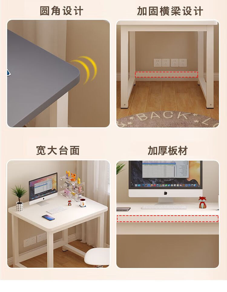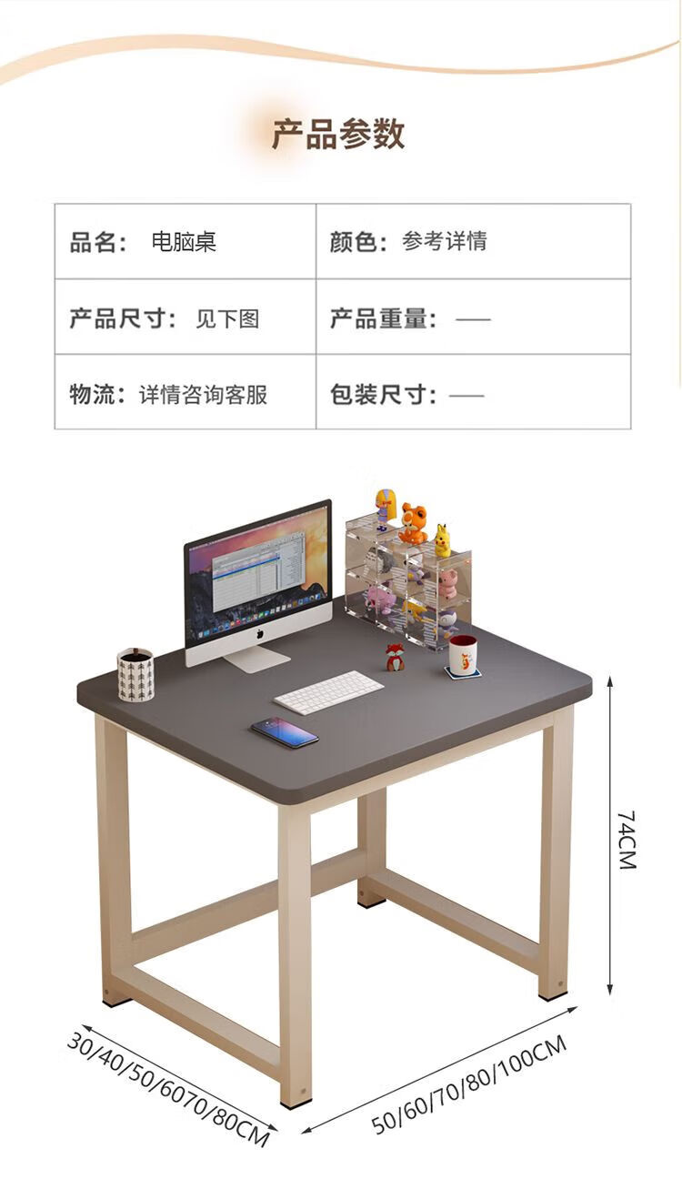 倘然之家方形书桌加长电脑桌出租屋小户型学习桌台式多功能简约耐用小桌子 浅胡桃【加固桌腿】 70x50x74厘米+圆角加厚