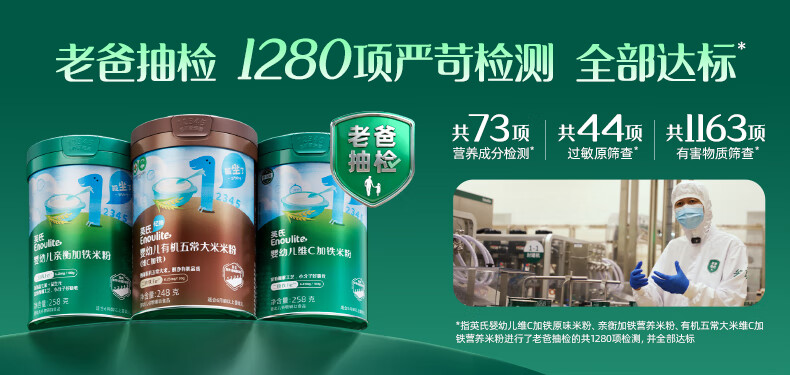 英氏米粉罐装套组婴幼儿高铁米粉6-12个月辅食宝宝营养米糊 1阶6月+第一口选维C加铁 258g*1罐