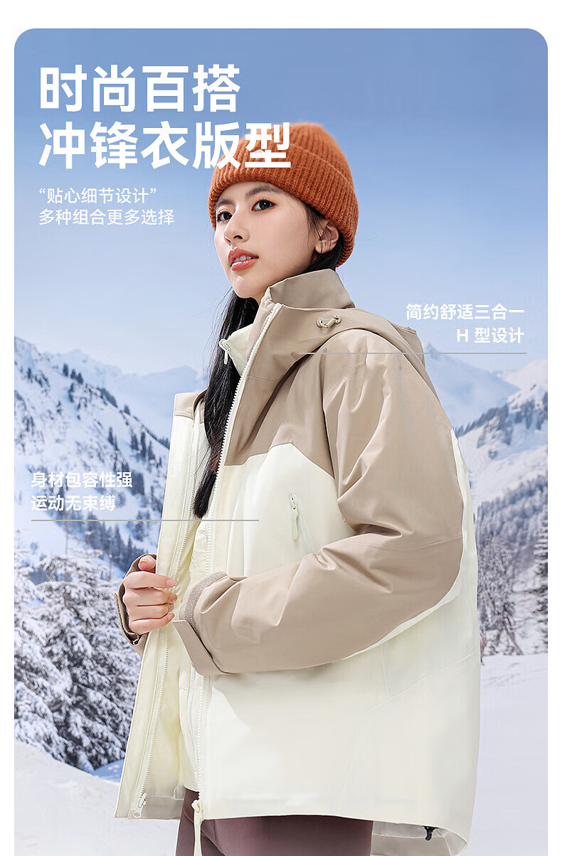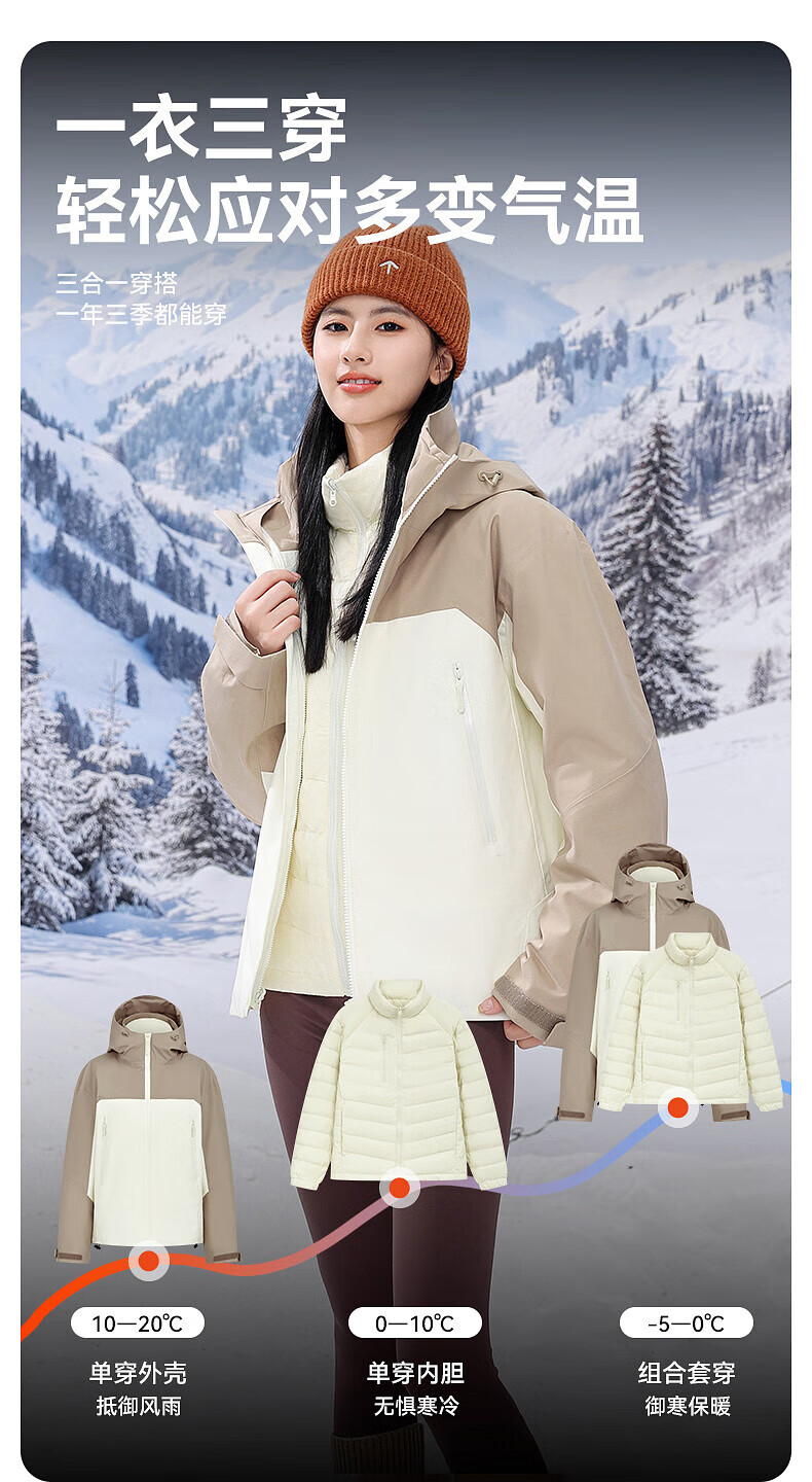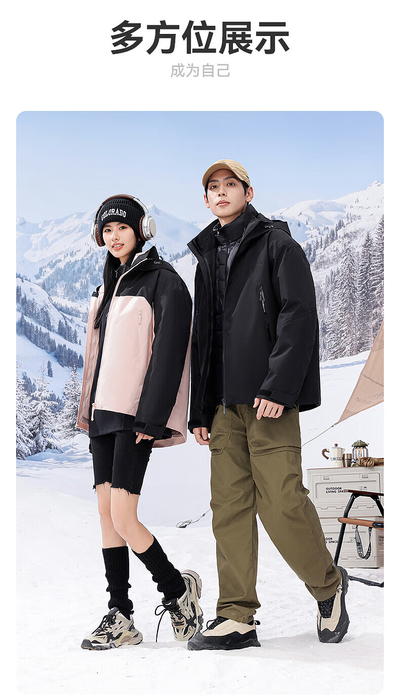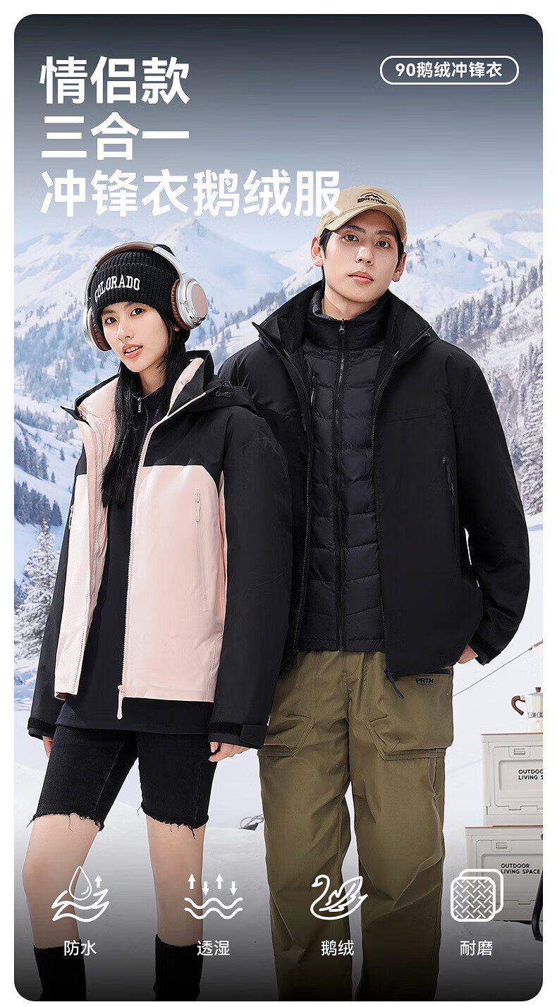 JEEP SPIRIT吉普冲锋衣三合一情侣款秋冬季加厚两件套防风防水保暖棉服外套男 女款-黑色B【三合一两件套】 XL