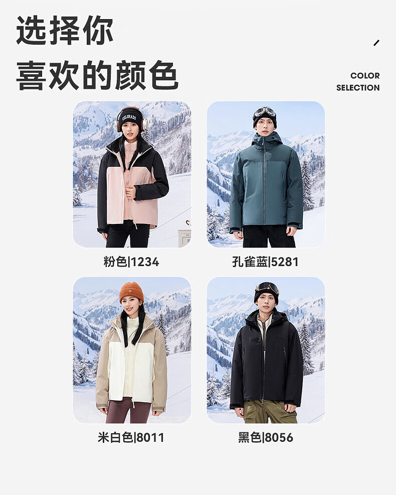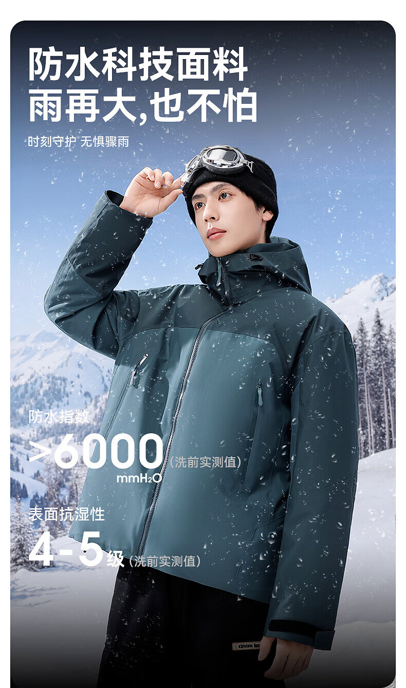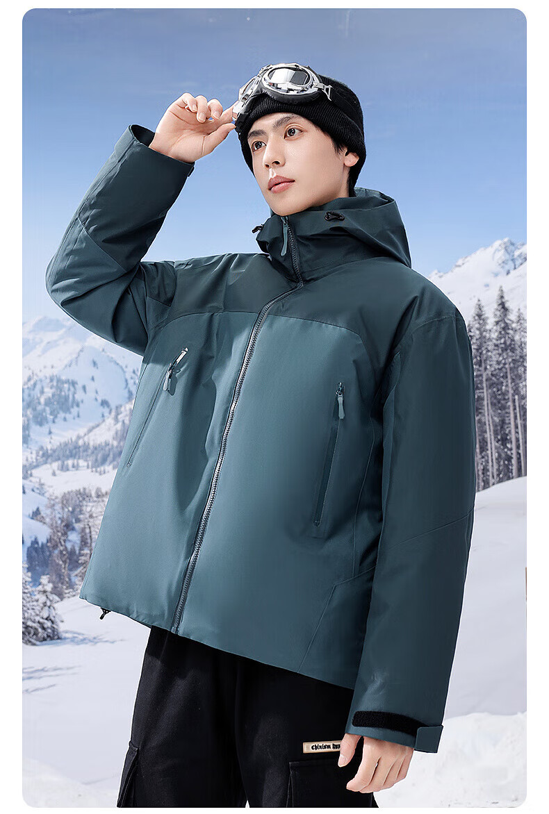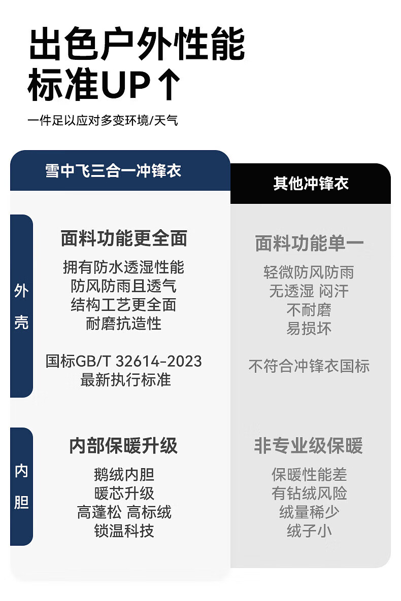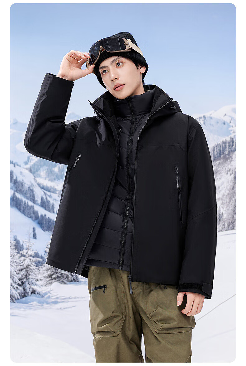 雪中飞【一衣三穿】【鹅绒】新款中性立领连帽加宽帽檐冲锋衣羽绒服 黑色|8056 175/96A