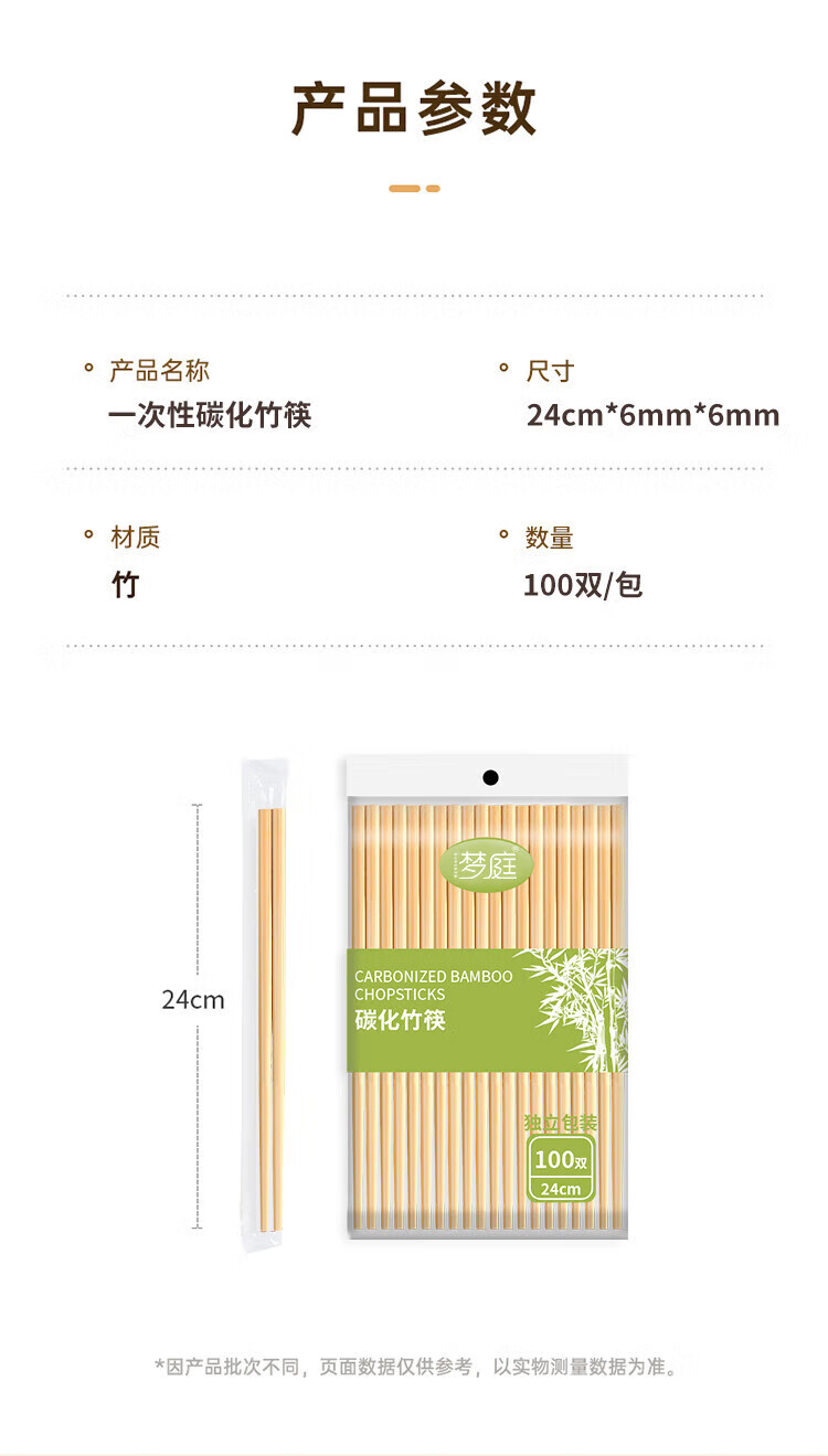 梦庭一次性 筷子碳化100双套装独立包装家用餐具碳化筷子火锅筷203839