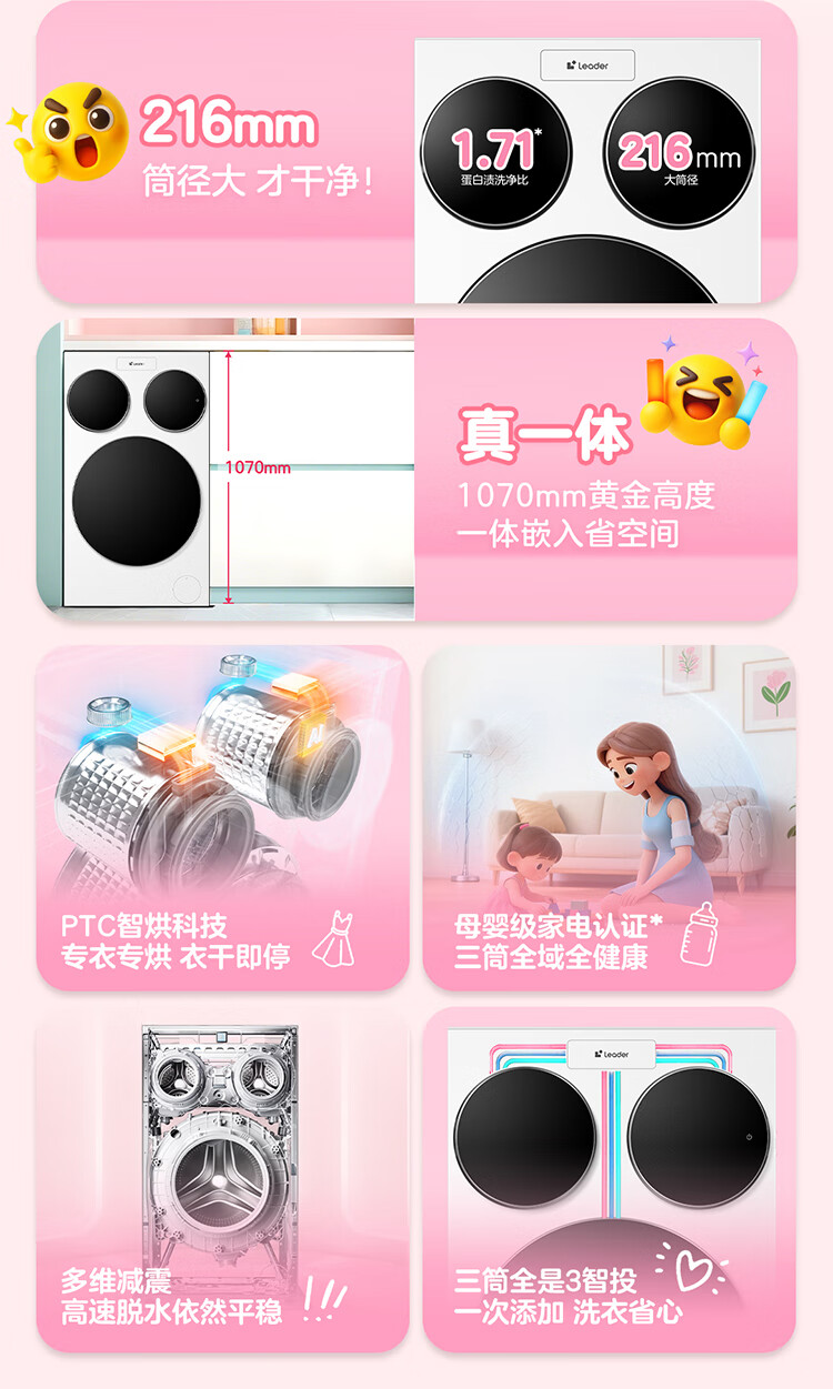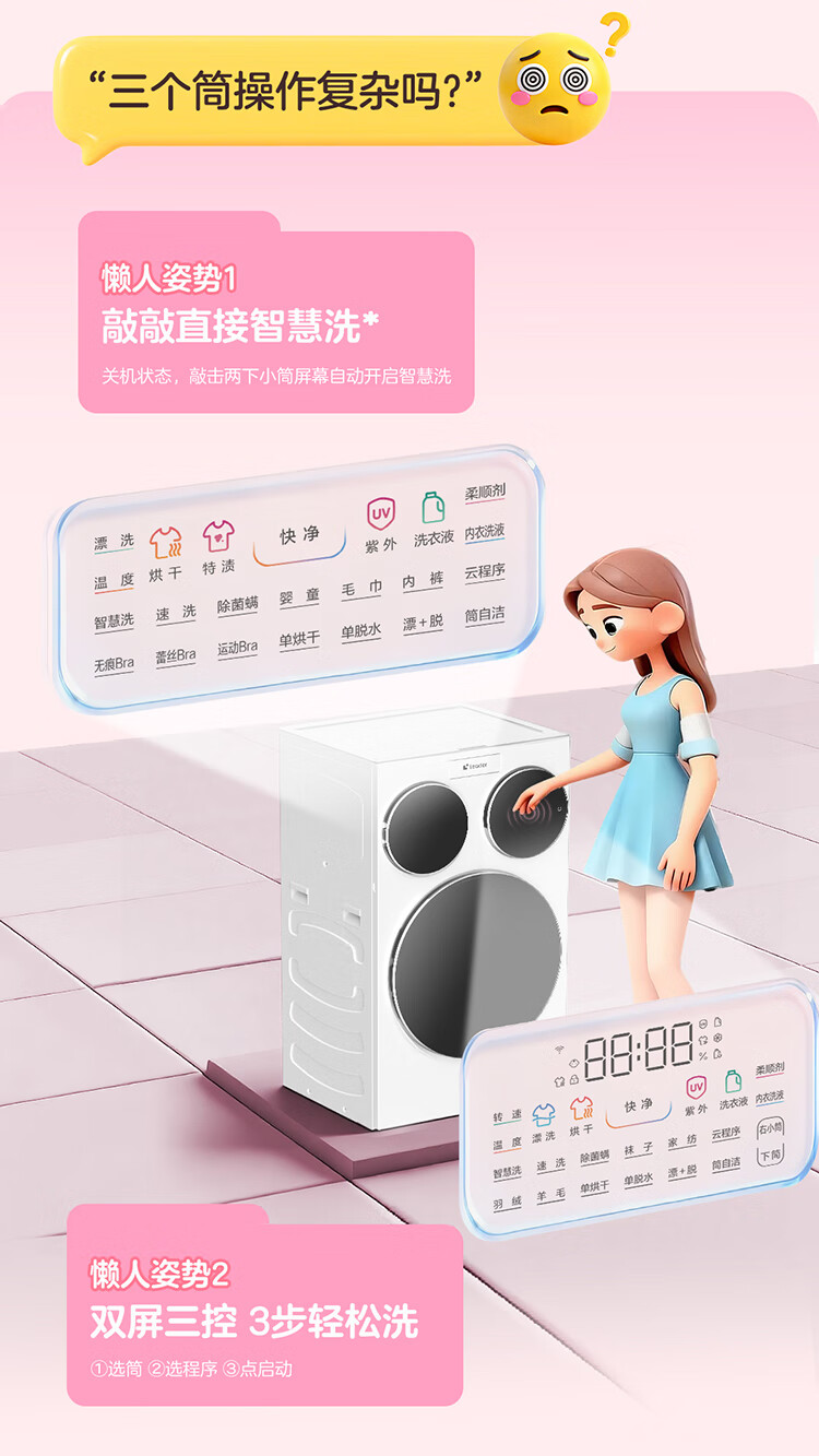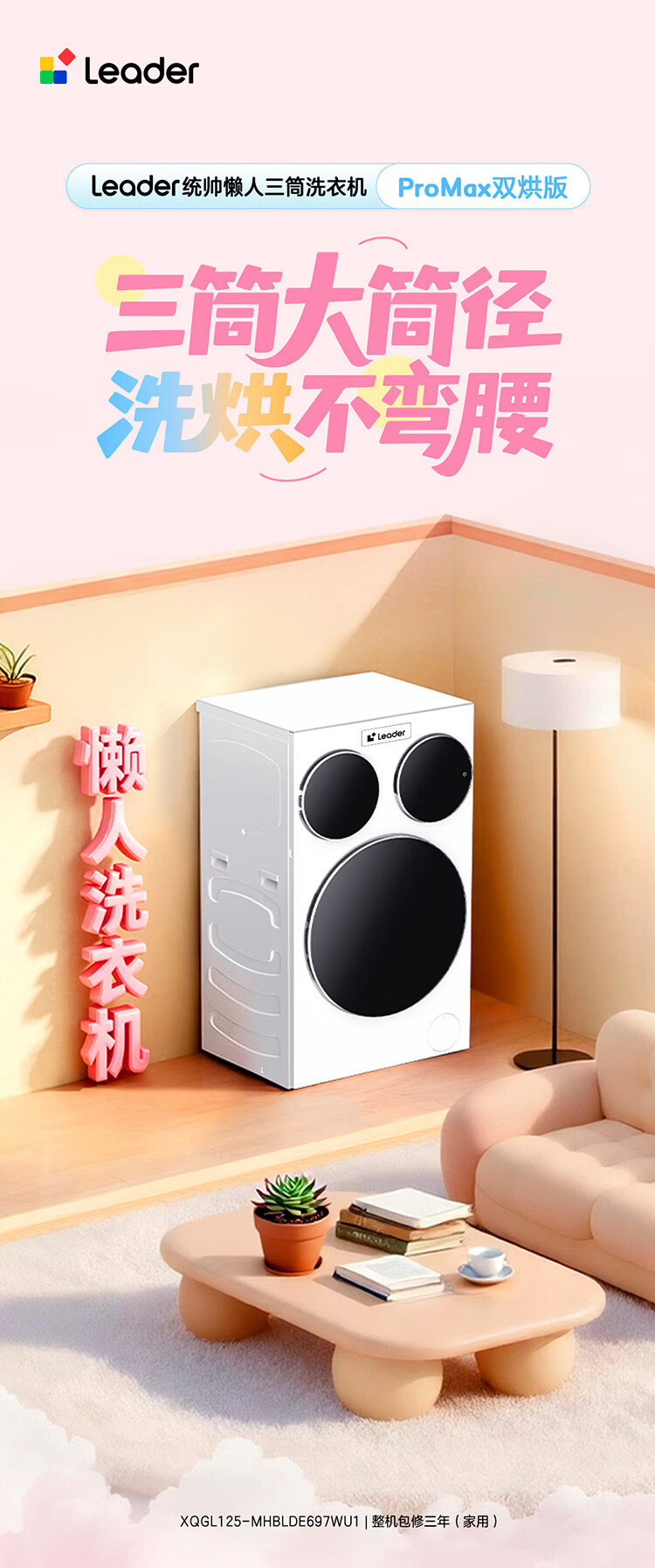 统帅(Leader)懒人三筒洗衣机ProMax 双烘版海尔智家洗烘一体机家用大容量【林高远同款】洗烘12.5KG国家补贴20% XQGL125-MHBLDE697WU1