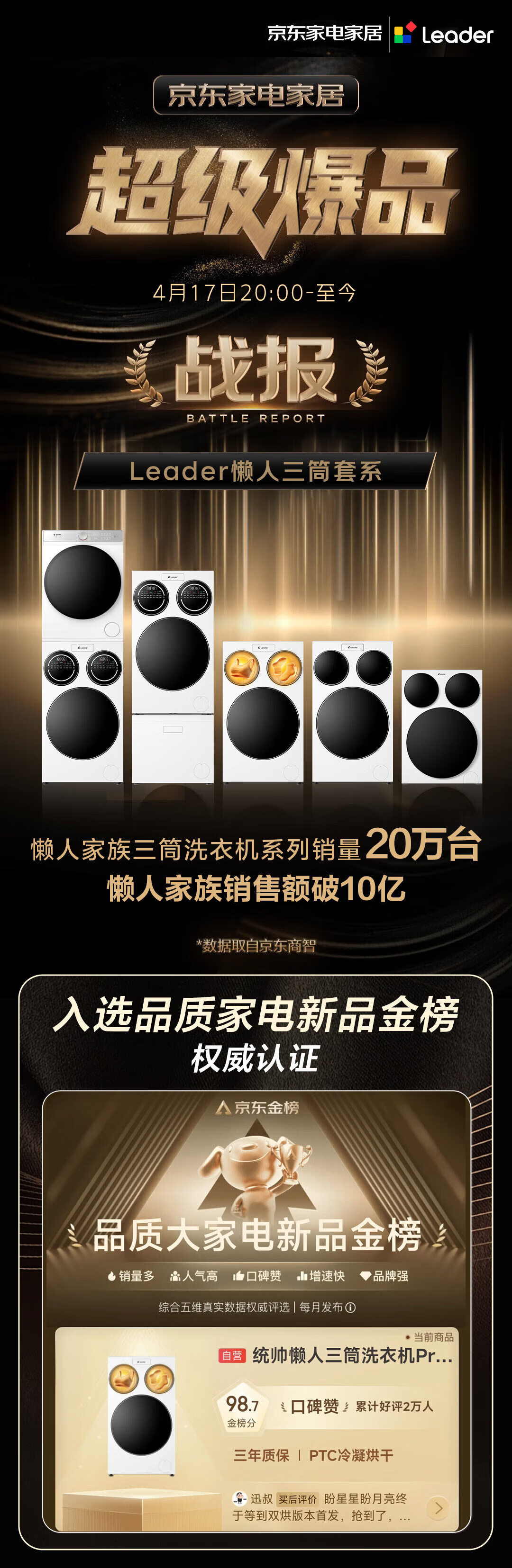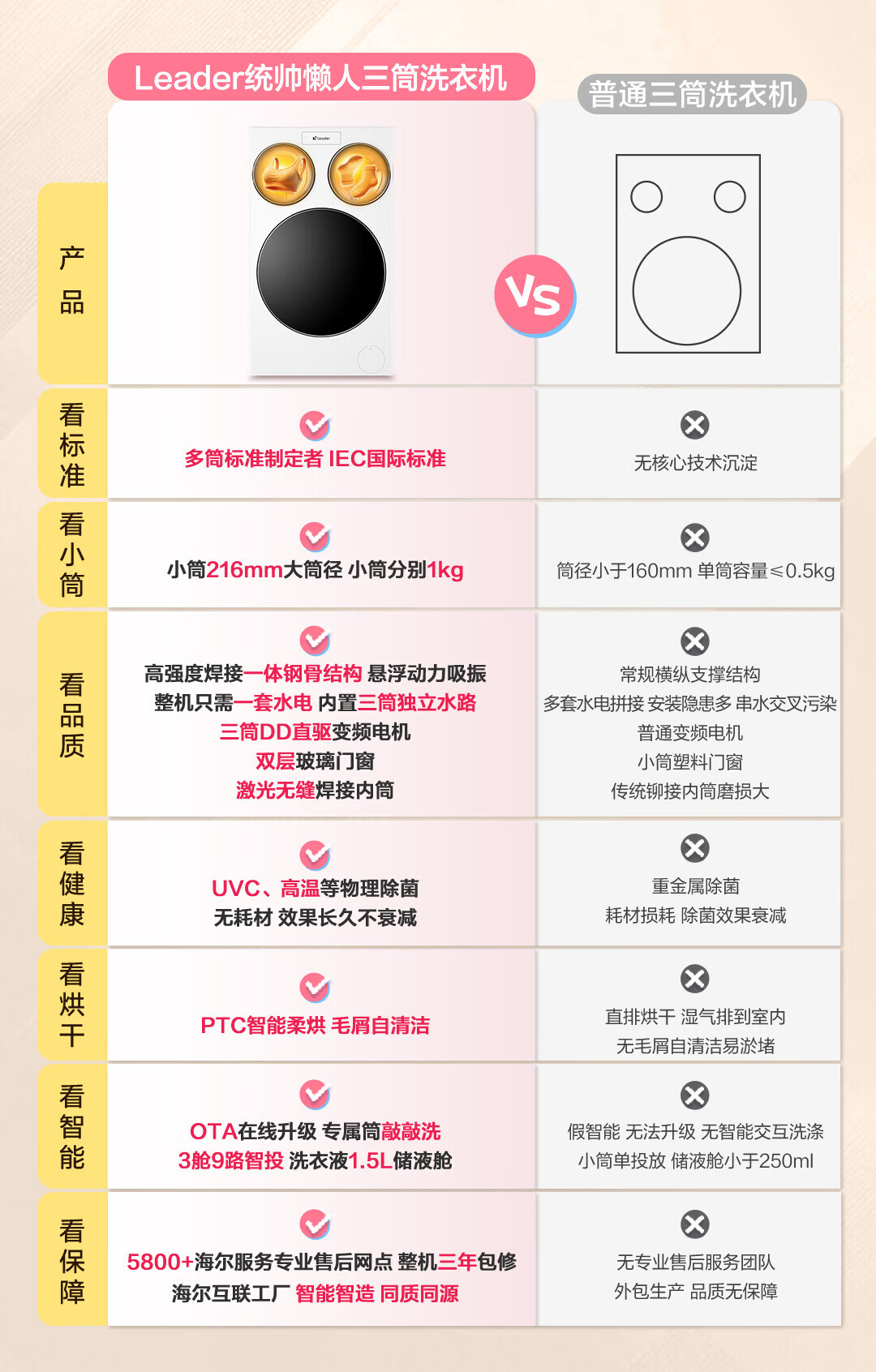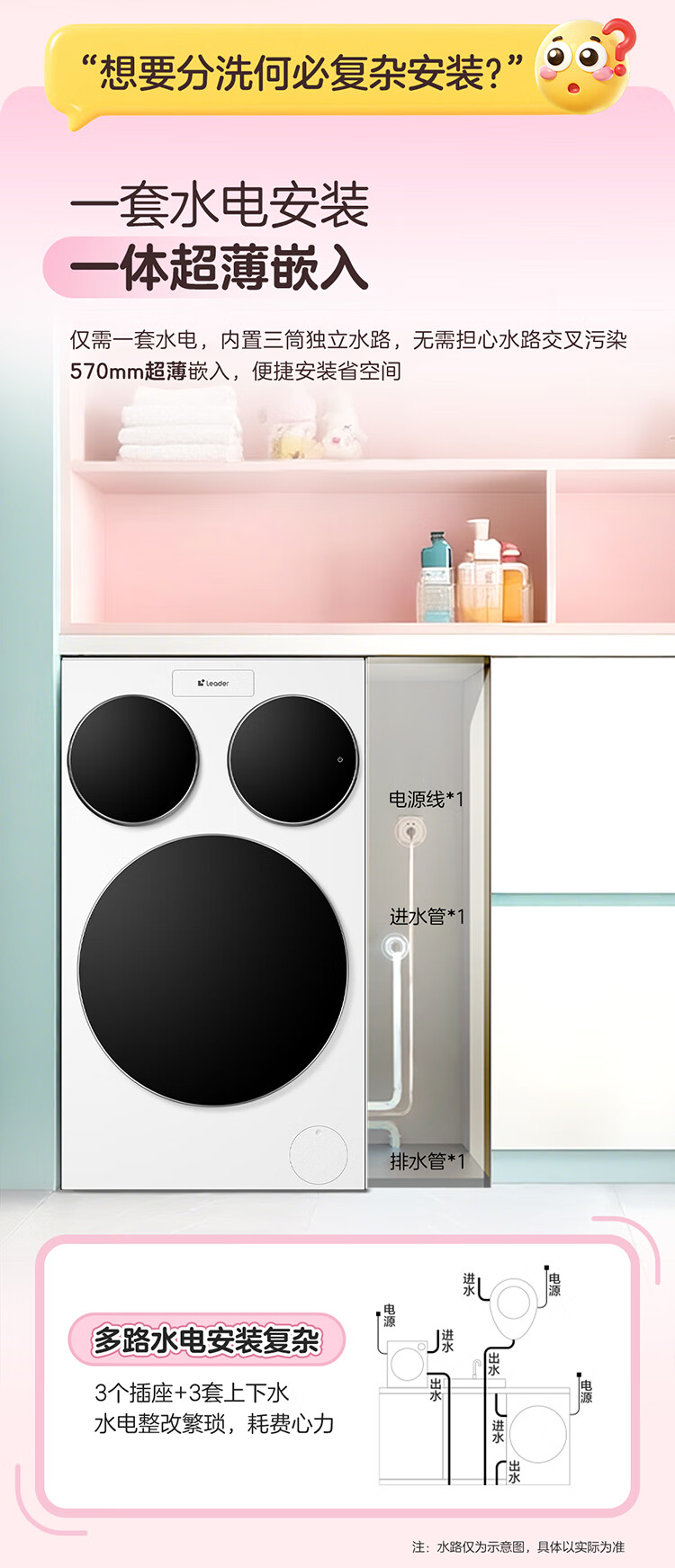 统帅(Leader)懒人三筒洗衣机ProMax 双烘版海尔智家洗烘一体机家用大容量【林高远同款】洗烘12.5KG国家补贴20% XQGL125-MHBLDE697WU1