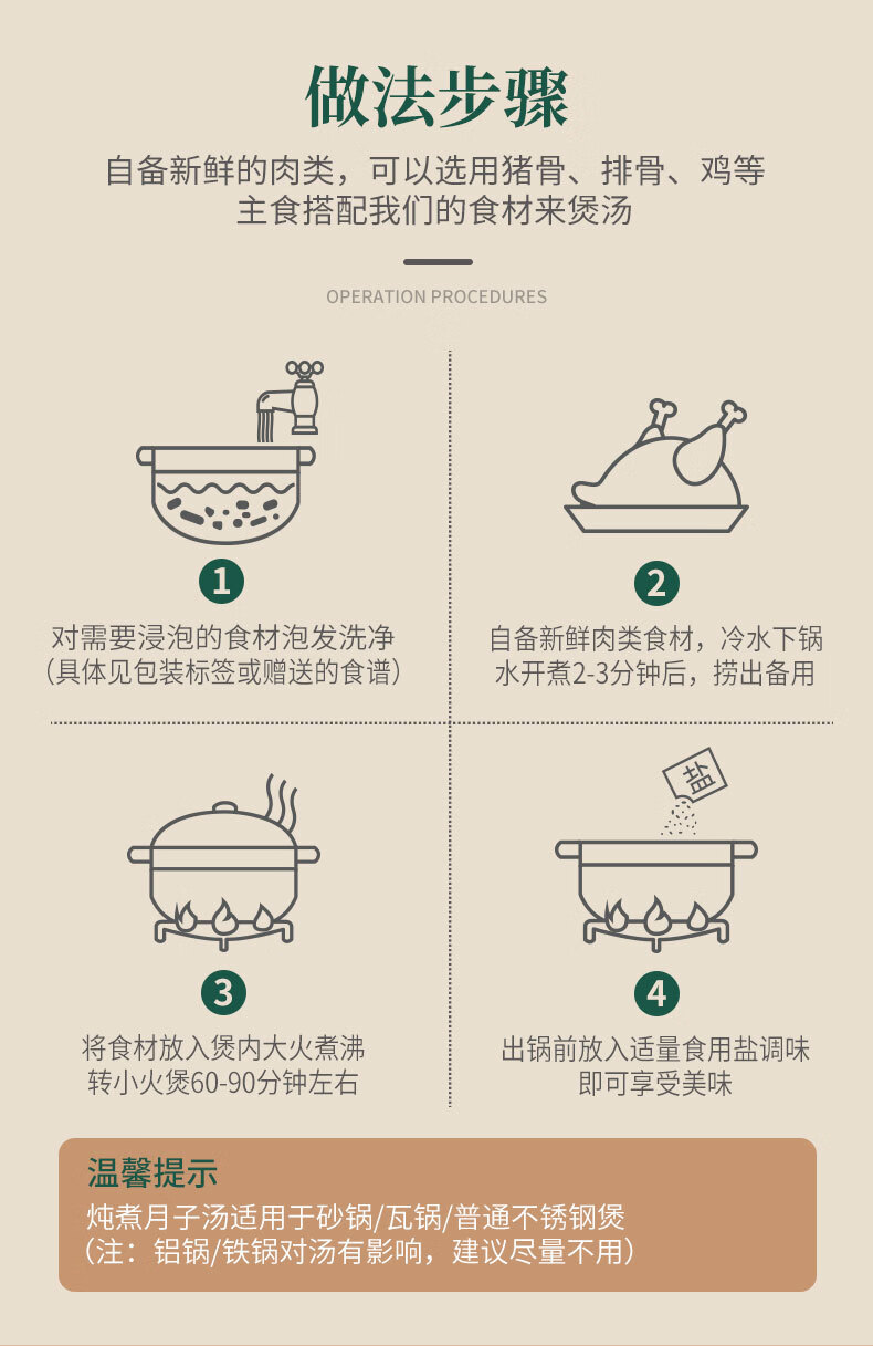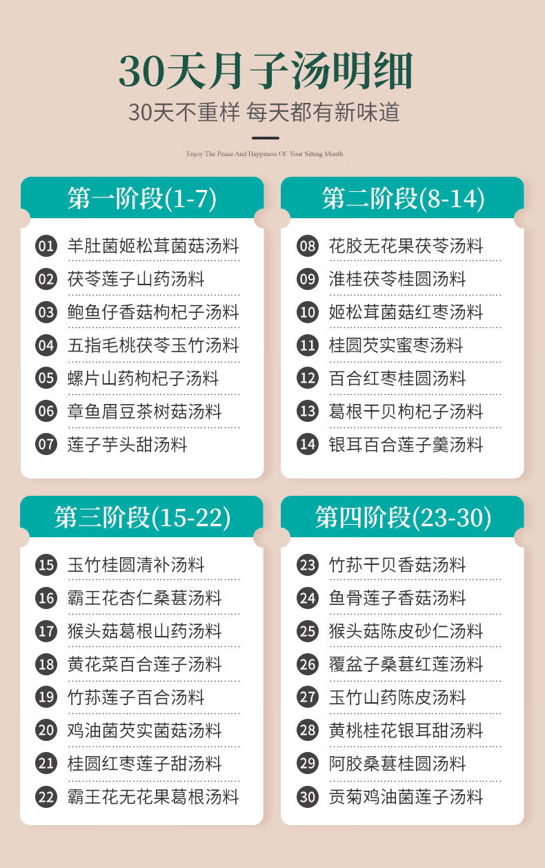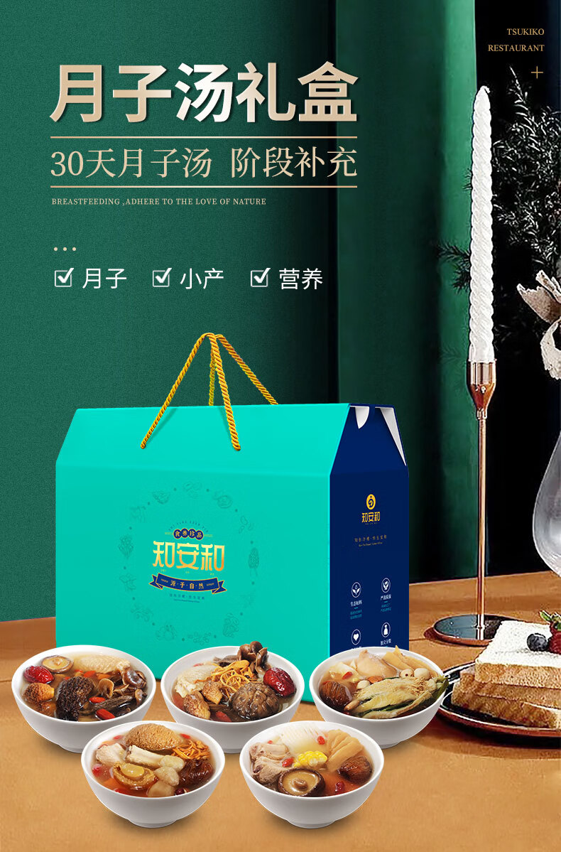 知安和月子餐食材30天产妇坐月子汤料包调理营养补品顺产剖腹产月子煲汤 30天月子餐(30包汤料,礼盒装)