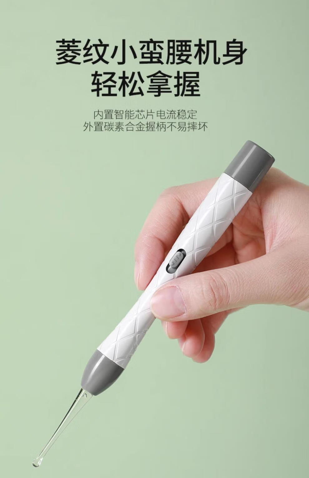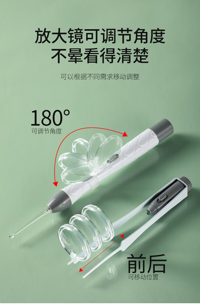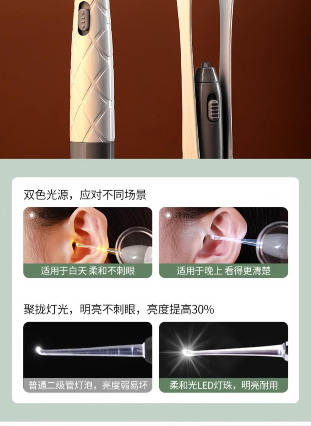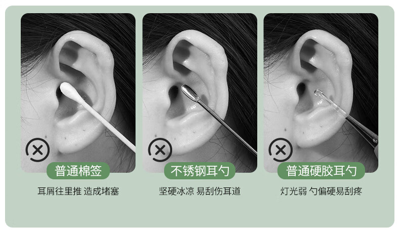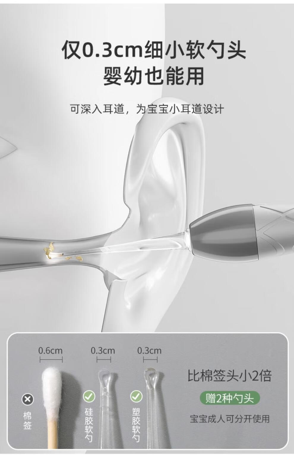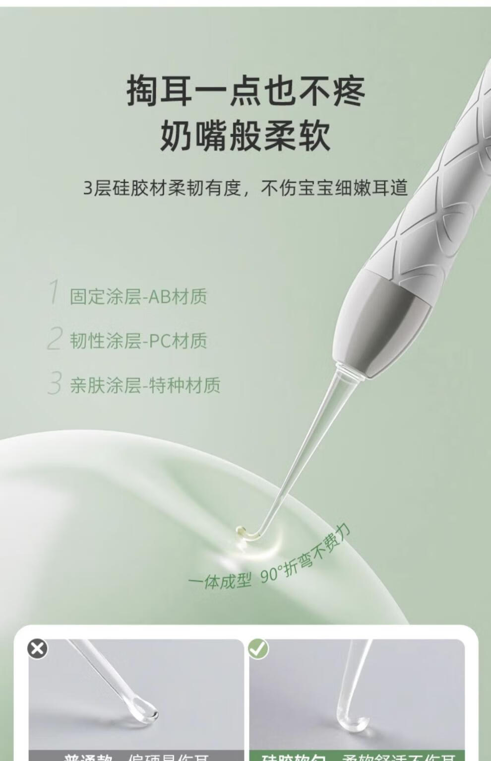 兮儿掏耳家用抠扣挖耳朵宝宝挖耳勺软头耳屎儿童用安全镊子发光带灯 3件套-绿色【耳勺+耳镊+鼻夹】