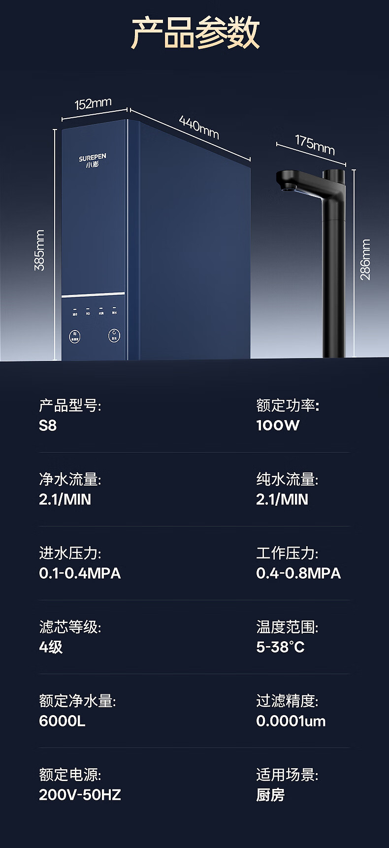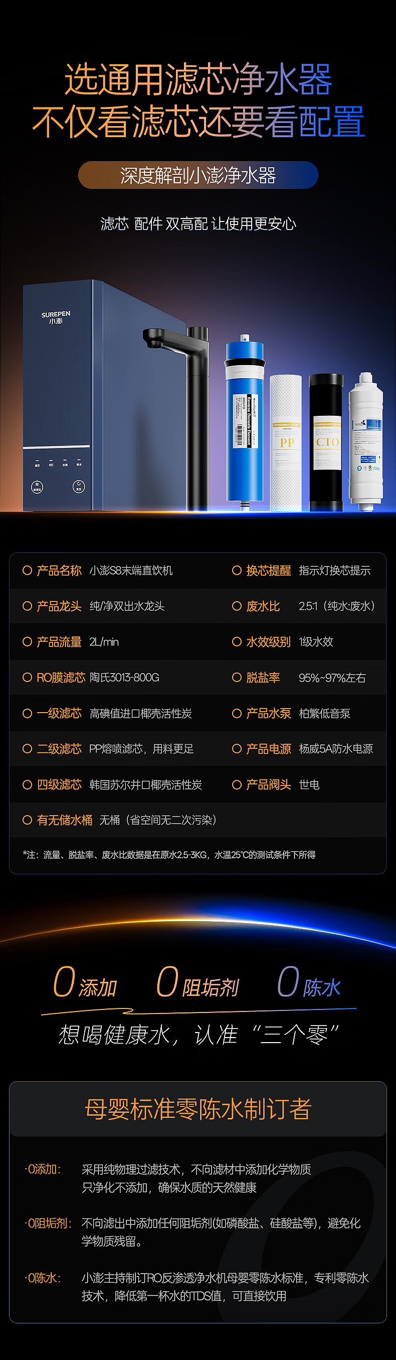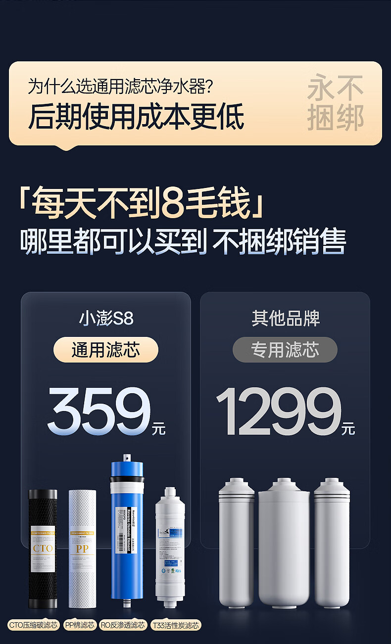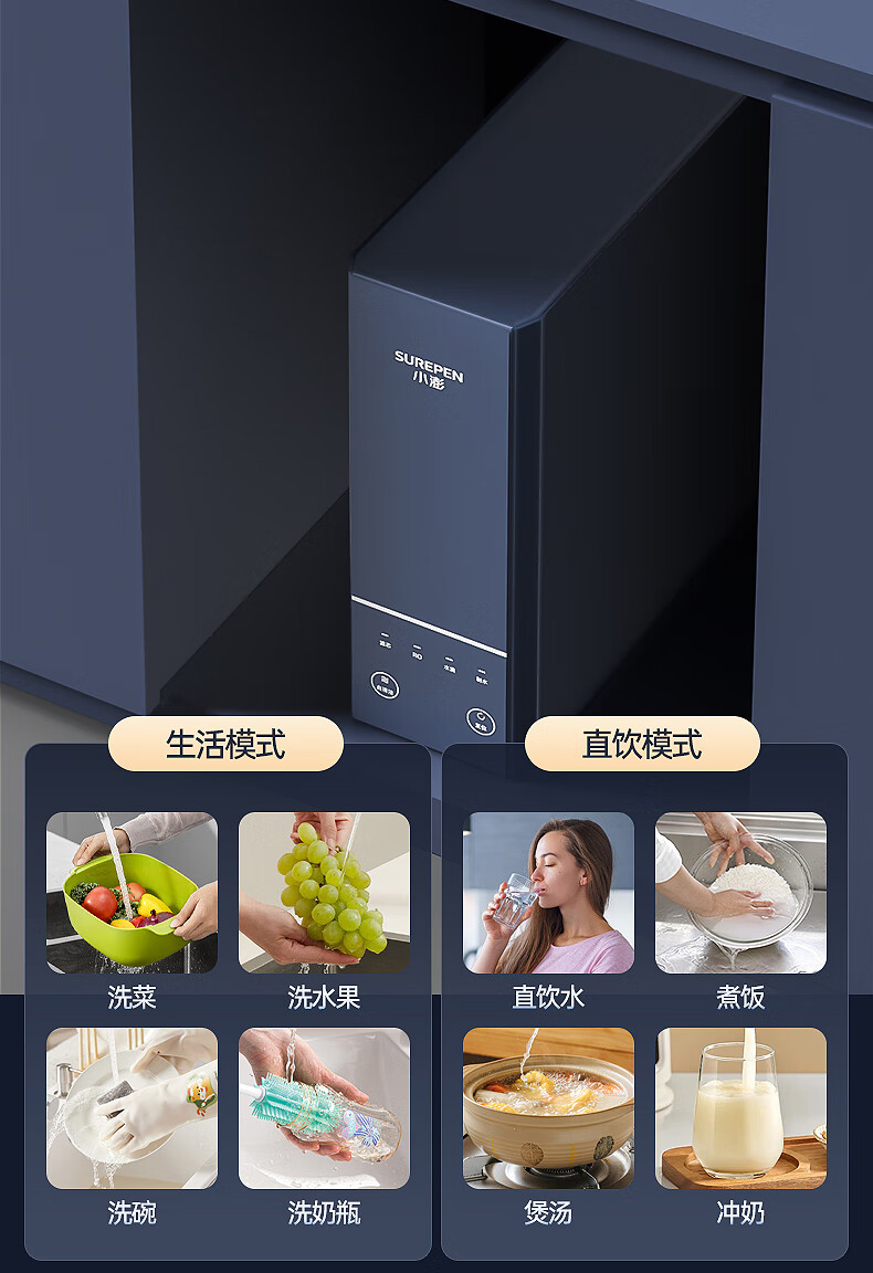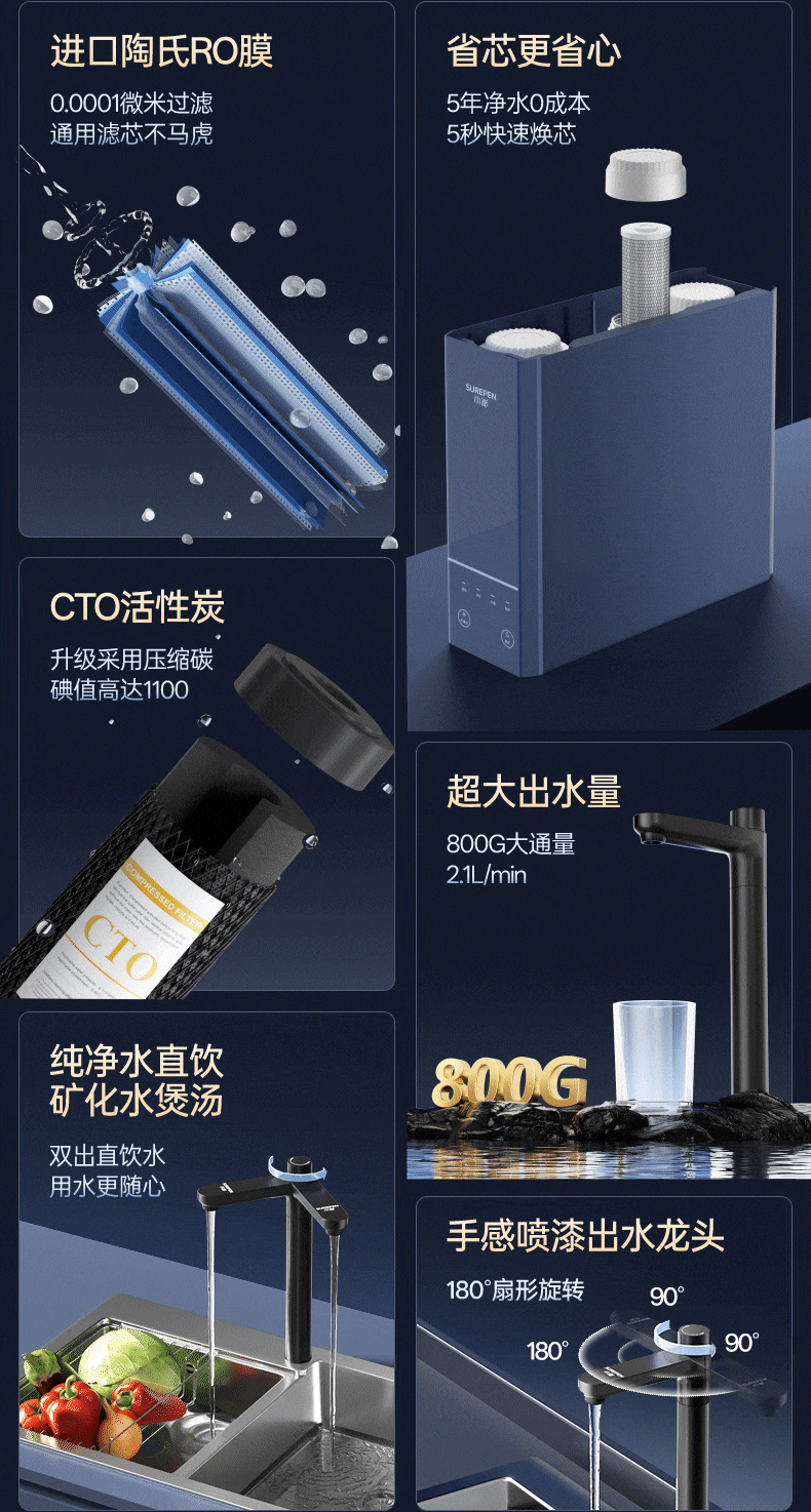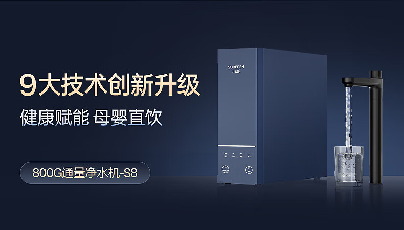小澎S8通用滤芯净水器RO反渗透净水机双出水0陈水0阻垢剂0添加厨下式母婴直饮机800G大流量 【陶氏RO膜】800G双出水+免费安装