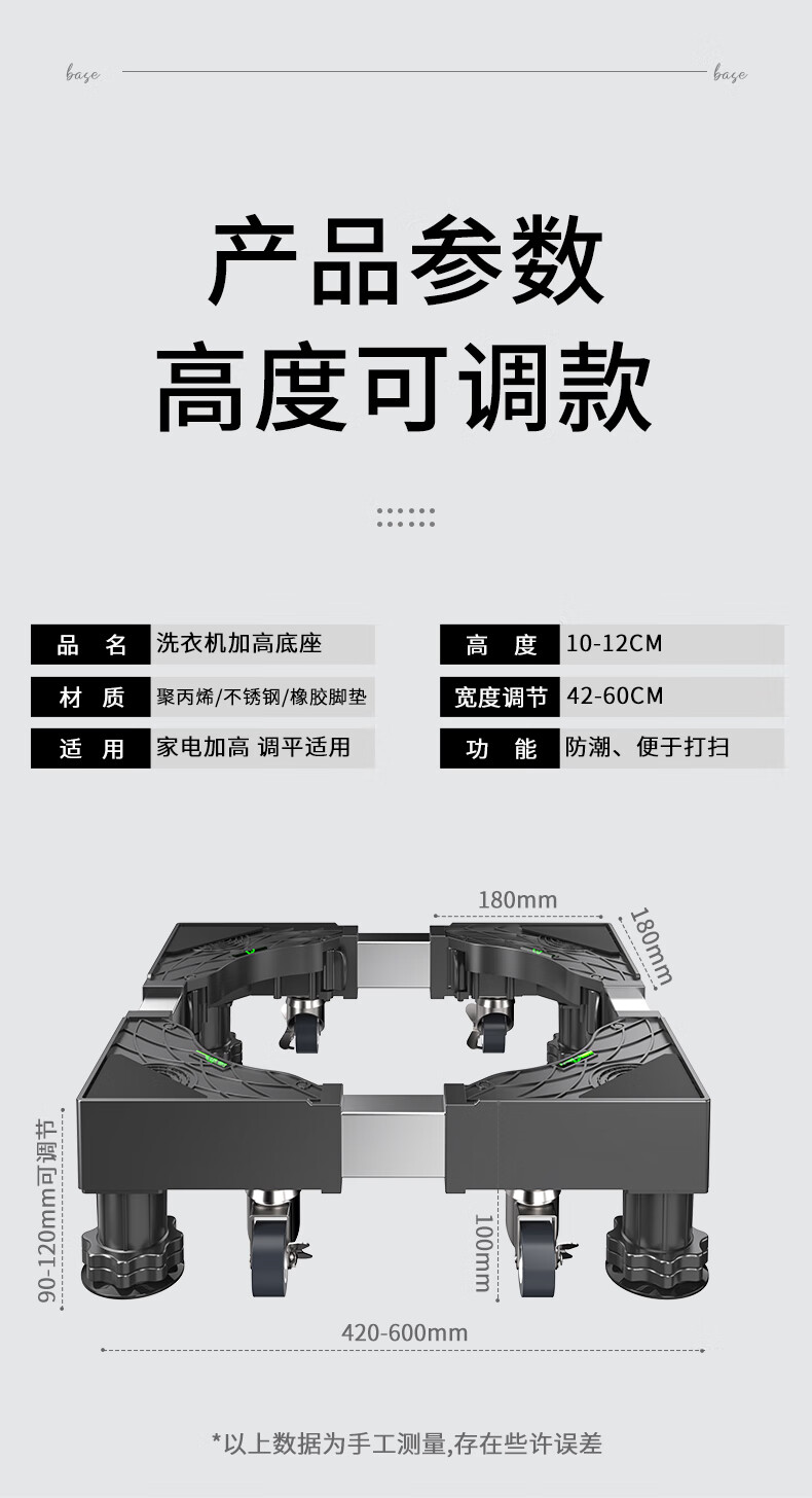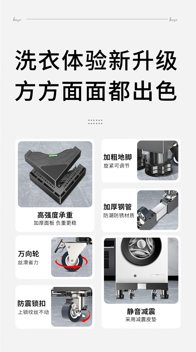 匠无同 洗衣机底座支架可移动滚筒波轮防滑防震脚垫空调冰箱增高适用于小天鹅美的海尔通用