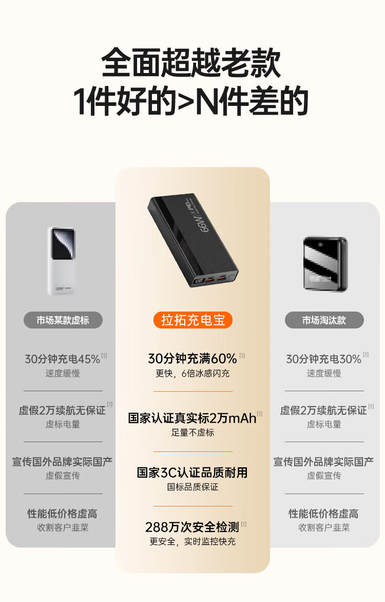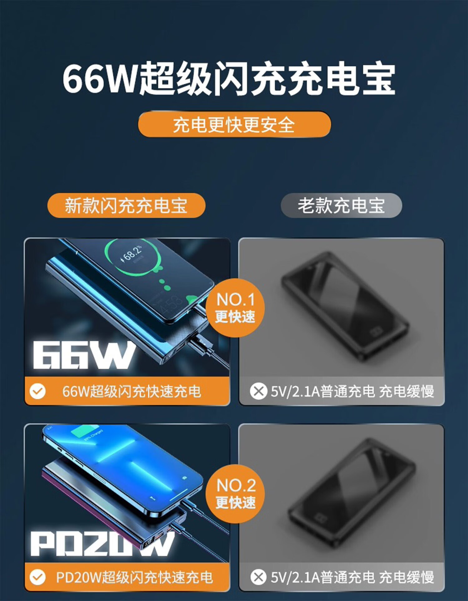 拉拓【国标3C认证】超级快充充电宝20000毫安超大容量66W总输出超级快充可上飞机旅游适配苹果华为手机 商务黑【20000毫安+超级快充+提速999%】 【新3C认证/当日次日达】5.0顶配版/可上飞机